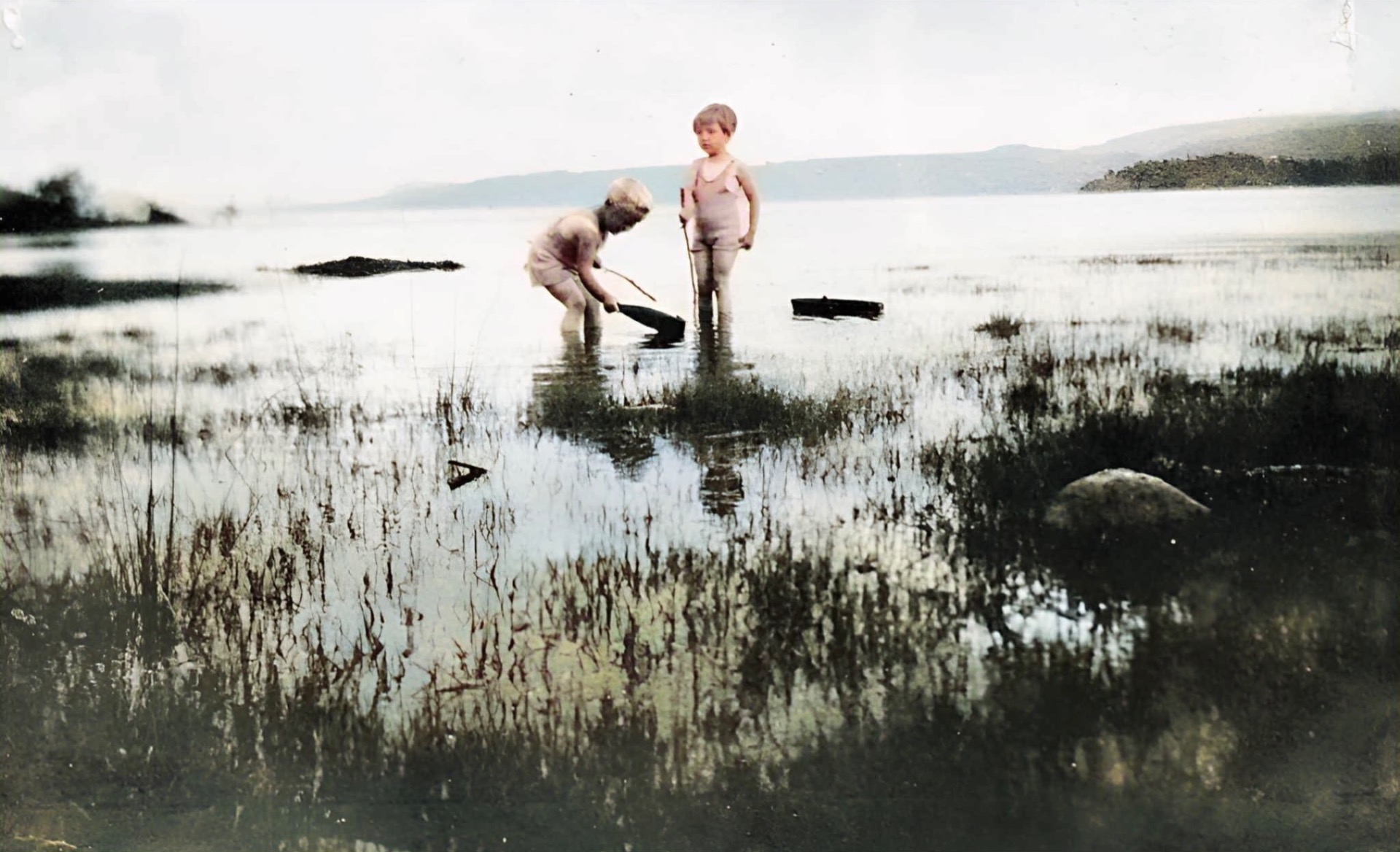 Det er sommaren 37/38 nede på Torsnes. Søskenbarna Henning Johnsen og Sissel Hanssen er ute med båtane sine.