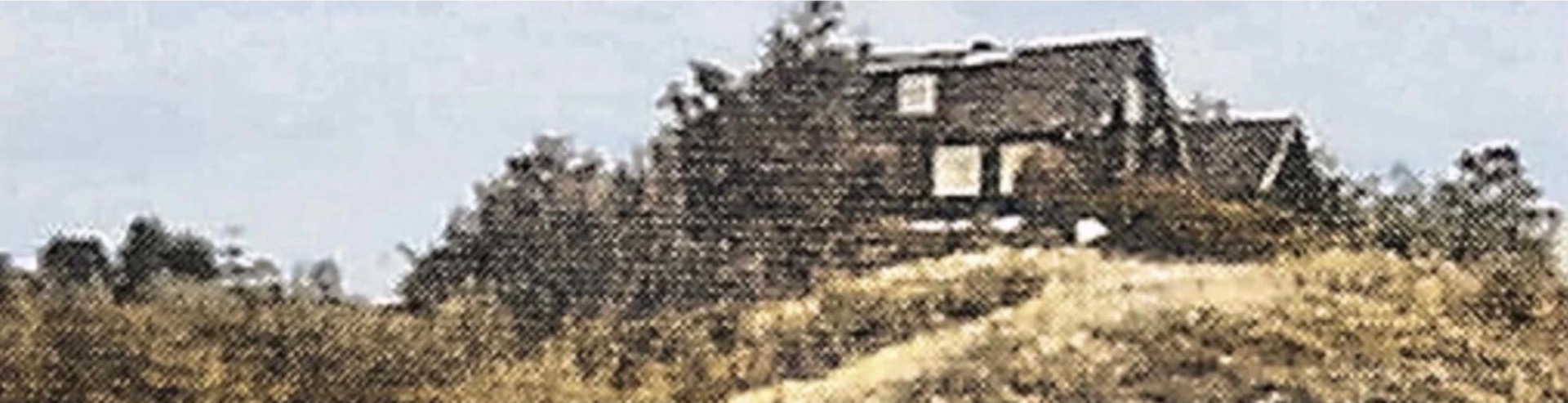 Utsnitt av portrett fra 50 tallet. Vi ser her ett av fire uthus på Kamperhaug og detta husa blant anna bryggerpanna.