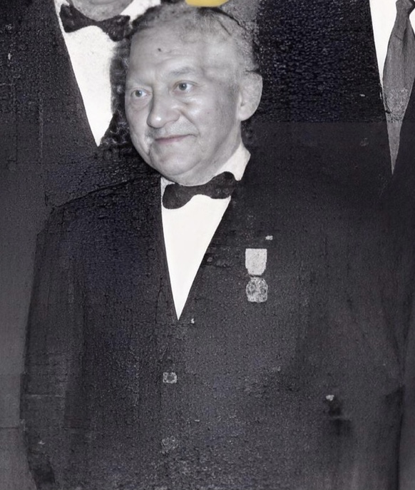Karl under den gule flekken: Han mottar heder og ære i 1957 sammen med arbeidskolleger.