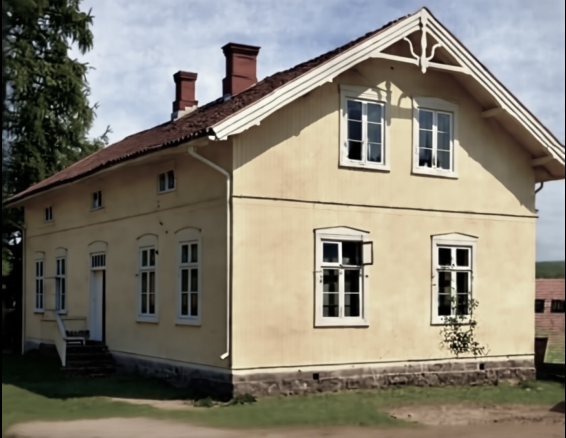 Va det først tenkt å ikke ha de to fløyane som går mot uthuset?