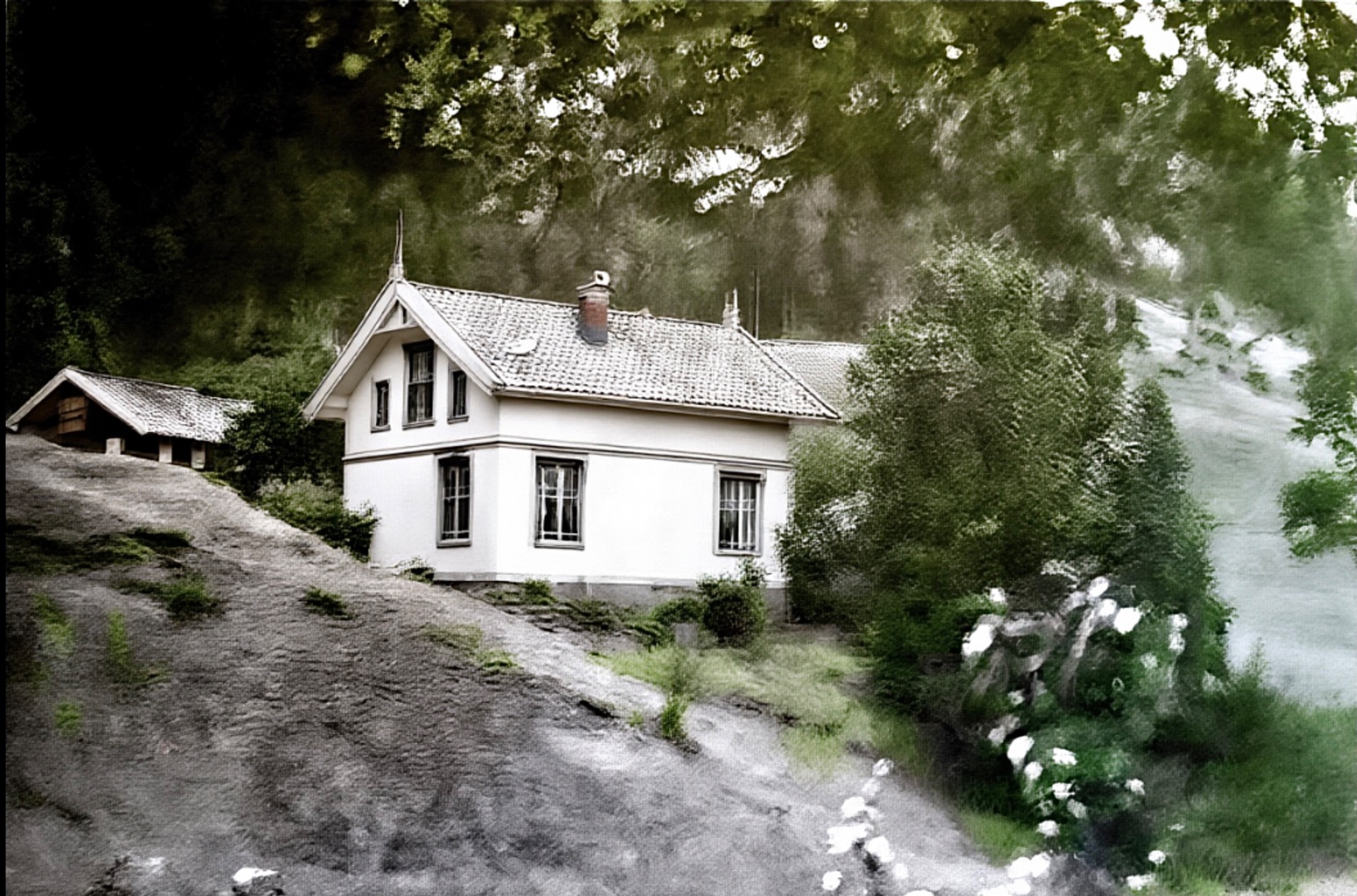 Den gamle kraftstasjonen i Eidsfoss som stod ferdig i 1917