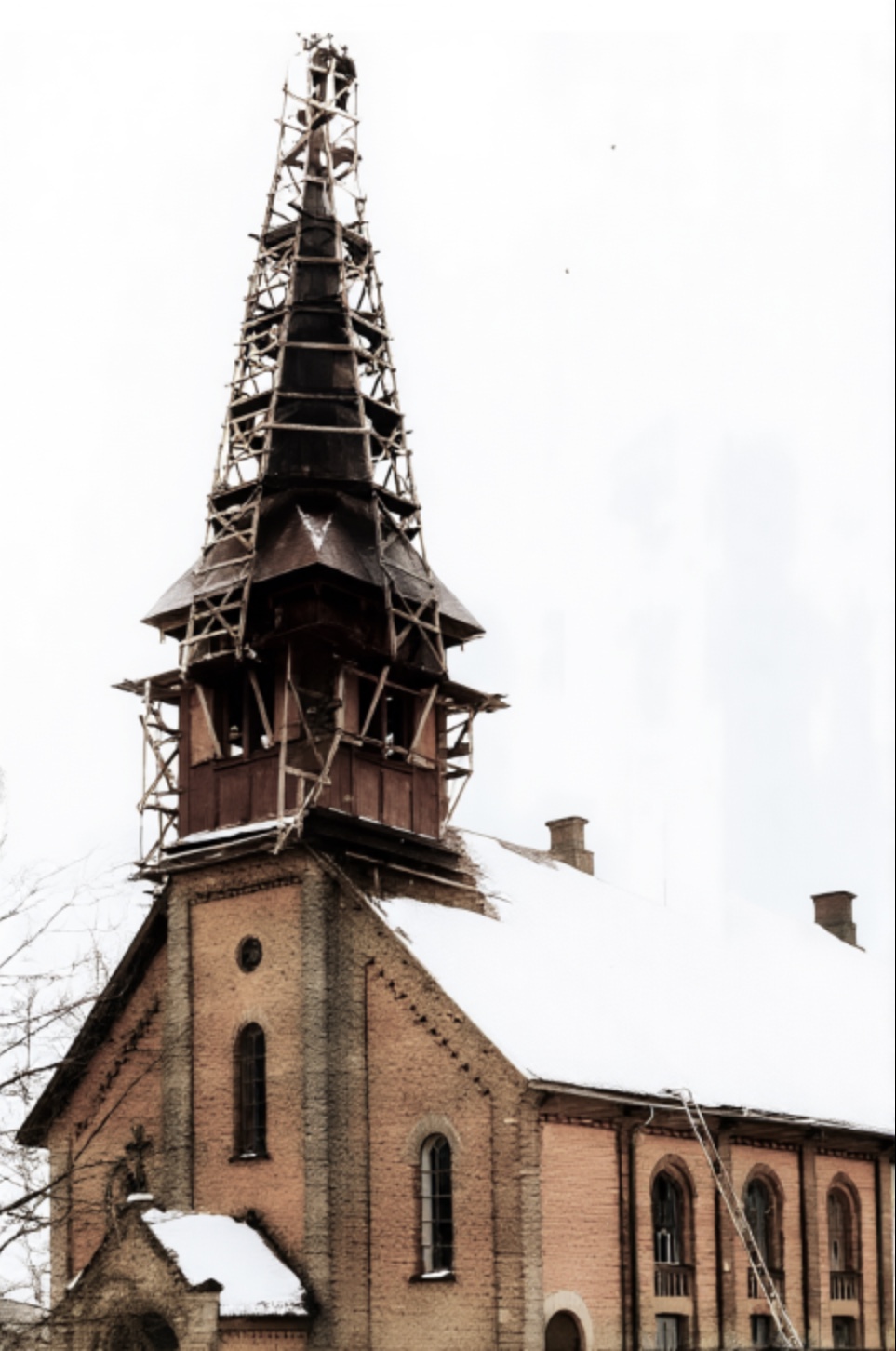 Kjerkespiret blir kledd med kobber. Høydeskrekken blei lagt igjen på bakken!