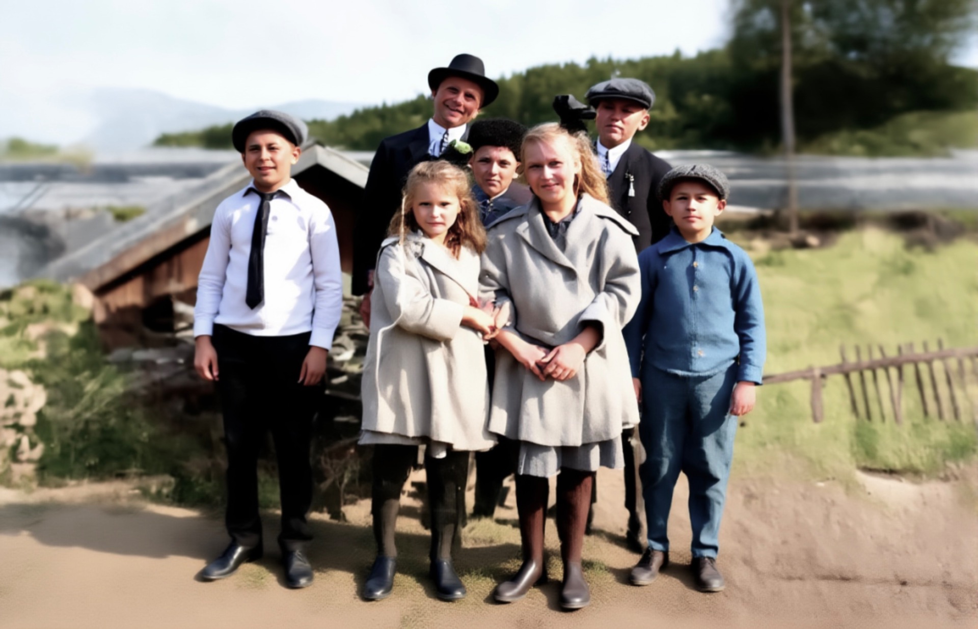 Jeg meiner de to te høyre va Lars (1890-1946) og Elise Fjeldstad(1891-1962).