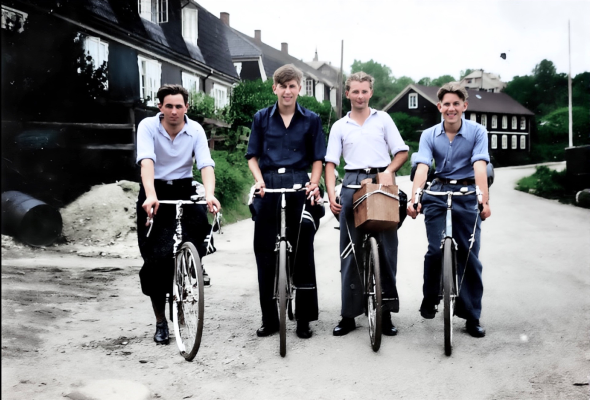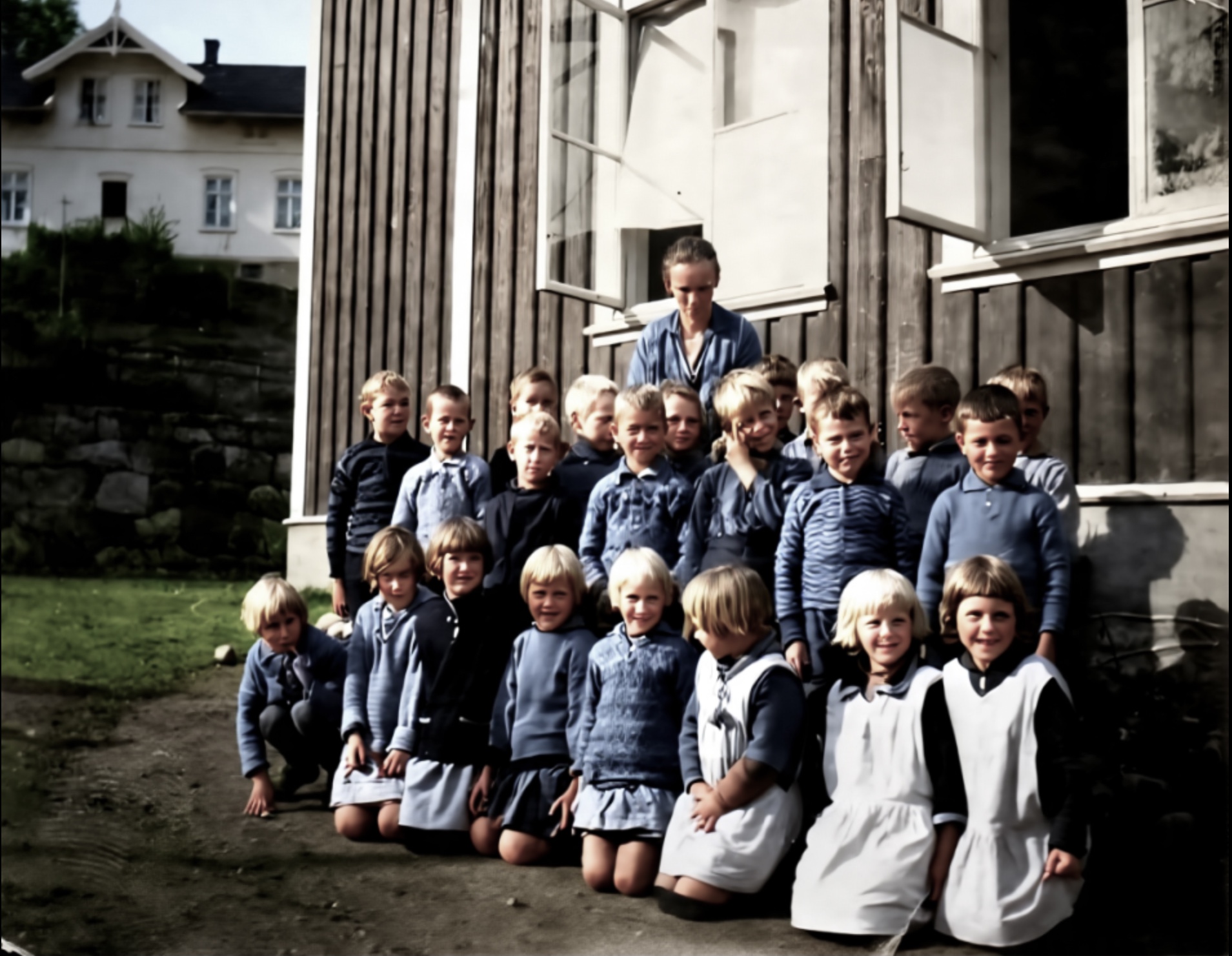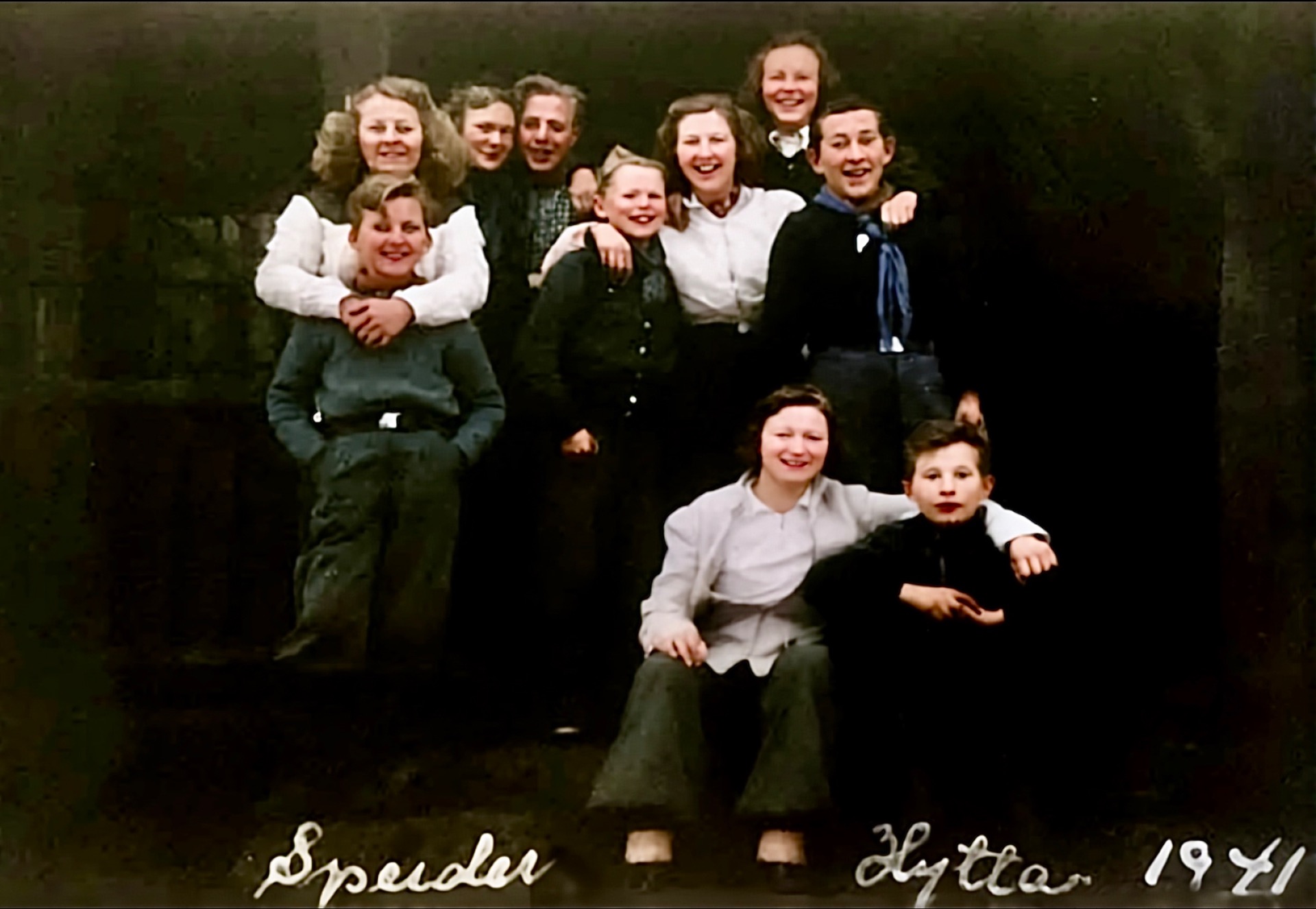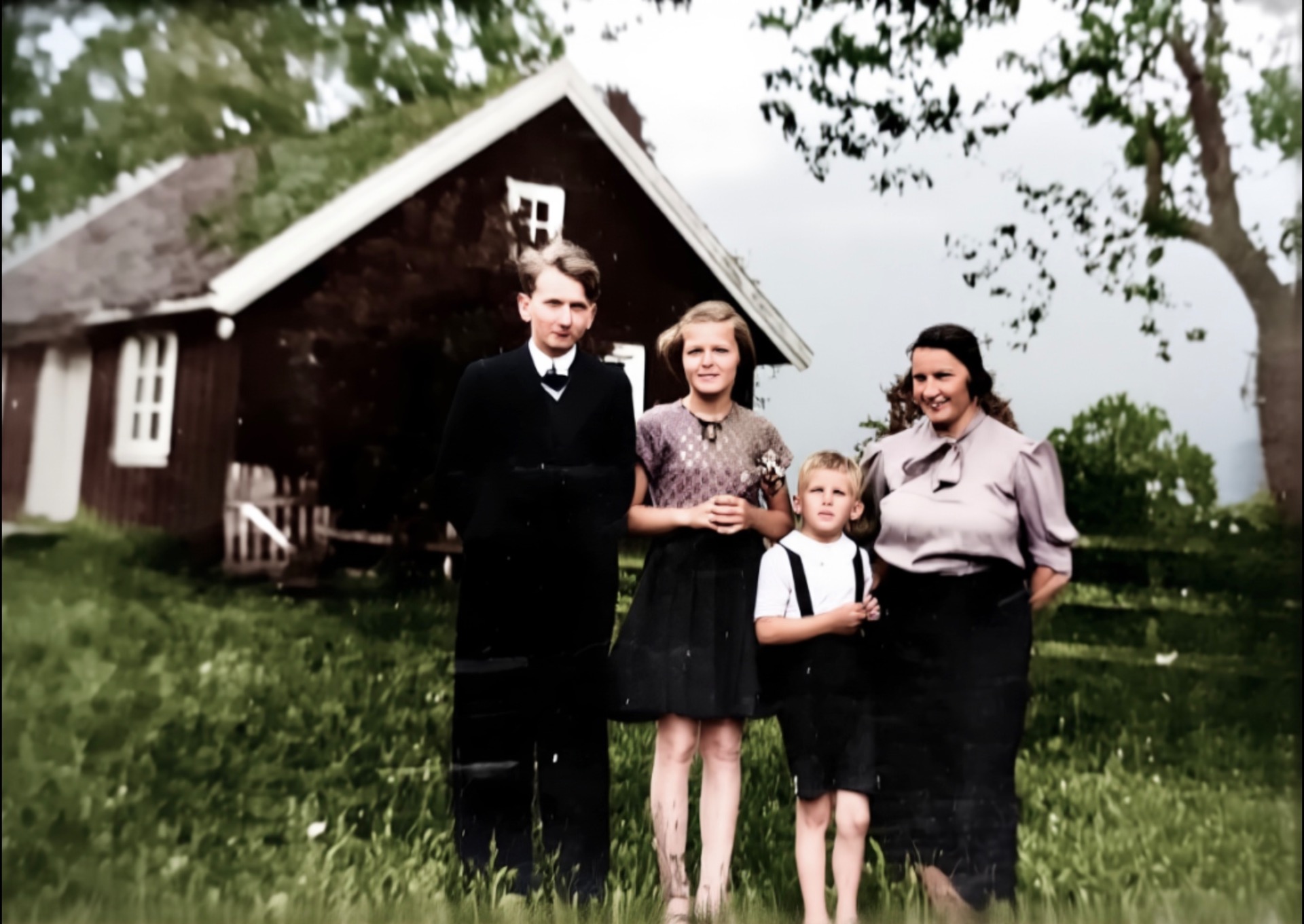 Vi er på nedre Lindalen på Sagene og det er krig i Norge. Kari Nilsen(1902-1982) va født på Funnemark og ho va gift med Andreas Nilsen. Nils Kristian(1924-2016) va sønn av Kari og Gunhild (Ingeborg) (1928-2019) va datter. Søskenbarnet Einar (Godtfred) (1933-2015) står ved siden av tante.