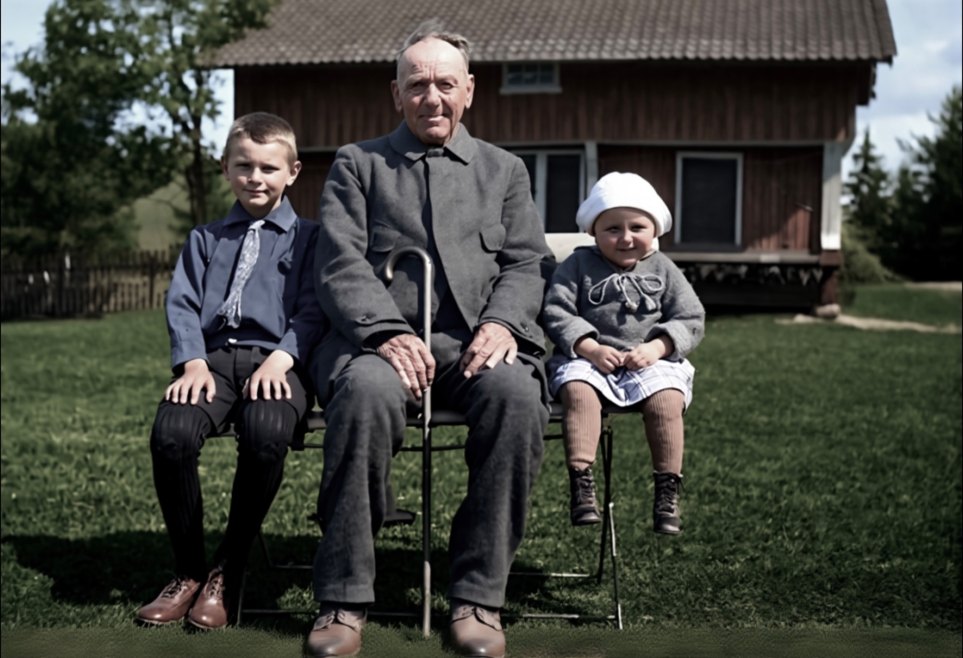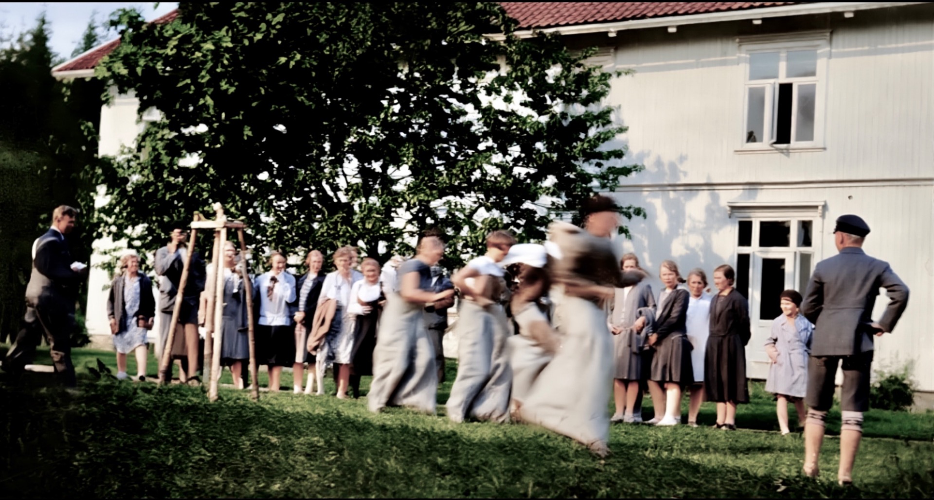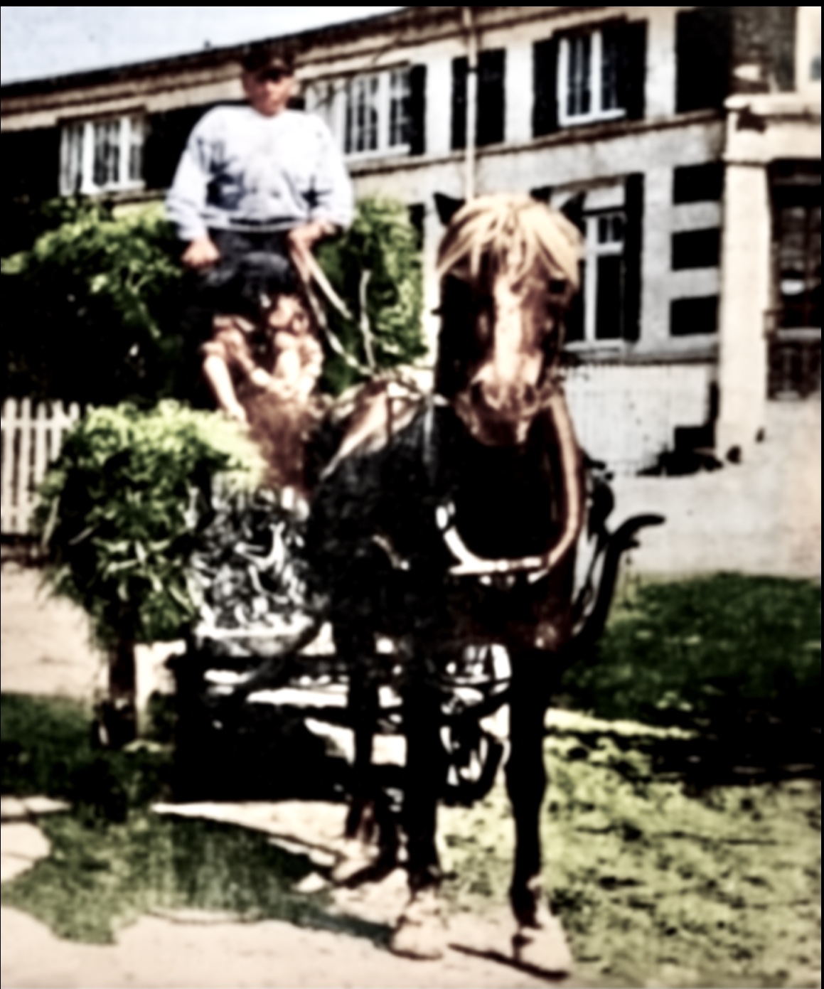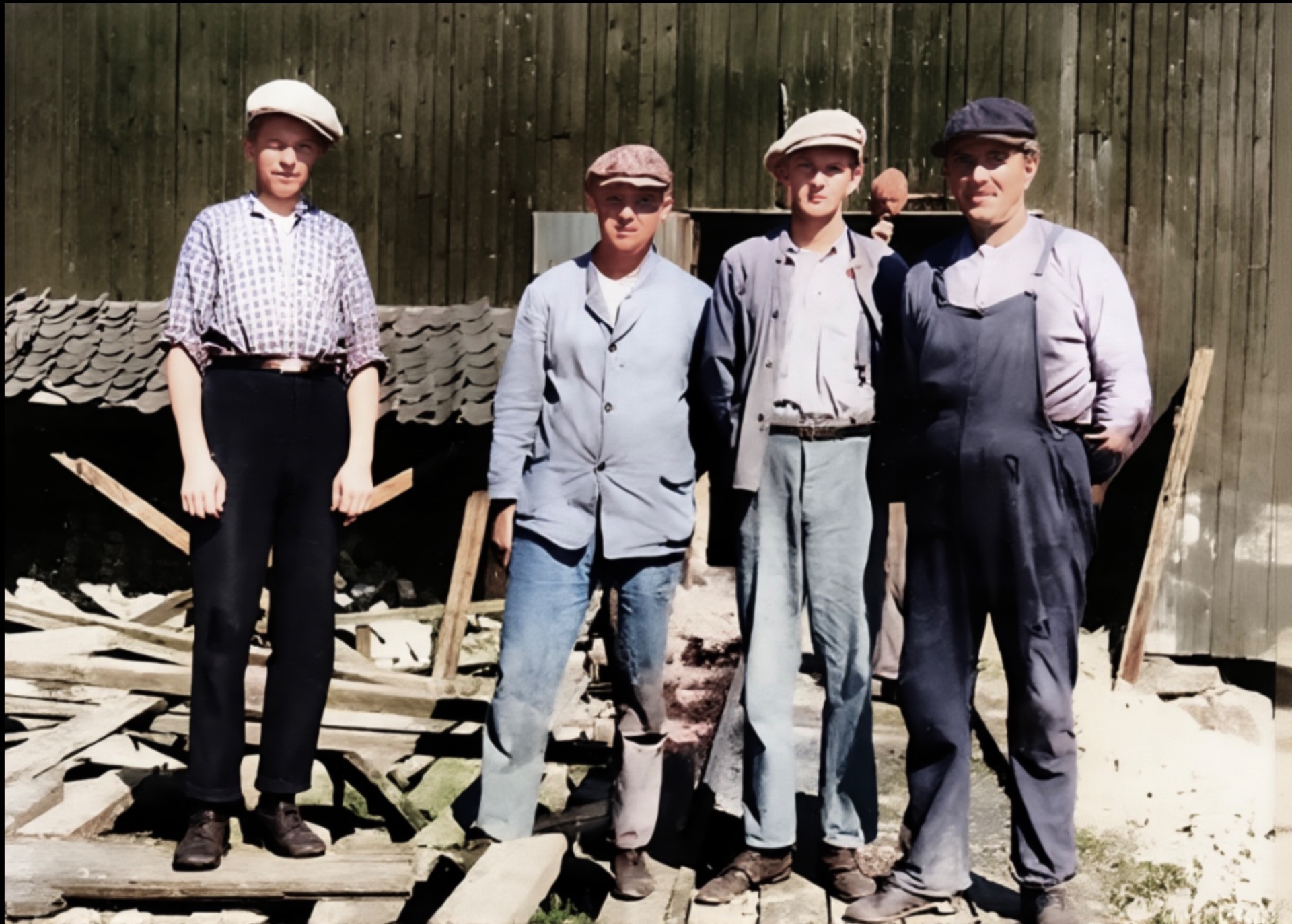 Vi er på nedre Lindalen på Sagene og det er krig i Norge. Kari Nilsen(1902-1982) va født på Funnemark og ho va gift med Andreas Nilsen. Nils Kristian(1924-2016) va sønn av Kari og Gunhild (Ingeborg) (1928-2019) va datter. Søskenbarnet Einar (Godtfred) (1933-2015) står ved siden av tante.
