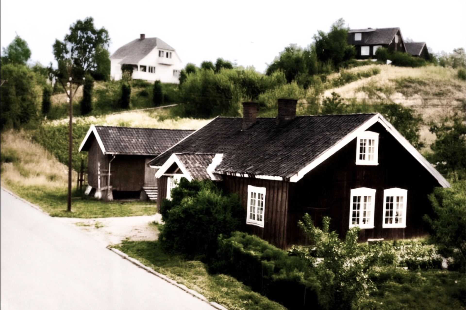 Grønhaug er det midterste av de tre brune husa på Vesthagan