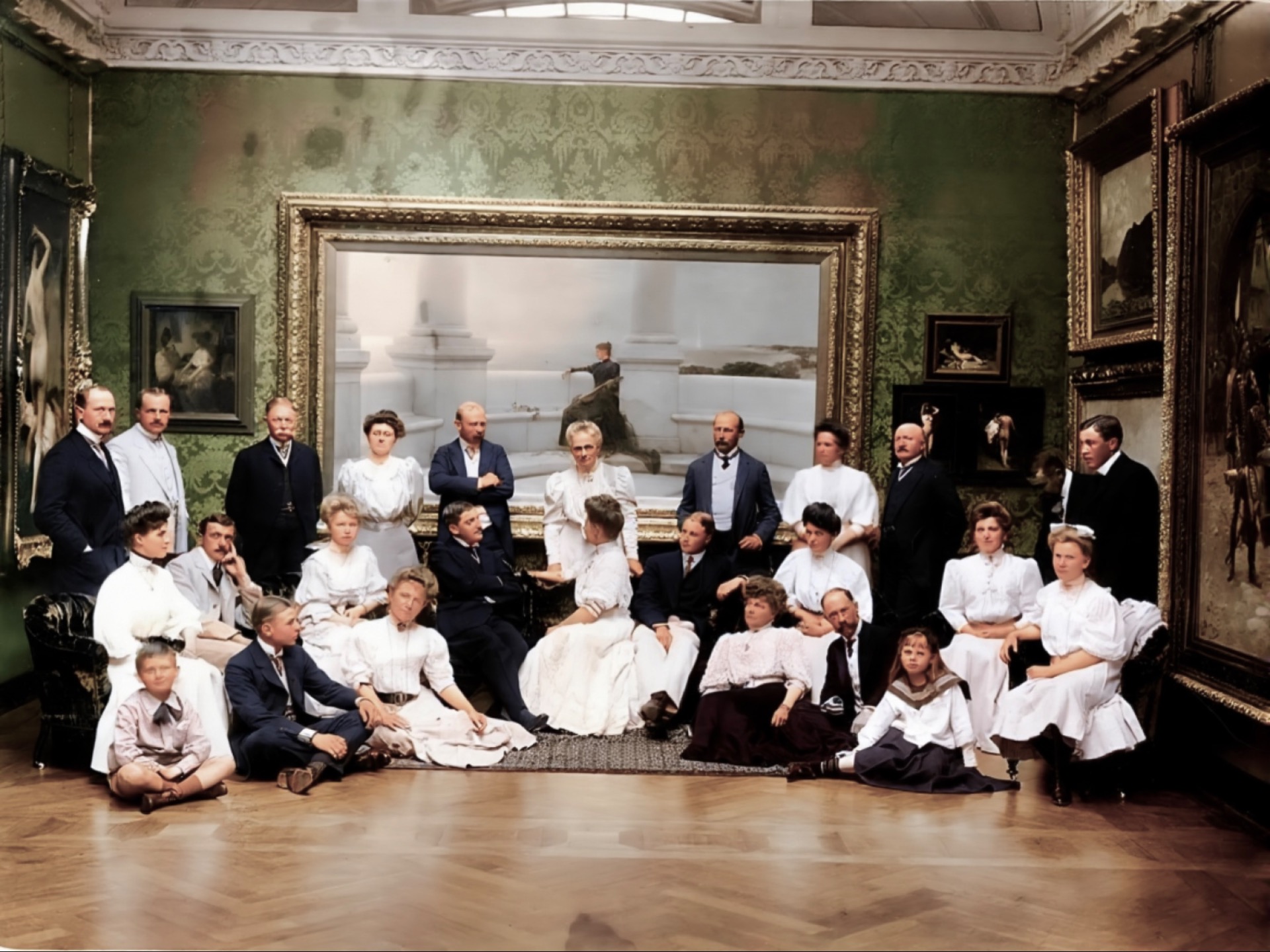 To fotografi te med medlemmer av Aall-slekta, 1905.