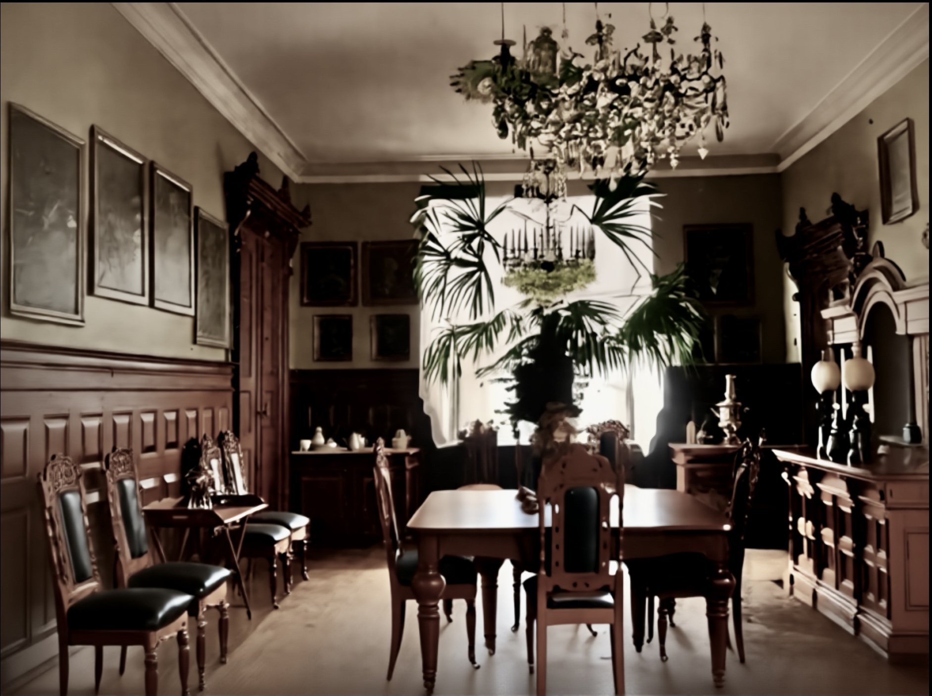 Spisestua på Hovedgården i 1906