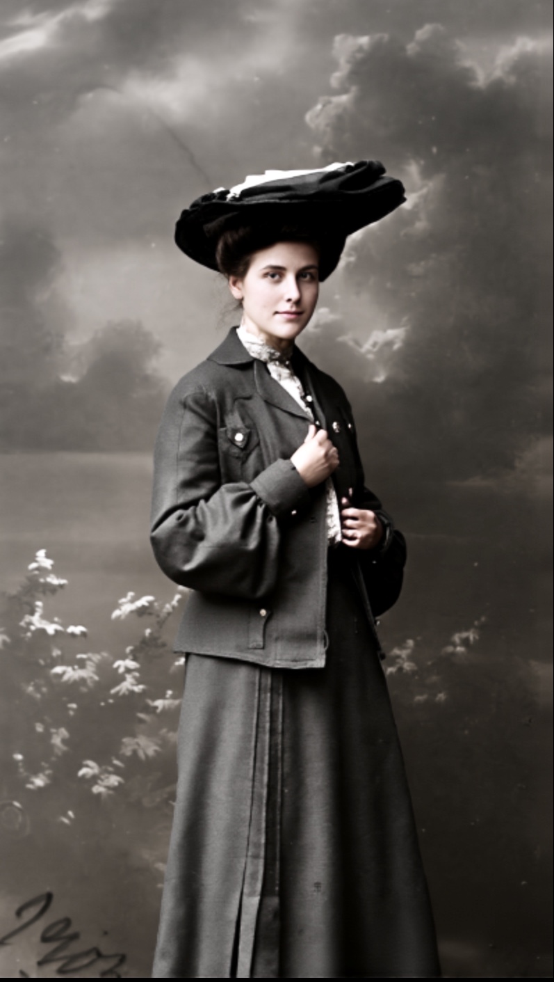 Fra album etter Aall. Karen har uniformslue og plass te ein passasjer.