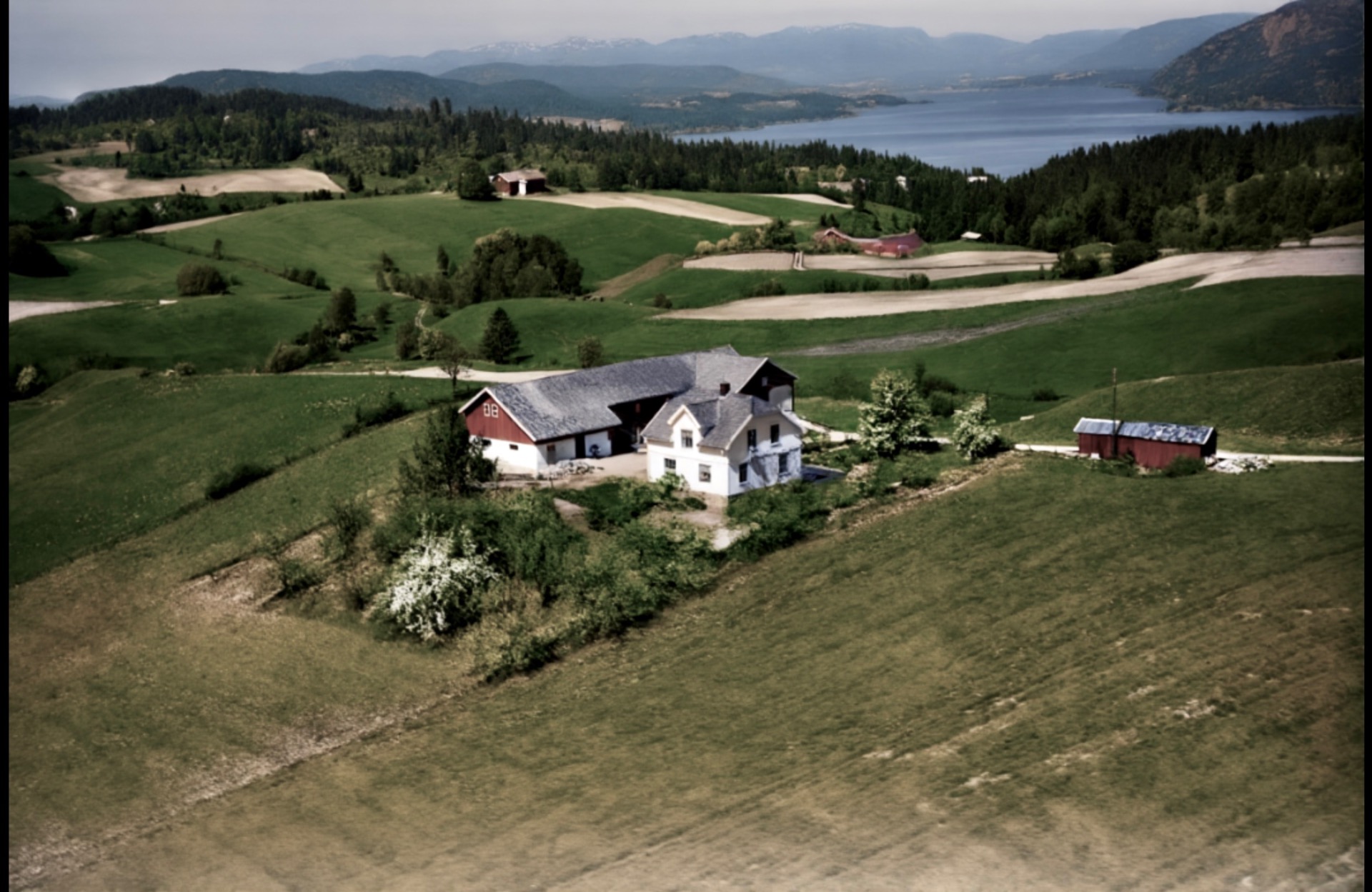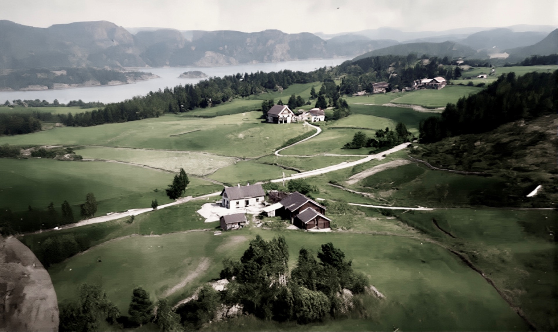 Høsten 1927 på Søve med eika mot Tufte i profil.