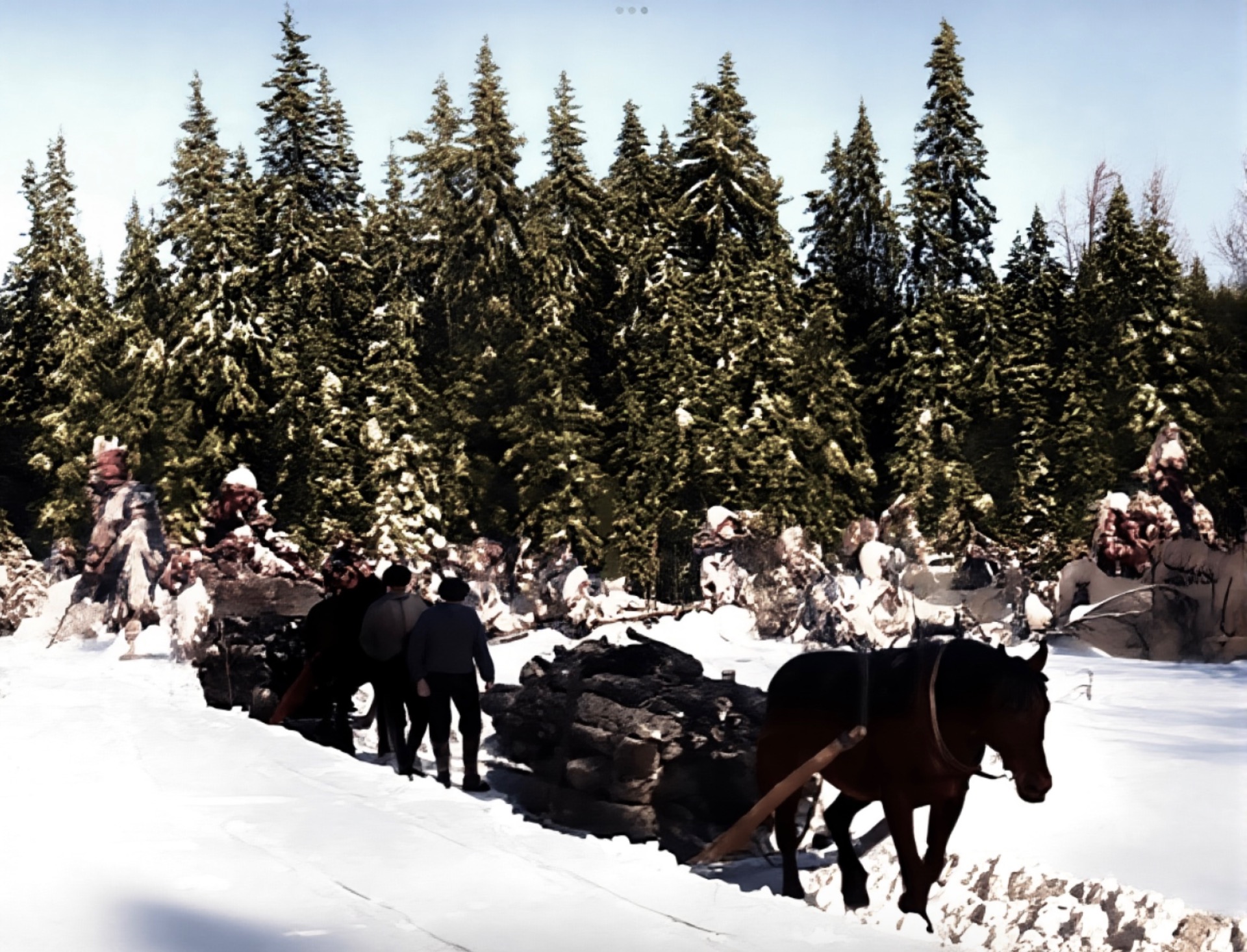 Karl Kronborg, Kristian Herregården, Lars Fjeldstad og Hans Fiskestigen er ute på linjebygging.