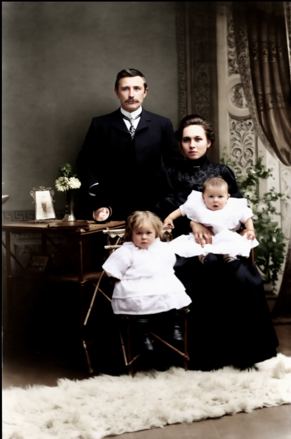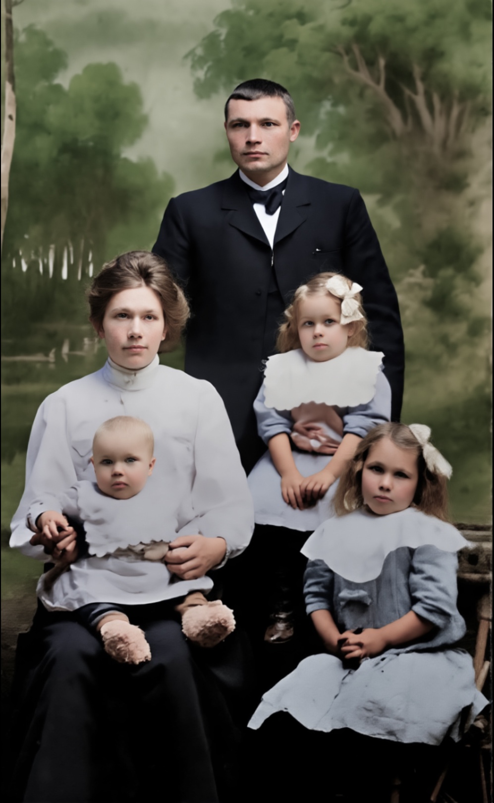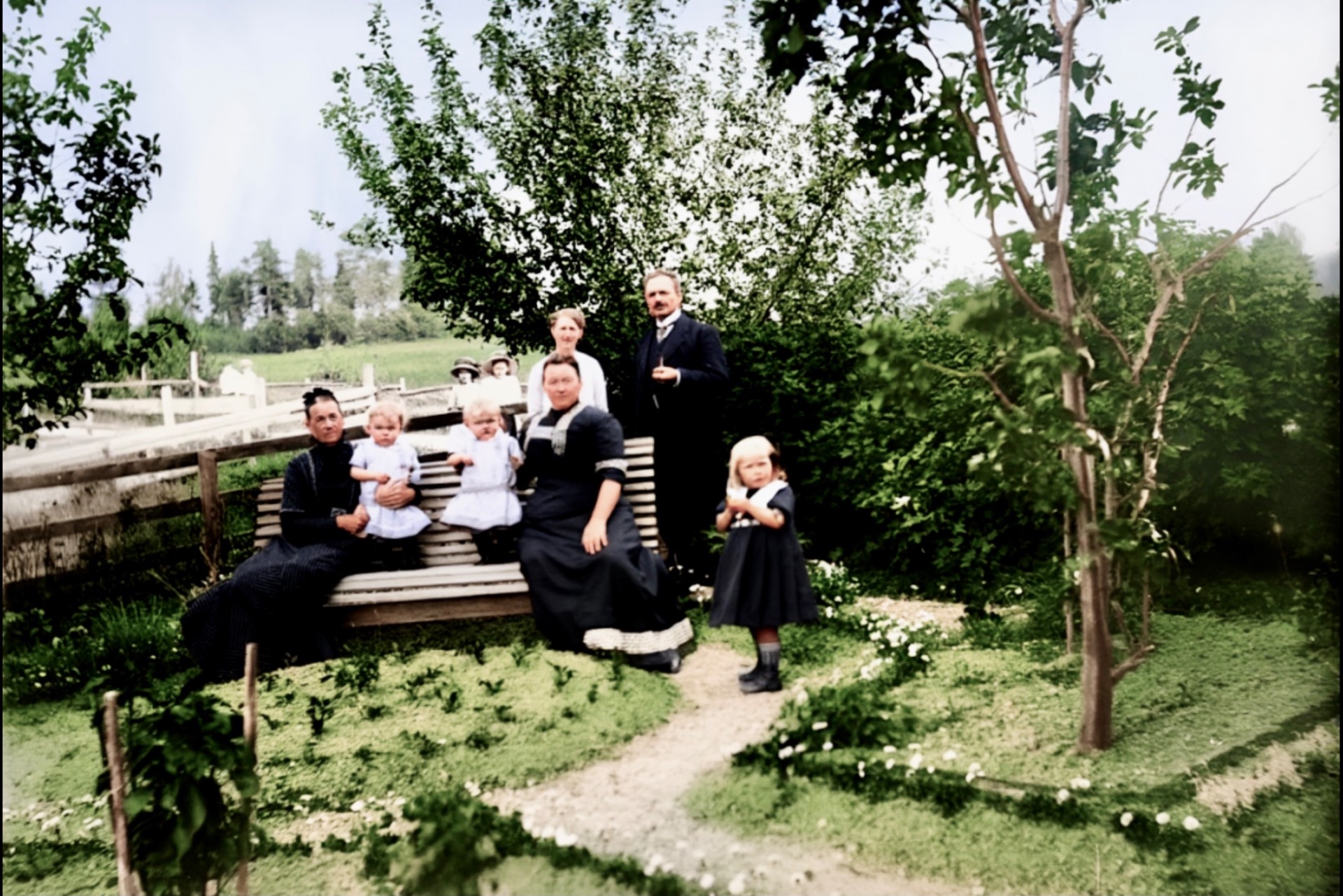 Trulig familie. Fra samme albumet. Fotografiet er tatt oppe på Lanna: (Fotograf Kirsebom, Ulefos)