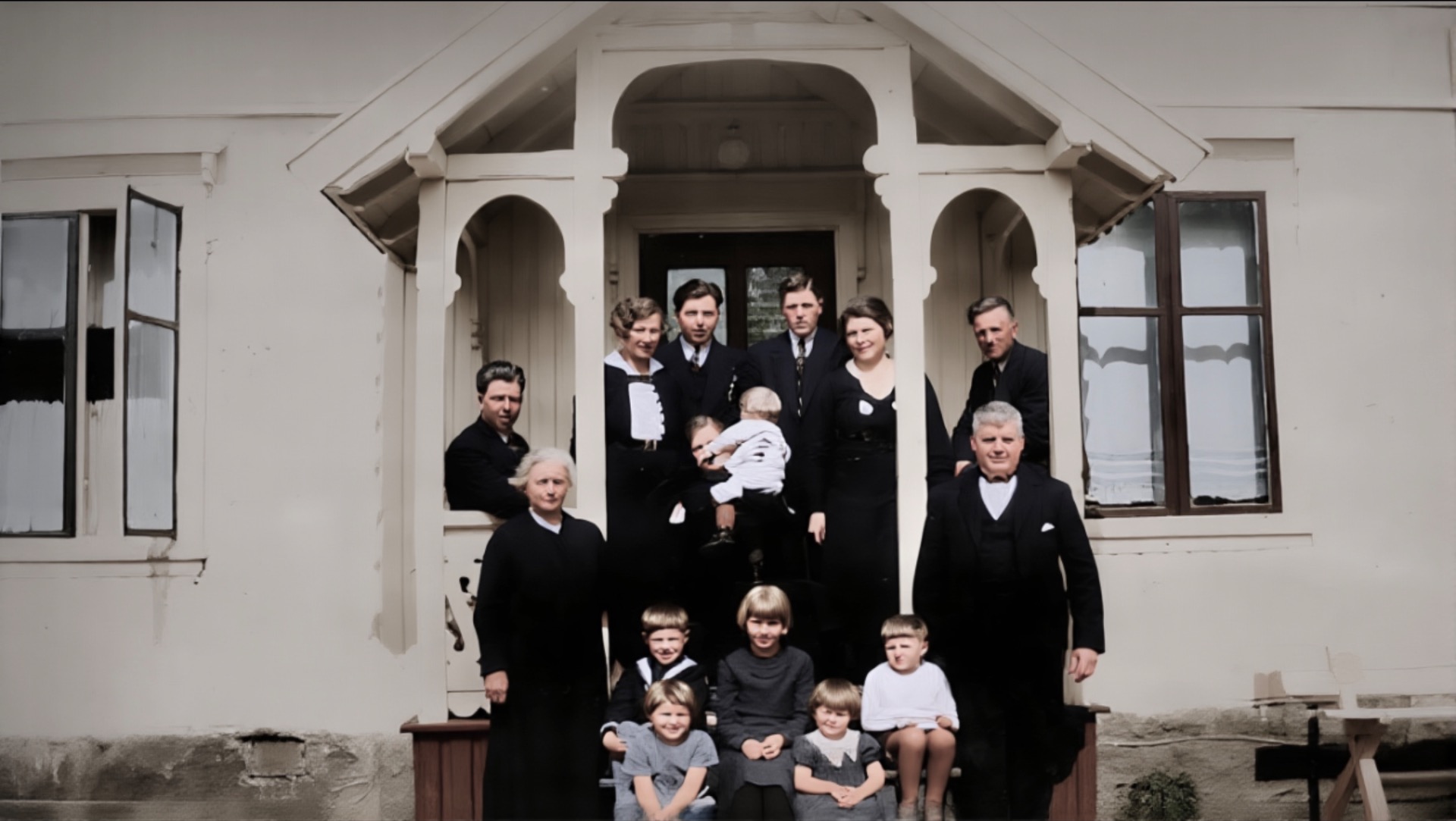 Martin og Anne heime på Notodden med barn og barnebarn. Før 1940