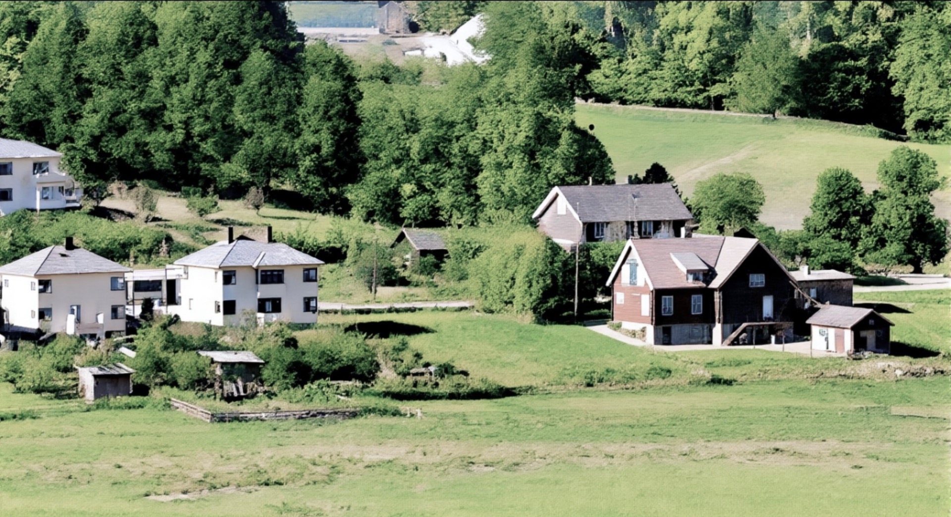 Vi er oppe i Kållasbakken og ser nedover. Nærmast har vi plassen te «Jørgen kollabrennar». Huset hans lå omtrent der du kjørte opp te det gamle herredshuset. Lengst te høyre kan det væra verksplassen Sverge vi ser. Nærmast parken i Holden ser vi nok ein verksplass. Det er bilder av våningshuset og da tatt fra motsatt side. Denna plassen har i dag ikke noe navn, men det har den hatt!