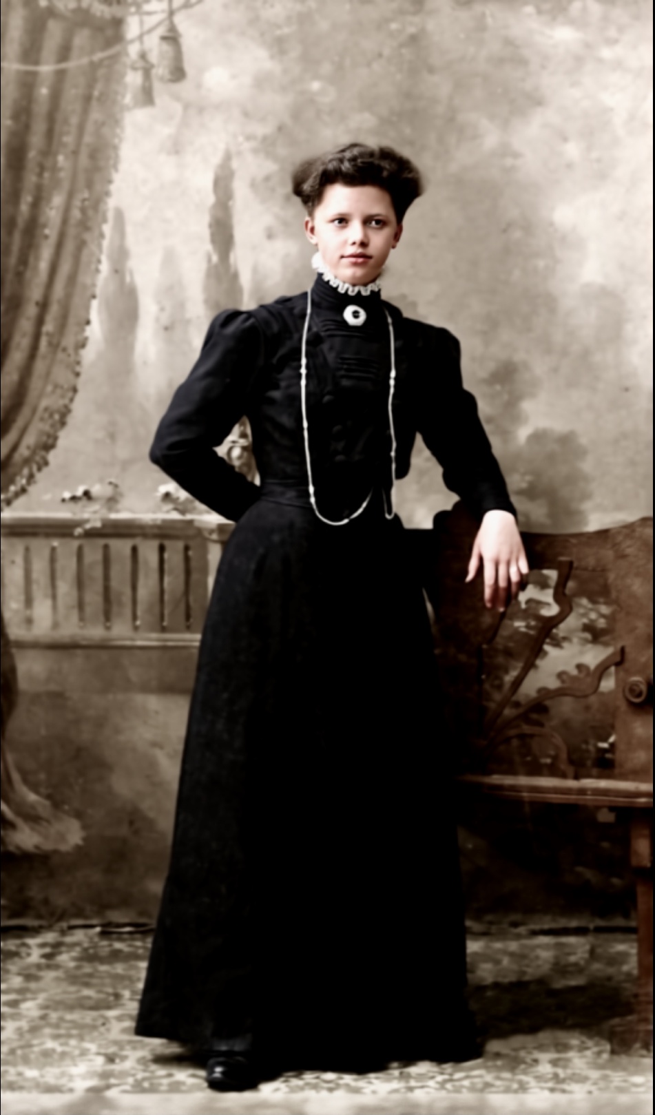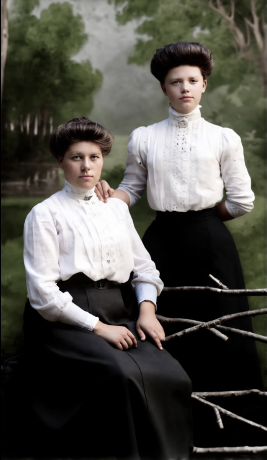 Alle fire ungane har blitt tatt med te fotografen på Lanna rundt 1906/07. Her har vi Olga te venstre sammen med søstera Hanna