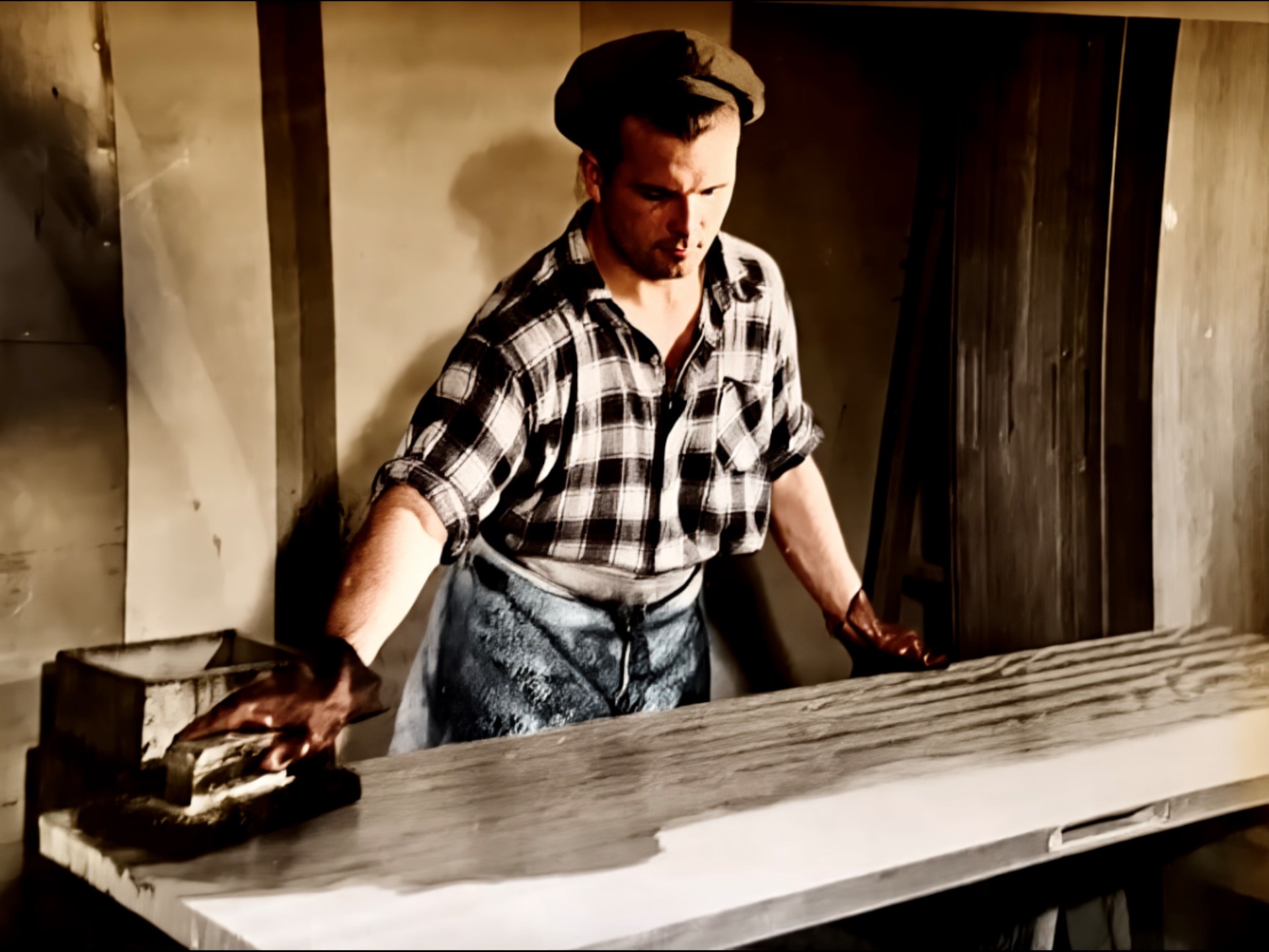 Einar Nilsen lakkerar dørar.