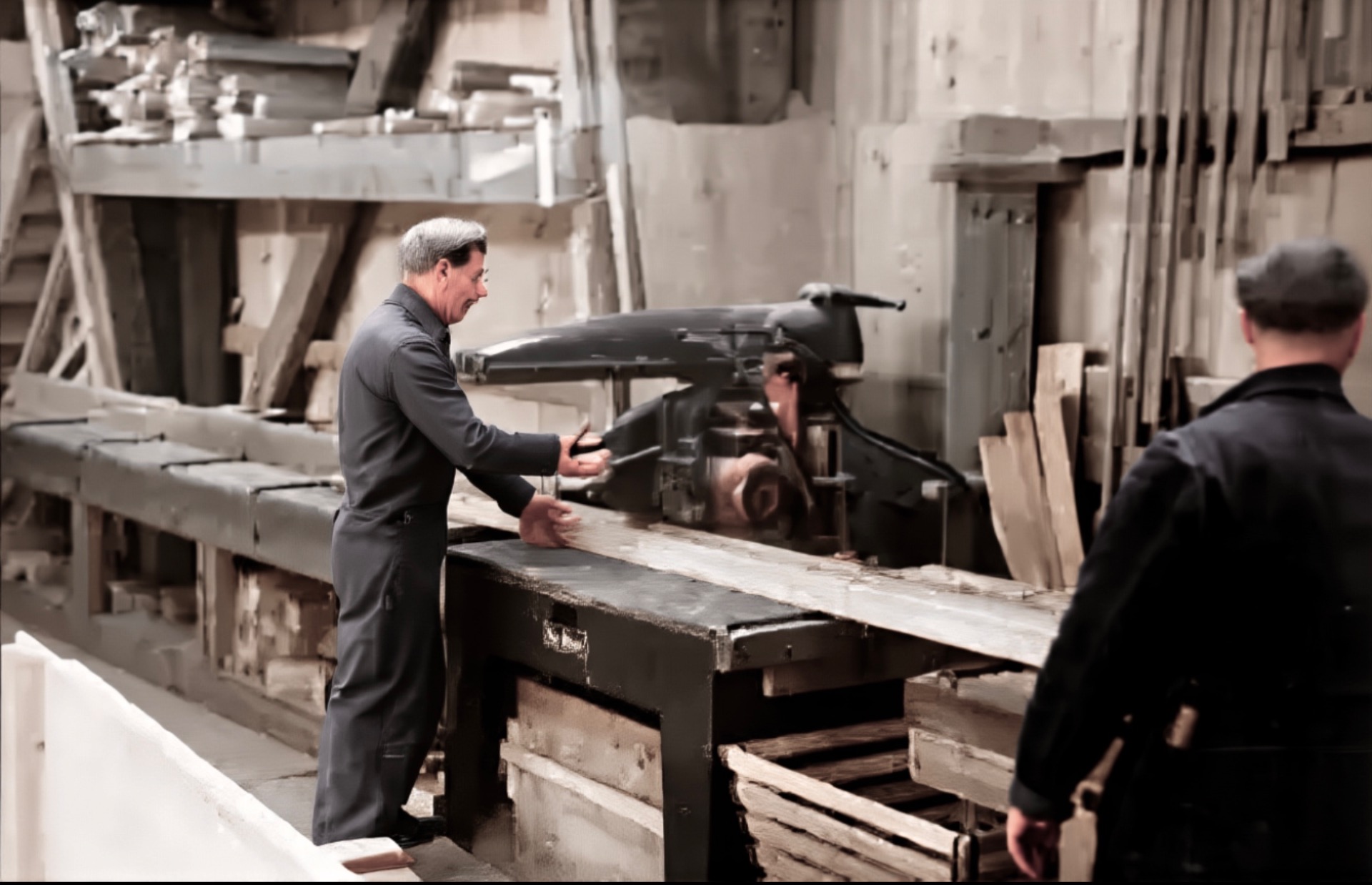 Det va ovnsmontering i detta lokalet i 1950 og i 2010. Nå lagas det ikke ovnar på jernverket lenger!