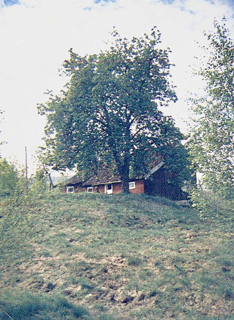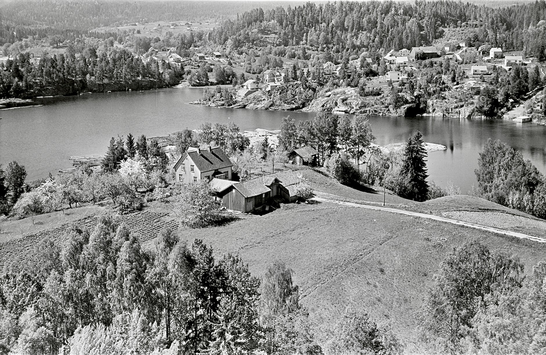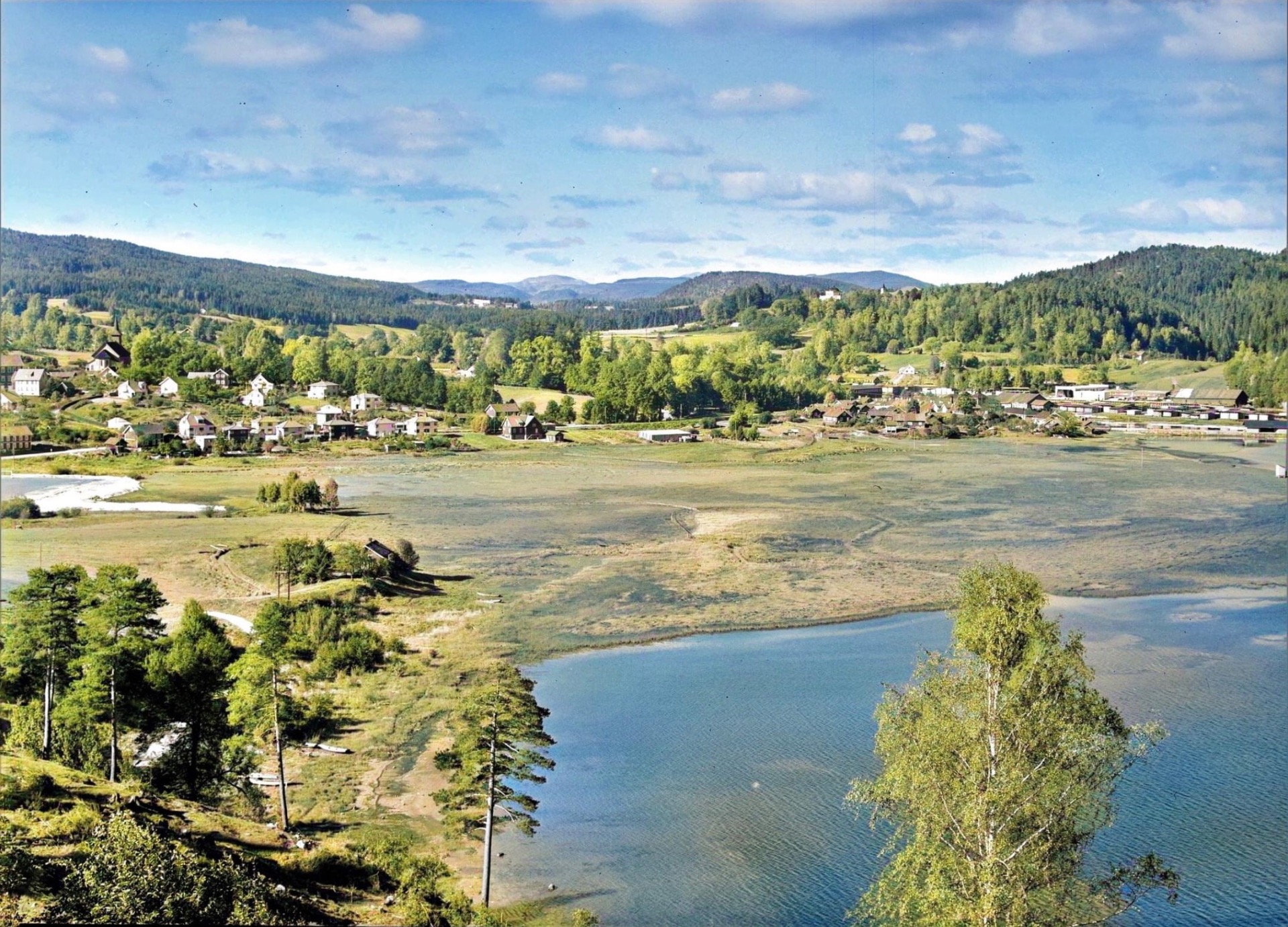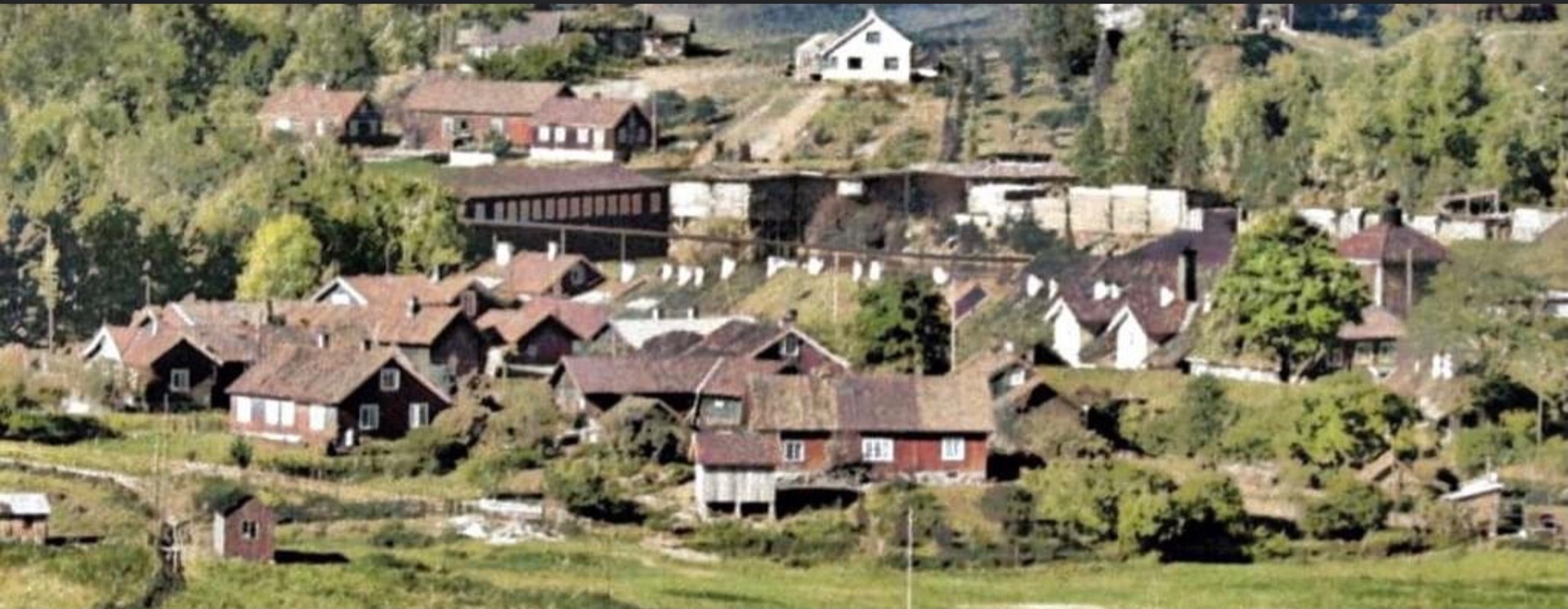 Nyveien er i dag planta igjen, men før va detta området havner for mange plassbrukere. Te høyre ser vi uthuset på nedre Dreier.