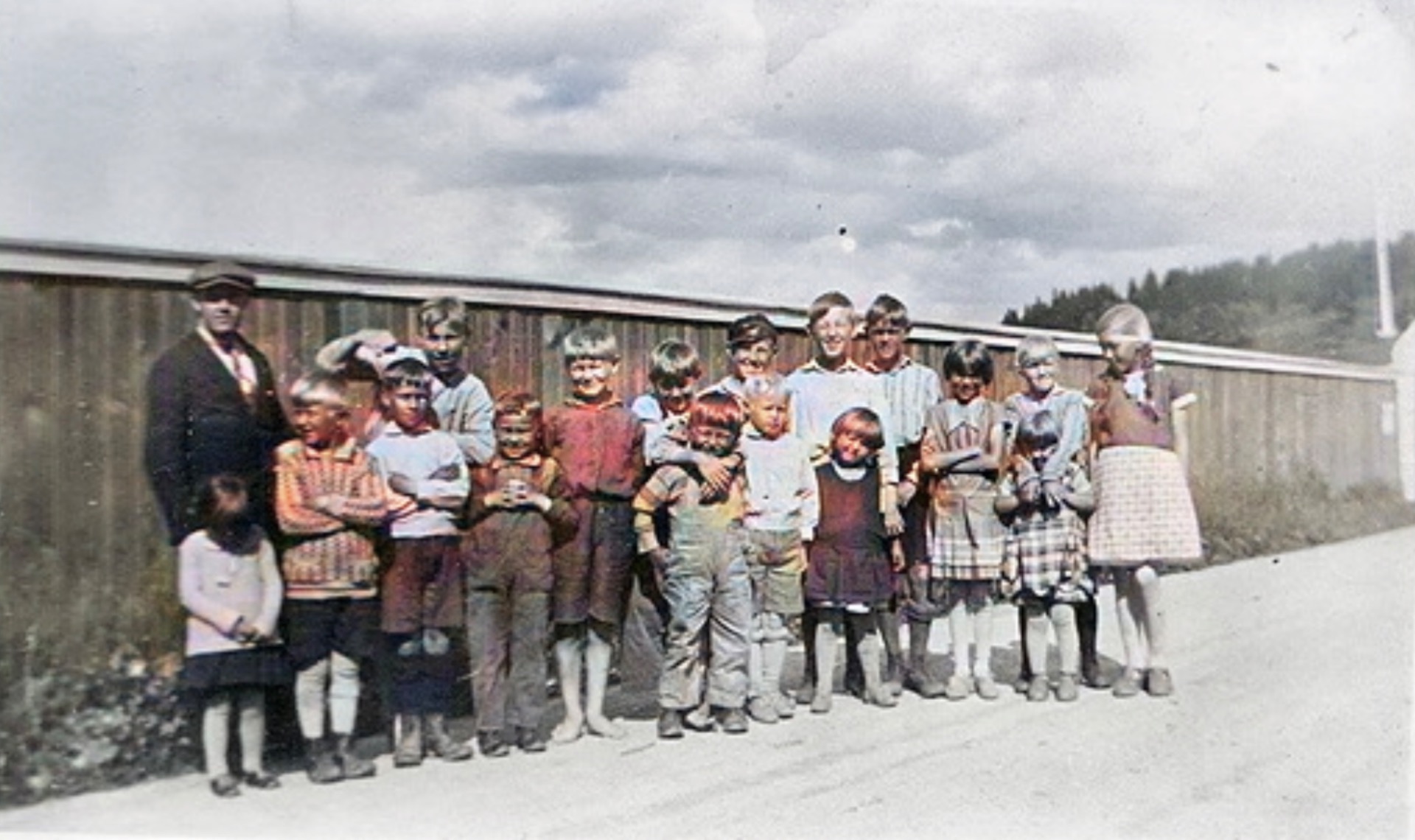 Nordre eller nedre Fen i 50 åra. Se det fine våningshuset som blei rivd på grunn av skolen. Kanskje framskrittet av og te burde tatt et skritt tebake for å tenke seg om? Bedehuset på Fen bak skolen og bygget te høyre for bedehuset va ei stund gymnastikksal.