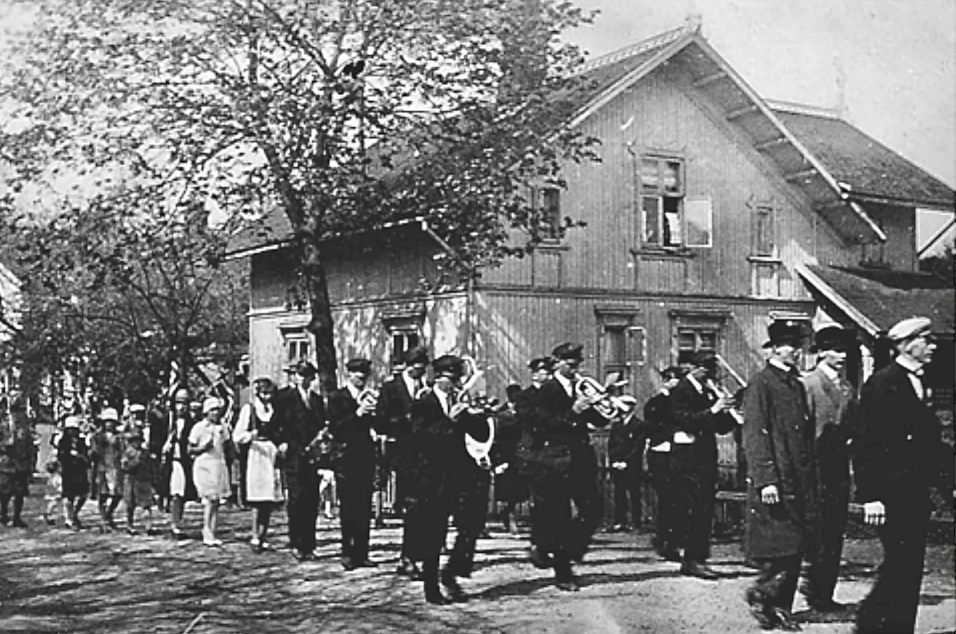 1. utgava av Aaheim! Så blei det bygd nytt som blei innvia på slutten av juli 1898. Detta brant ned med alt av bygningar i 1920 og vi fekk siden den 3. varianten som også brant, 100 år etter i 2020.