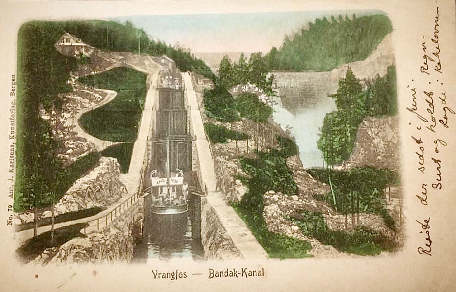Bandak kanalen 1971. Slusing på Ulefoss og Vrangfoss