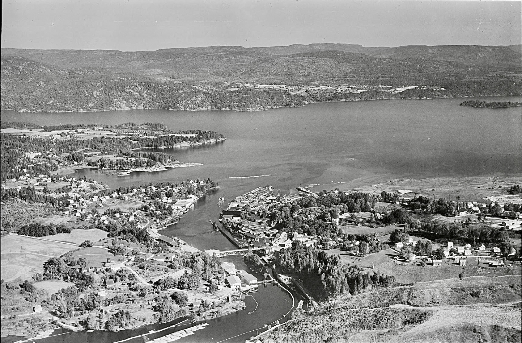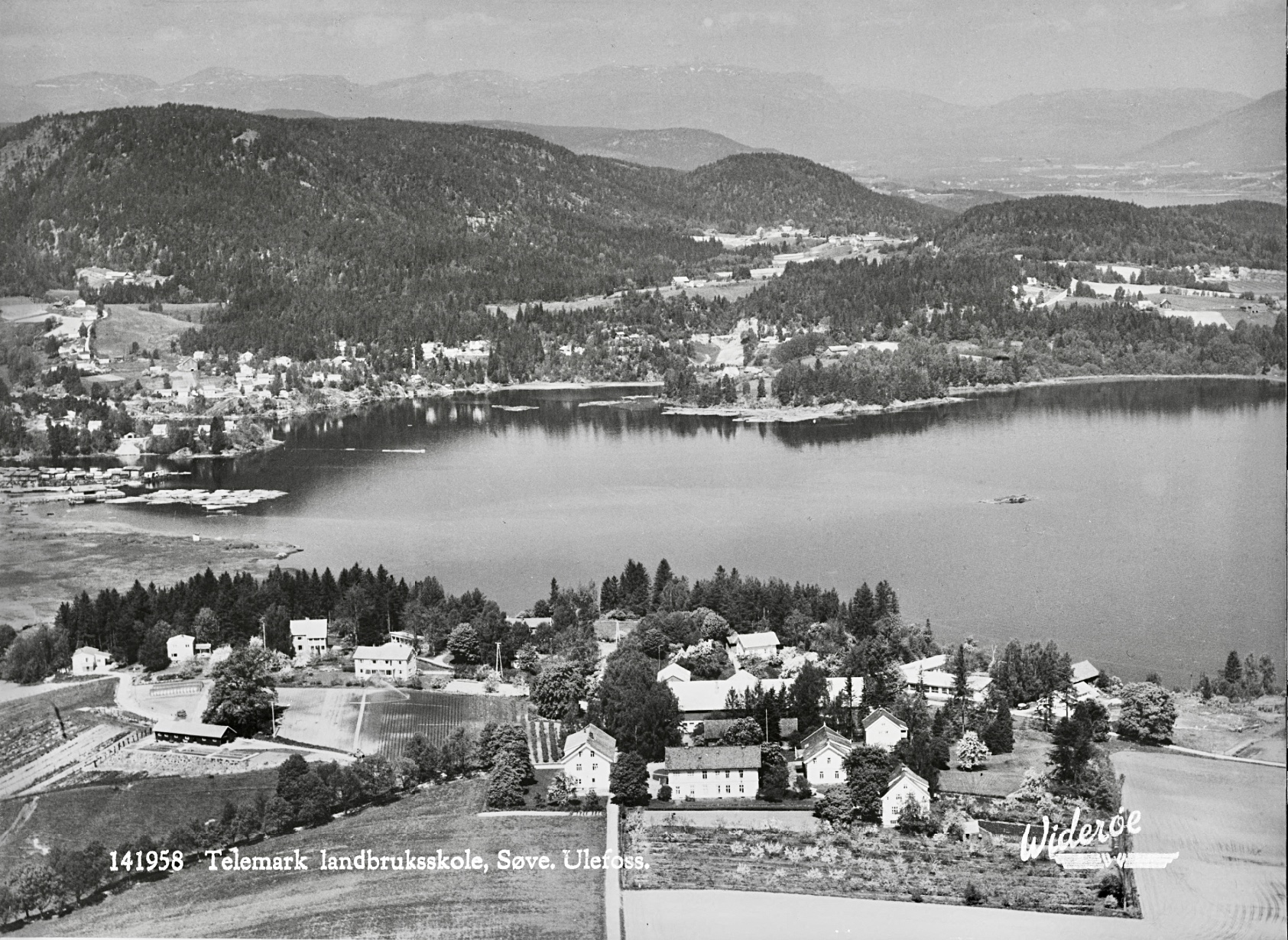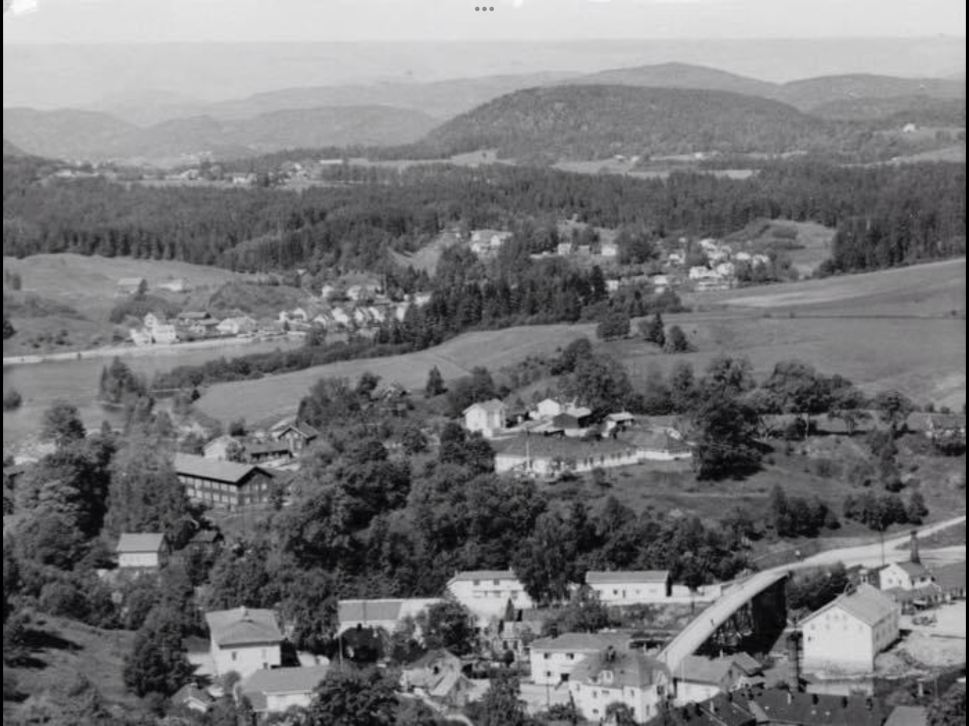 Krøsset med Lille Ulefos, Sagbrakka og deler av Sagene, rundt 1958
