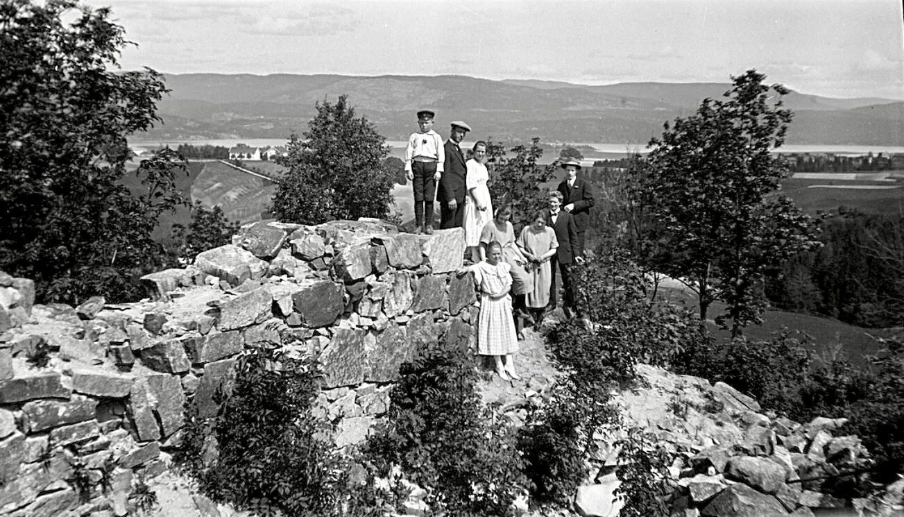 Fra venstre ser vi Olga og Magnus Einerhaugen. Så ser vi Ingeborg Einerhaugen. Hennes mann så vi i bildet over. Så ei ukjent. Videre har vi Anne Lise Einerhaugen som er dagens eier av søndre Einerhaugen. Hallvard Einerhaugen følger så. Han va sønn av Magnus og Olga og Anne Lise sin far. Han lengst te høyre er foreløpig ukjent.