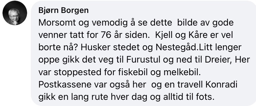 Ein stor takk te Tore Larsen for å gjøre svarthvitt bilder og kort meir levande gjennom farger. Han har i tillegg spora opp mye flott billedmateriale gjennom mange år og gleda mange!