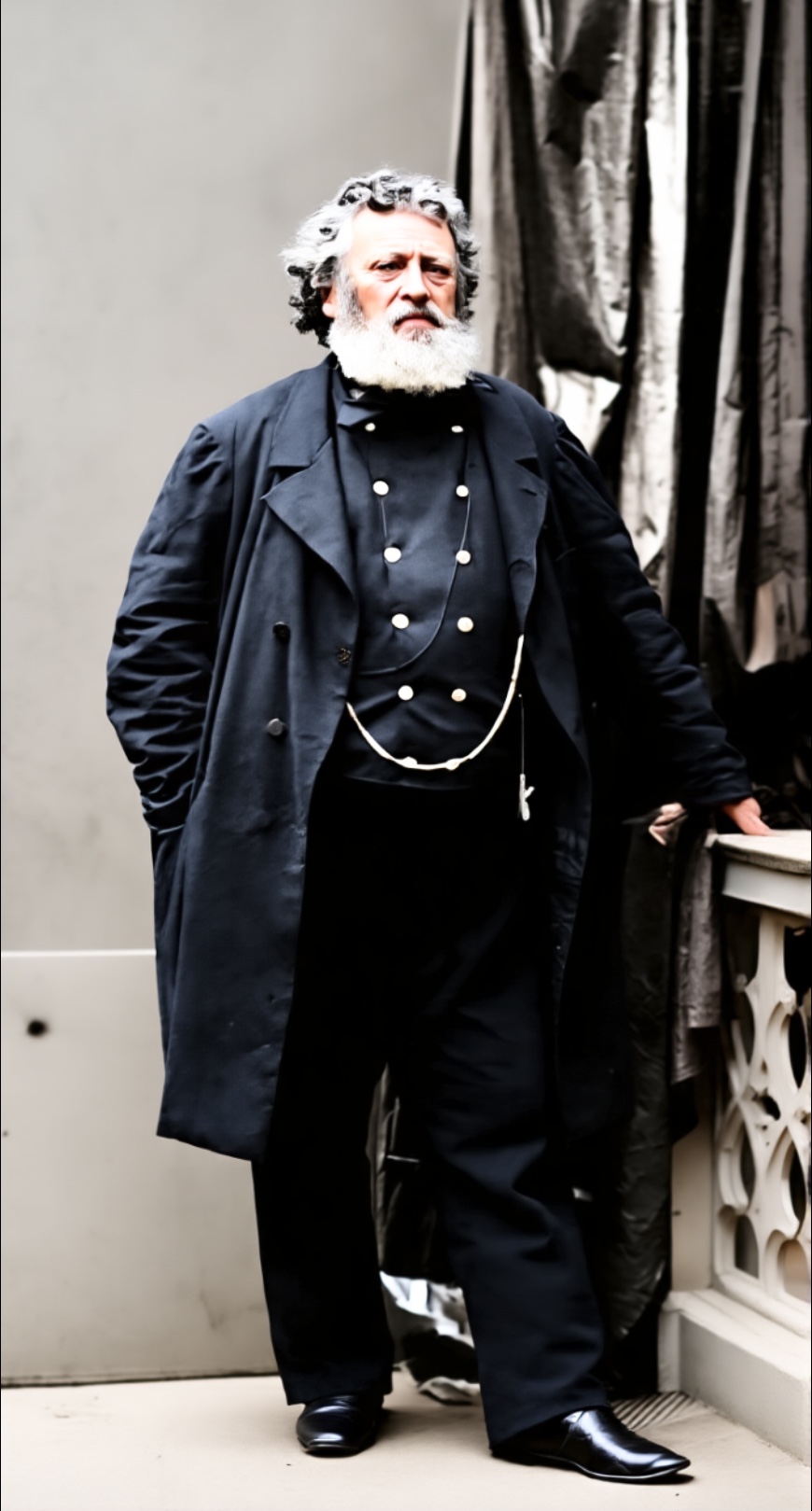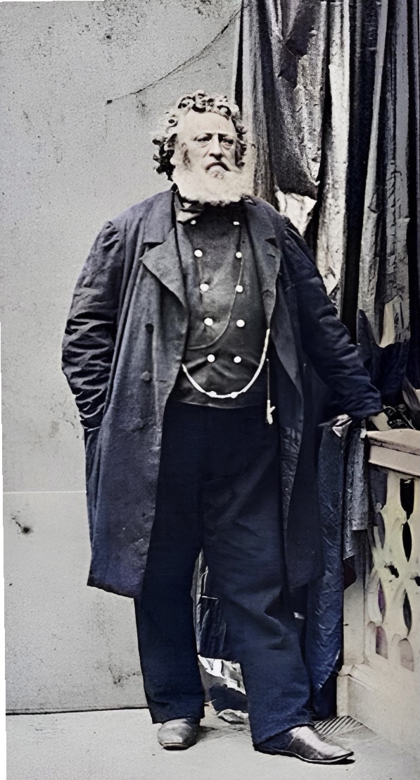 Han hadde vært ein kjekk mann, men bar nå preg av oppblåsthet etter for hard drekking. Han hadde store grå barter og om livet hadde han ein flott forseggjort jaktkniv i sølv. Ved behov brukte han ei stor kostbar pelskappe og i munnen hadde han ei merskumpipe. Han oppførte seg som ein nabob, altså som ein superrik som ville vise seg fram. Den dyre pipa si passa han å holde i si høyre hand, slik at alle skulle se de flotte gullringane! Han likte dessuten å skryte av at han hadde åtte ulike titlar! Han kunne fortelle at han begynte med portvin klokka 7 om morran og at han drakk champagne te lunsj!