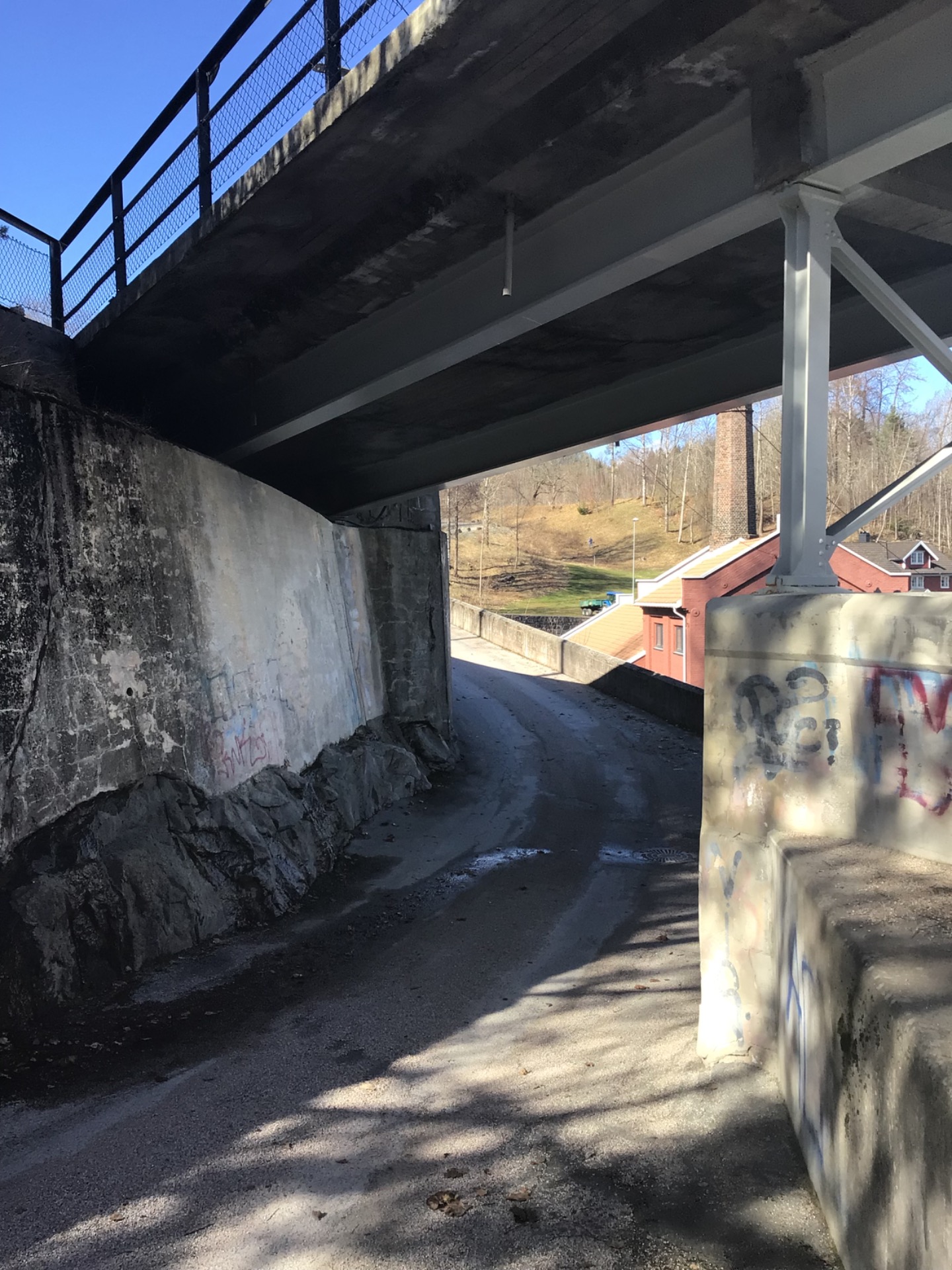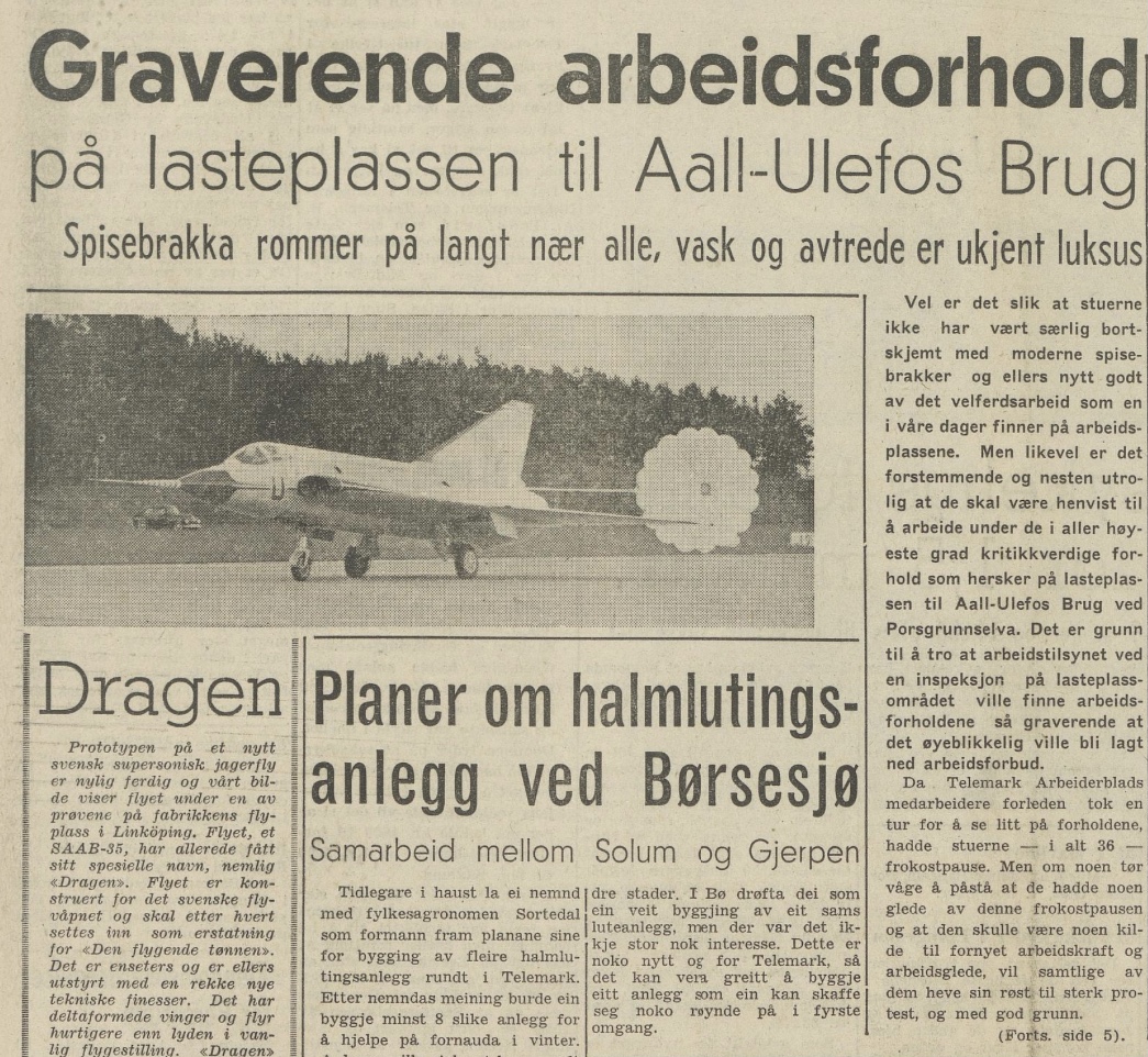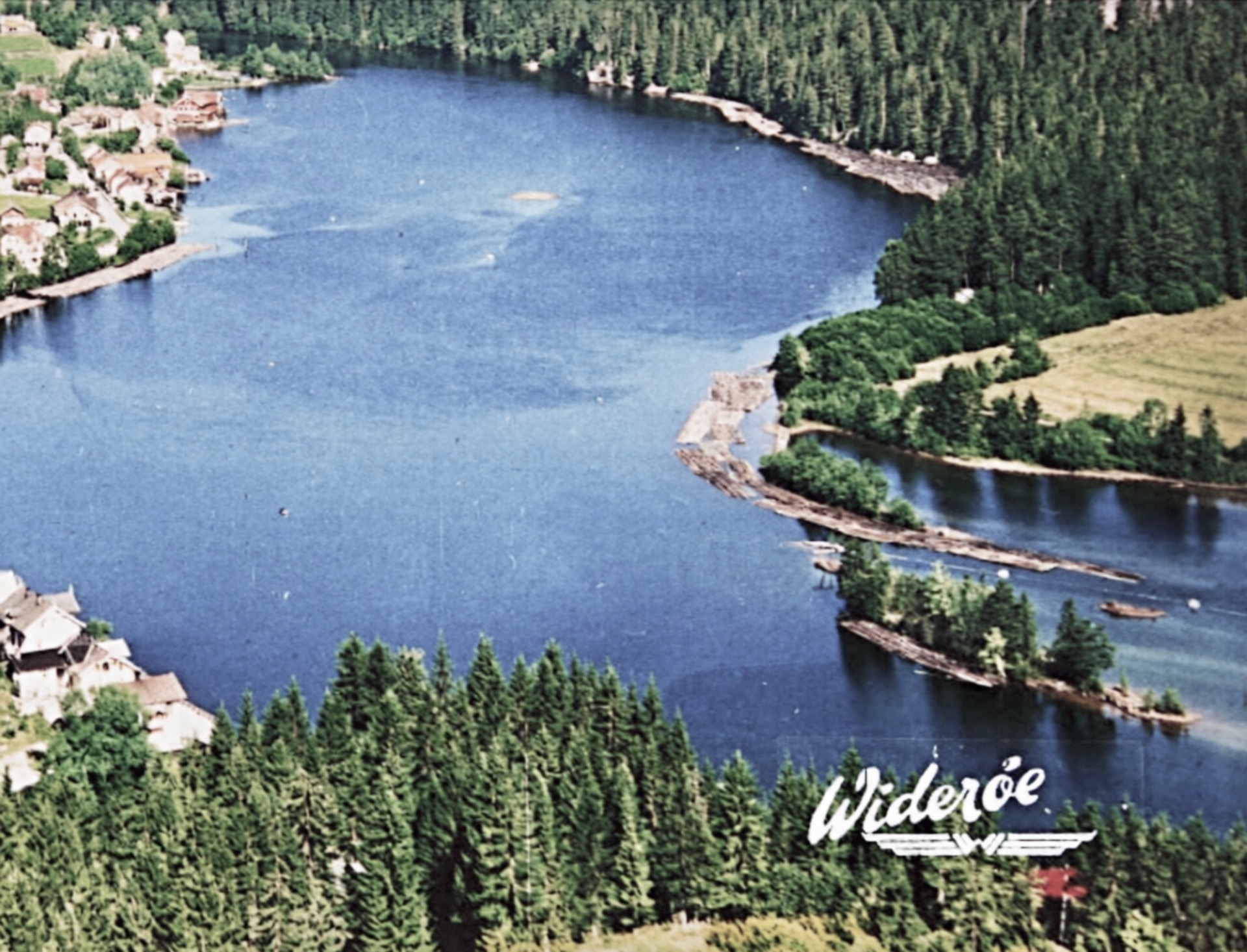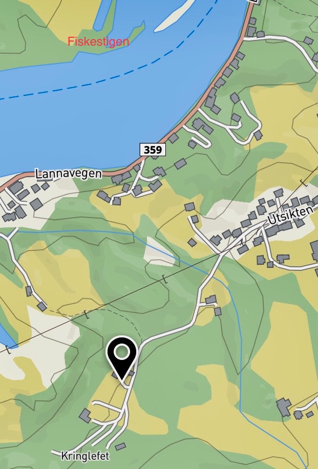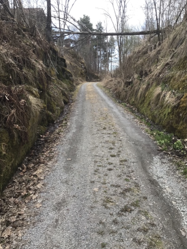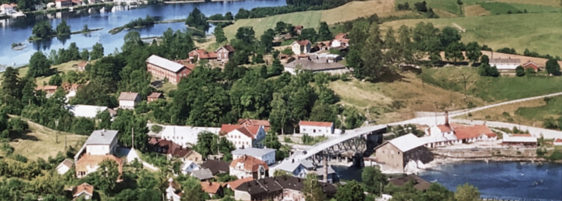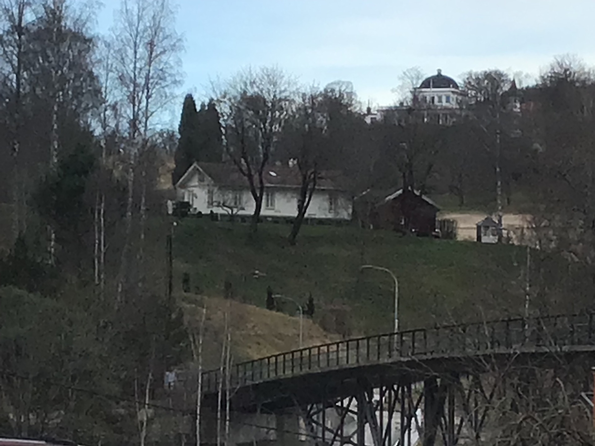 Vi ser tørkeriet te cellulose-massa og vi skimtar ein gammal veistubb som går parallelt med dagens vei. Det røde huset er ein gammal Hølen-plass.
