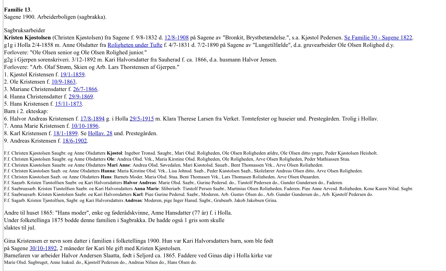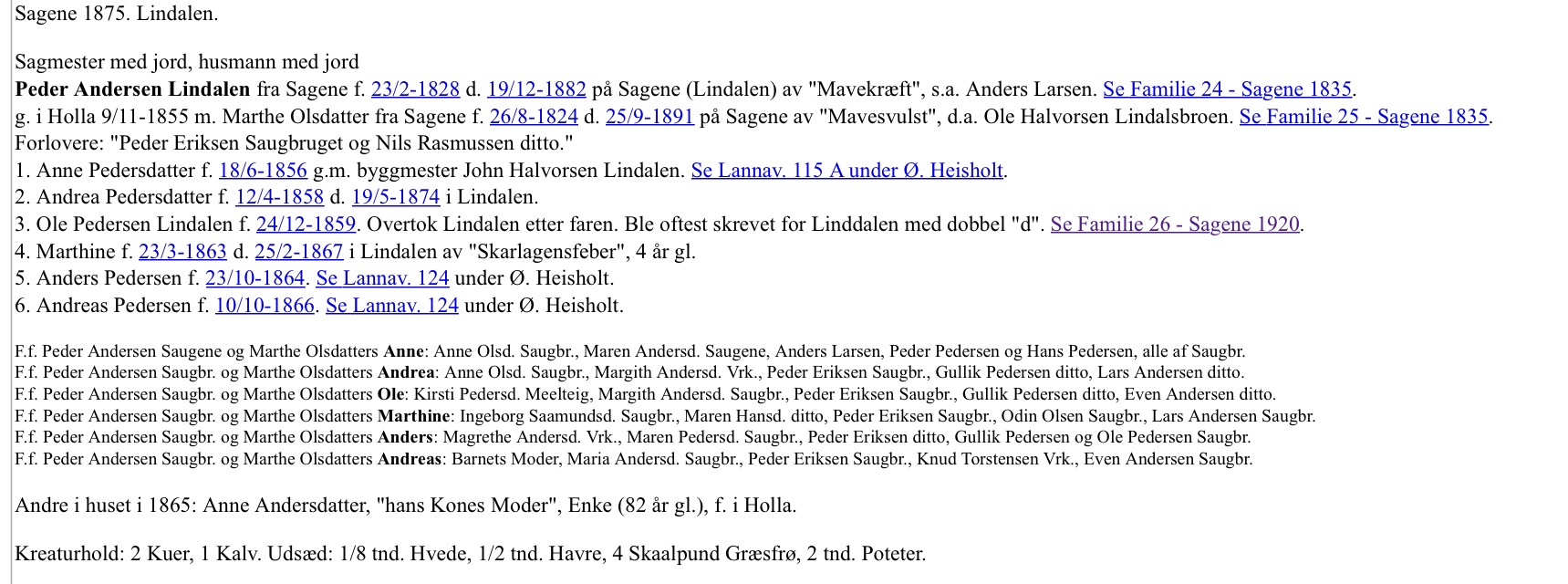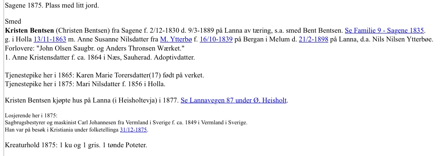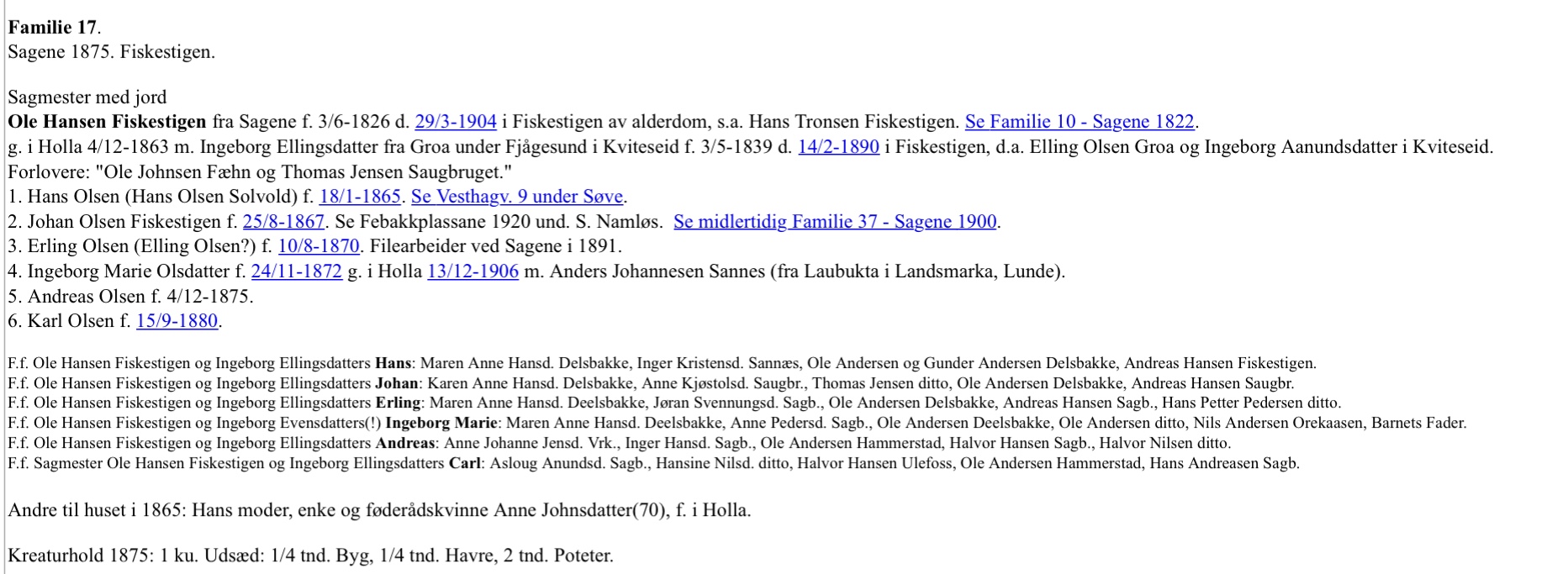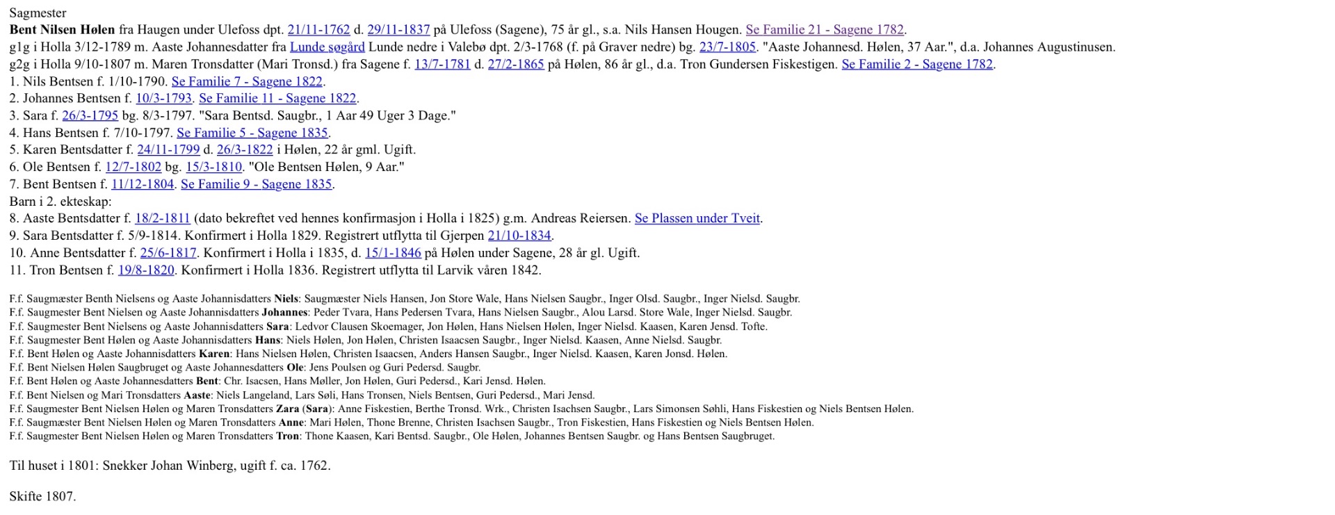 Kildene jeg har støtta meg på er i hovedsak gamleholla.no, nb.no, Holla Historielag og Per Bernt Tufte si bok om Sagene og kåseriet om samma tema som du finner i videodelen te Holla Historielag.