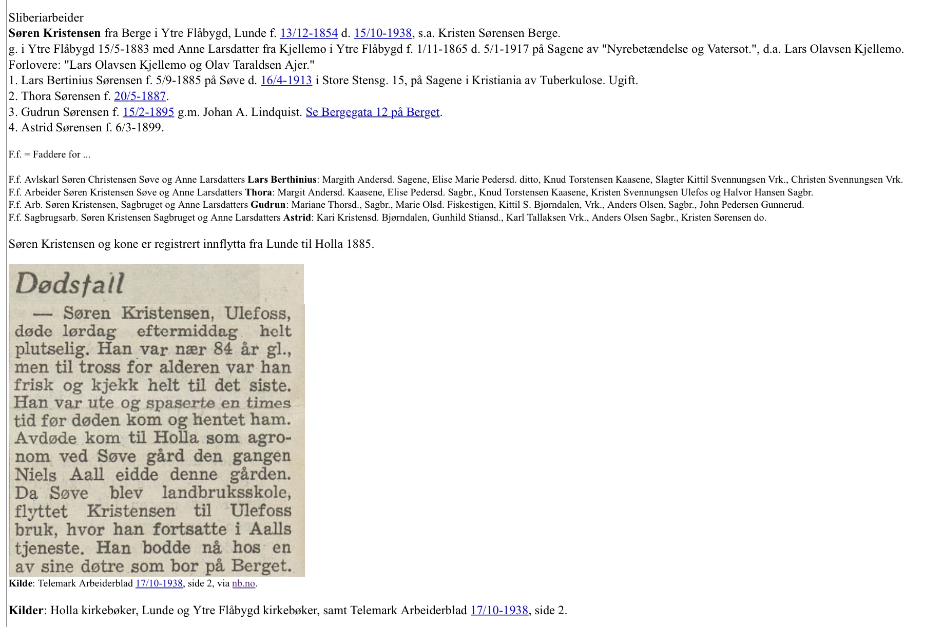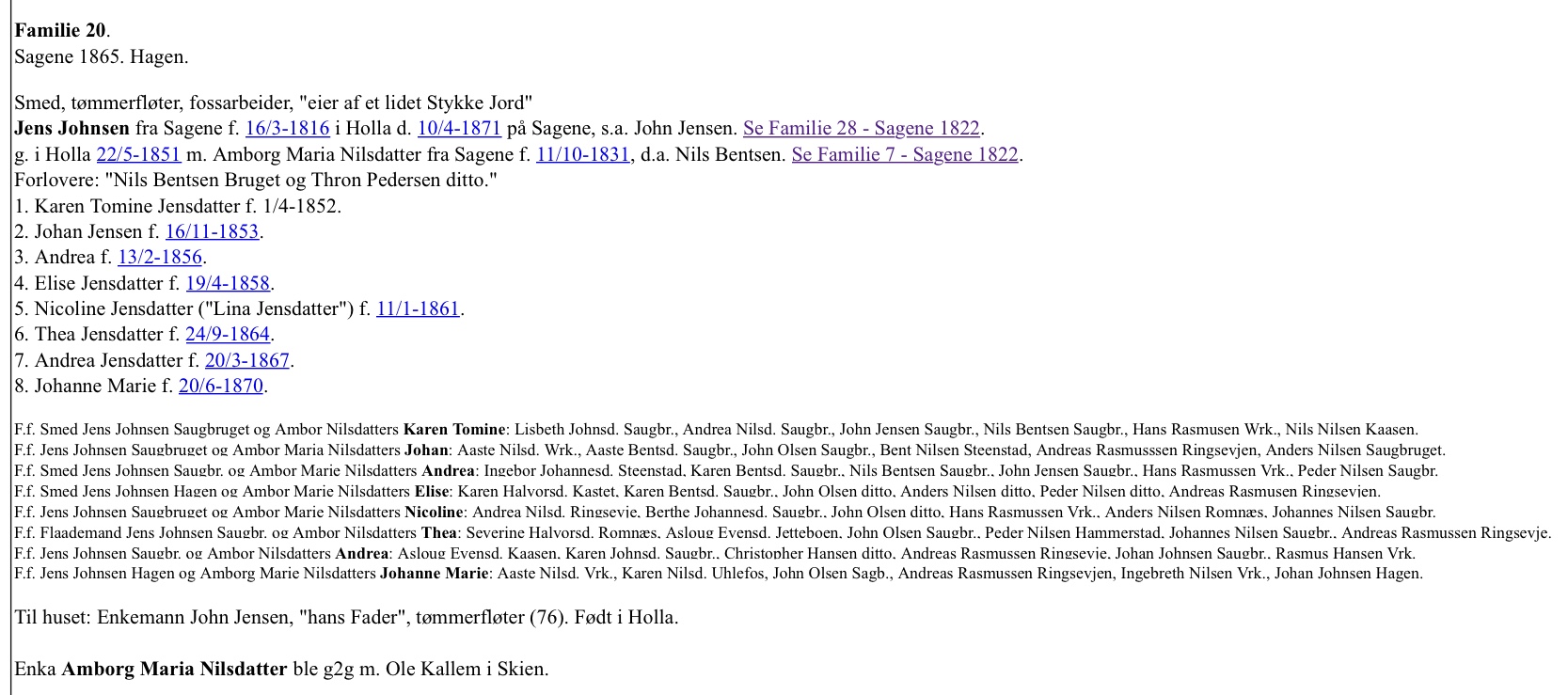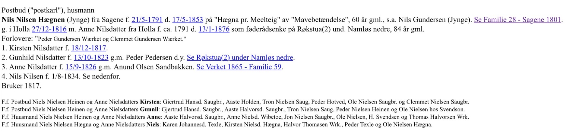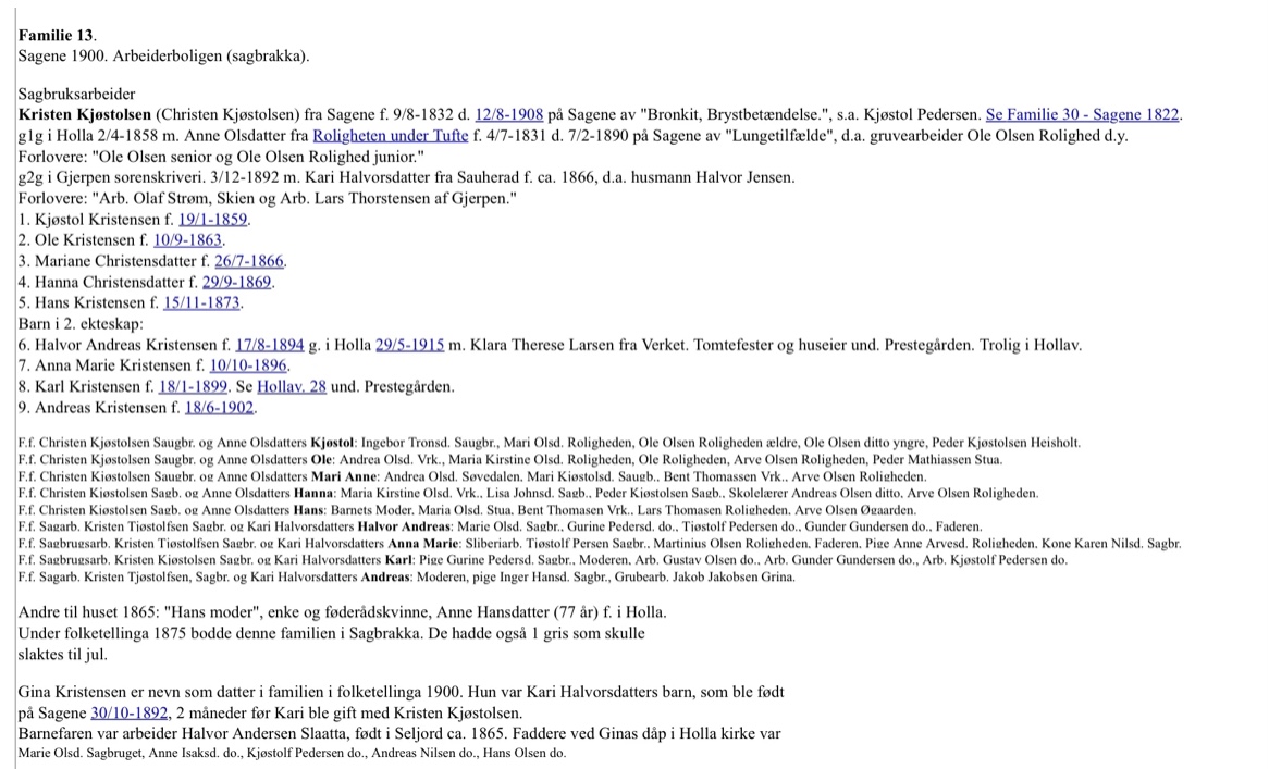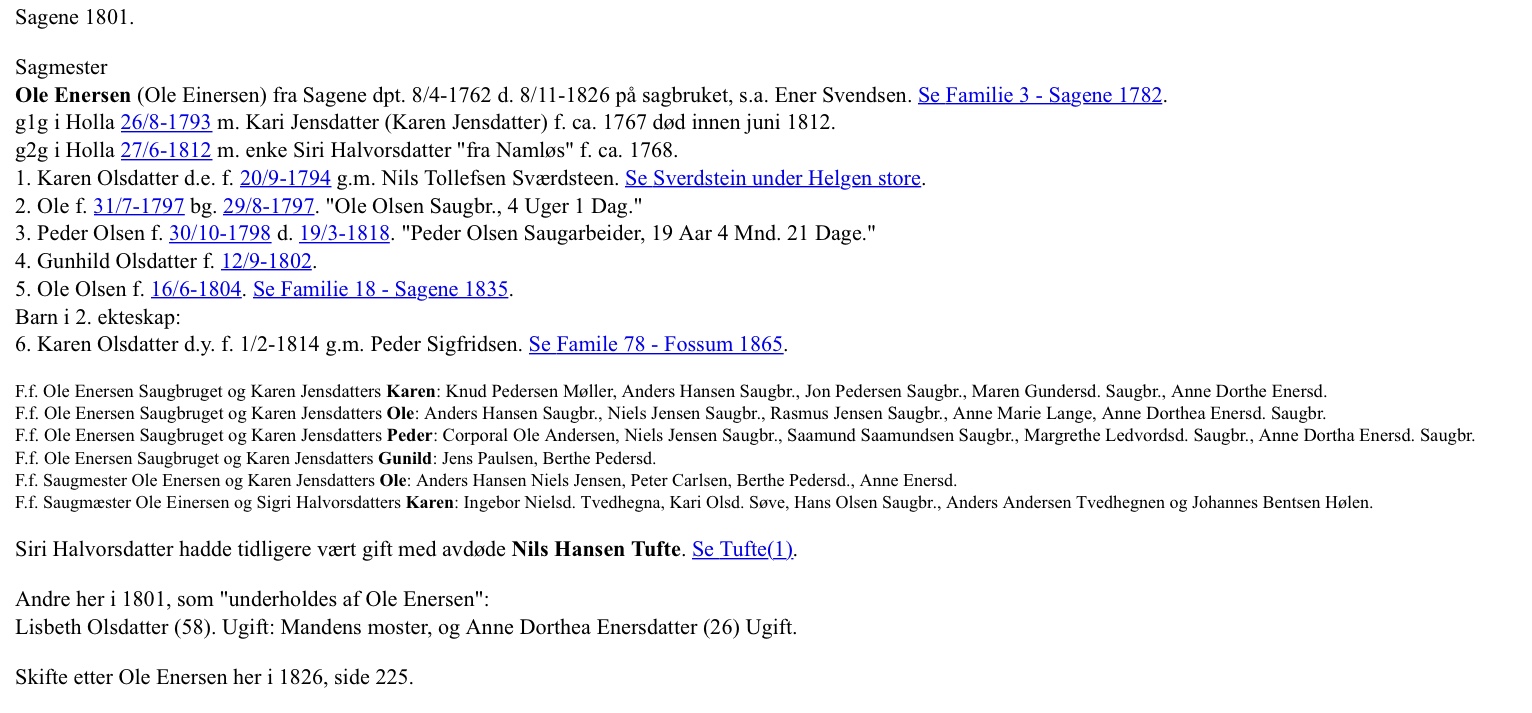 Kildene jeg har støtta meg på er i hovedsak gamleholla.no, nb.no, Holla Historielag og Per Bernt Tufte si bok om Sagene og kåseriet om samma tema som du finner i videodelen te Holla Historielag.