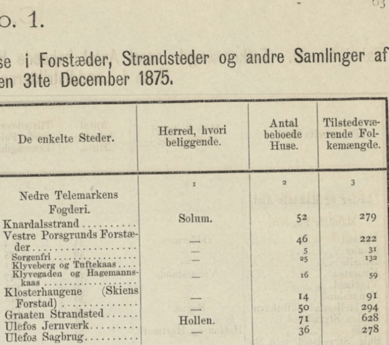 Jernverket hadde 628 mennesker teknytta jernverket i 71 hus ved utgangen av 1875. Sagene hadde 36 boliger med 278 mennesker i.
