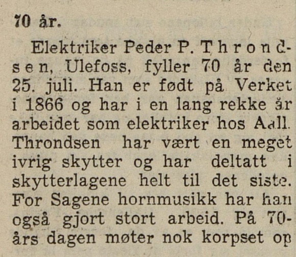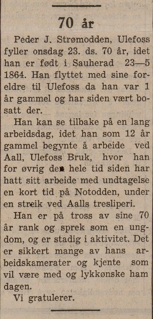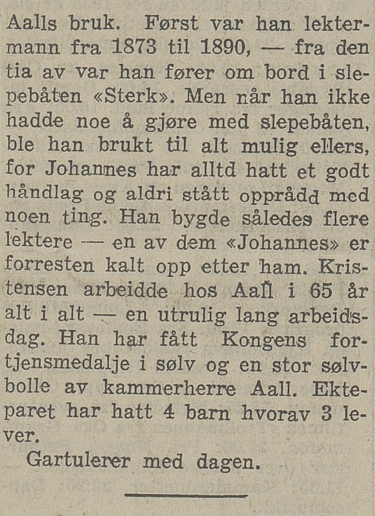 Snekkermester Peder J. Lindalen fylte 50 i 1934.