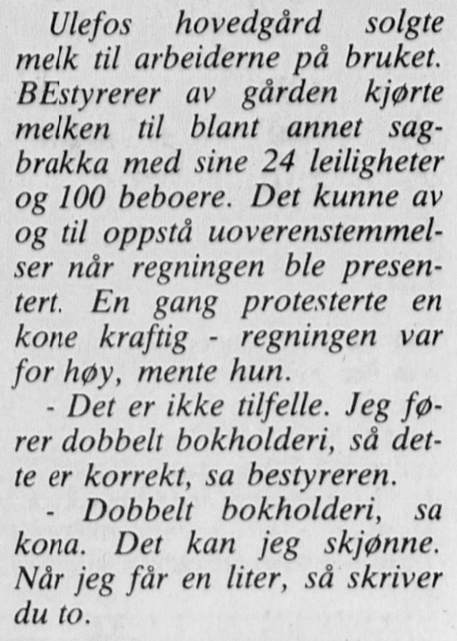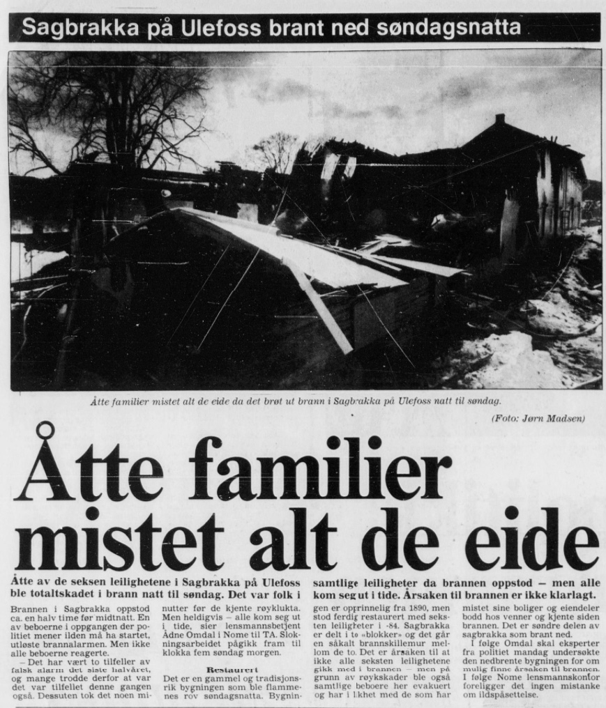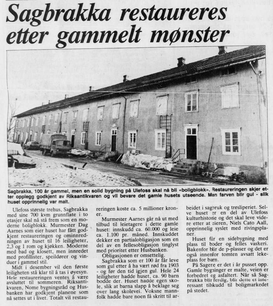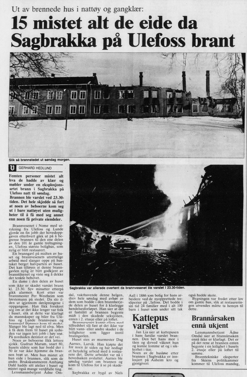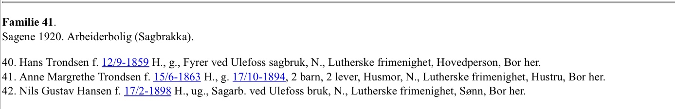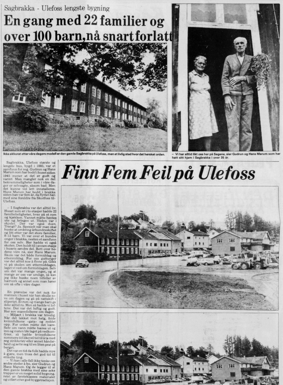 I 1920 bur det rundt 230 personer under gården Ulefos og 48 av døm bur i Sagbrakka.
