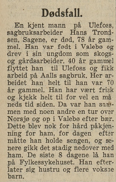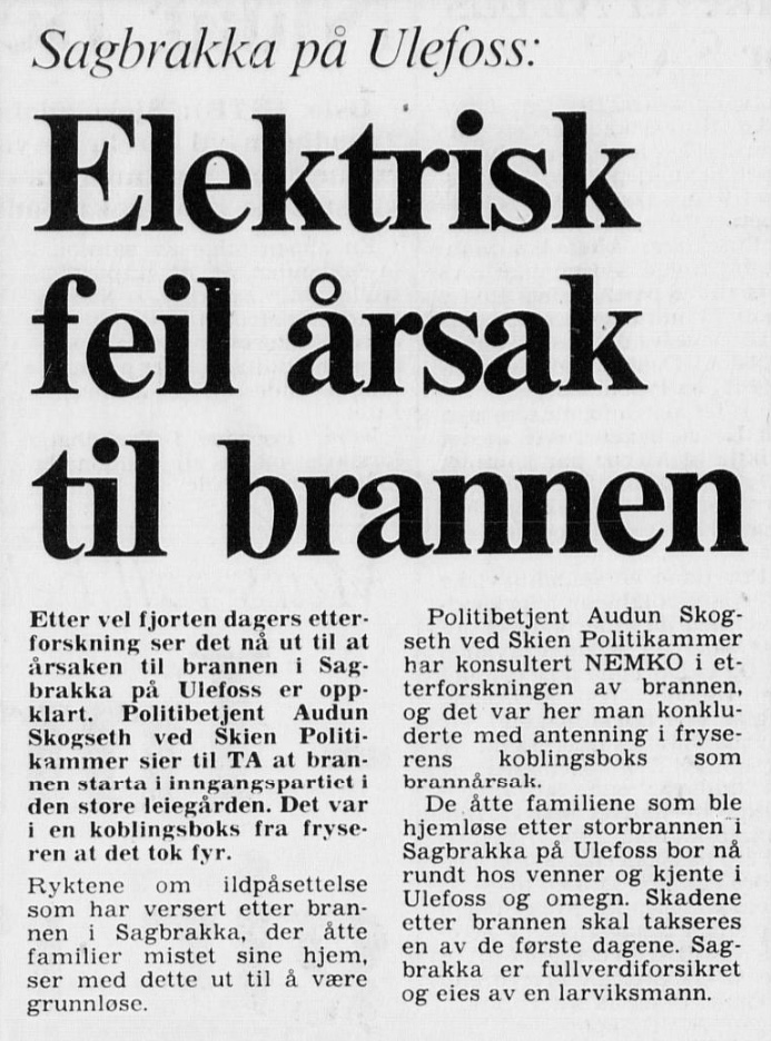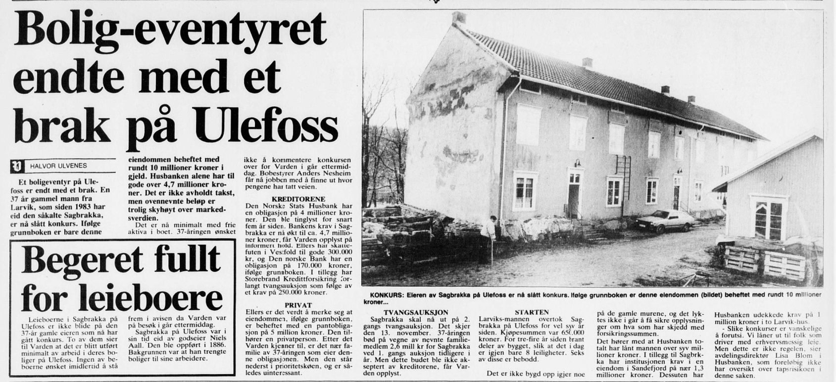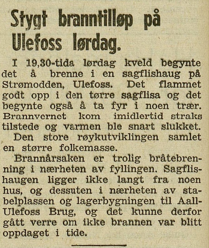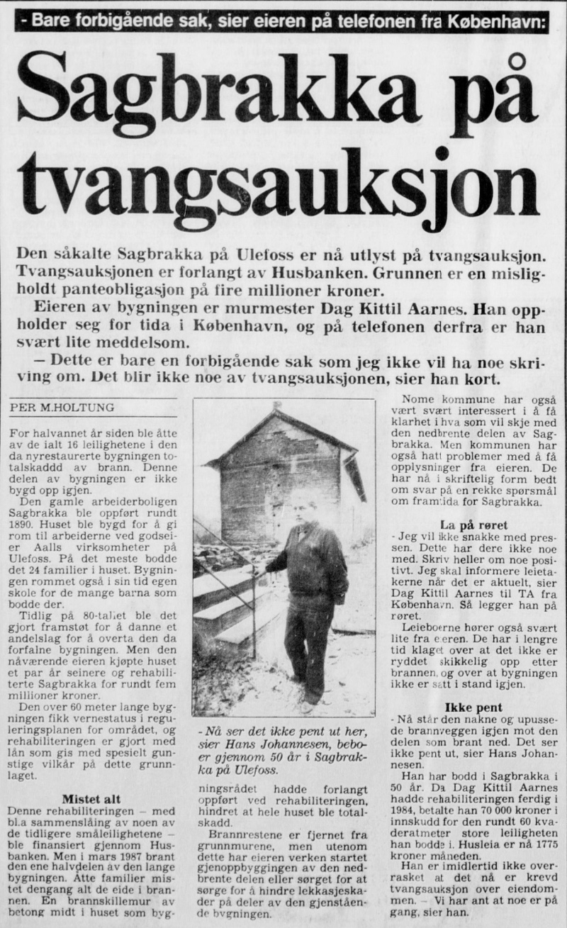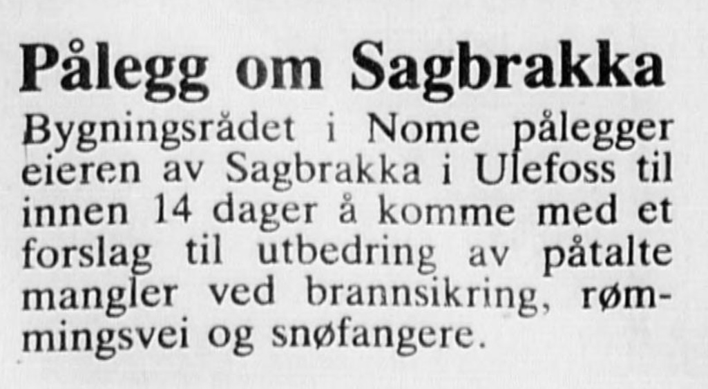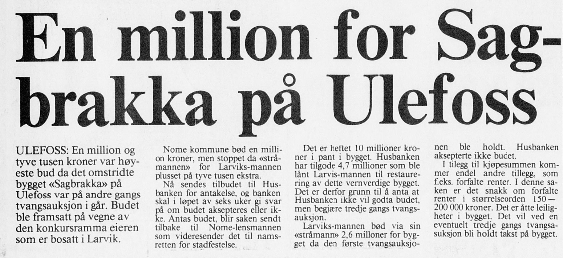 I 1920 bur det rundt 230 personer under gården Ulefos og 48 av døm bur i Sagbrakka.