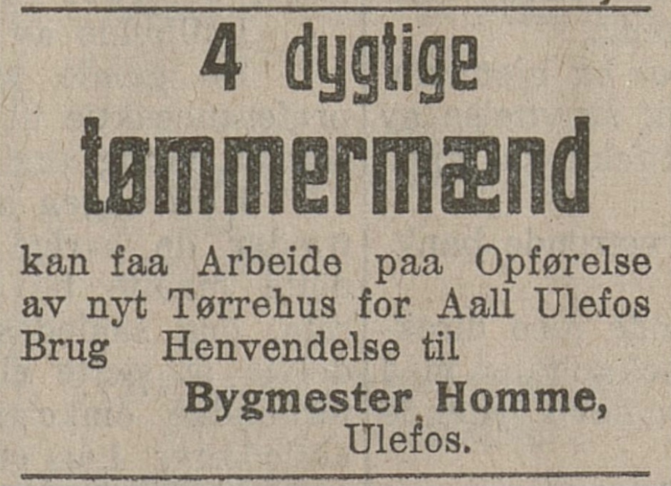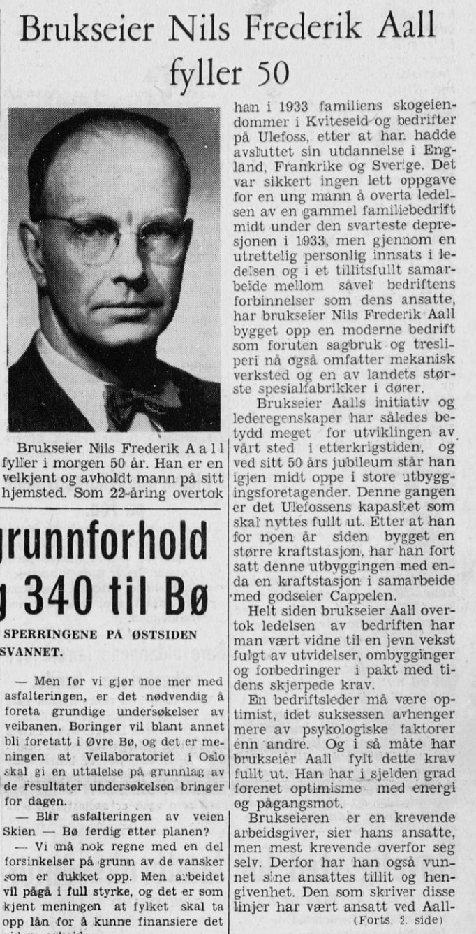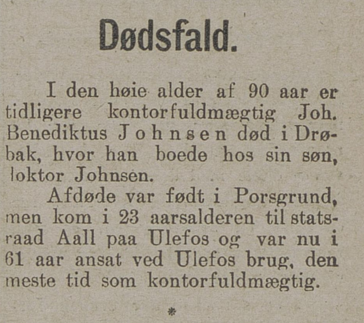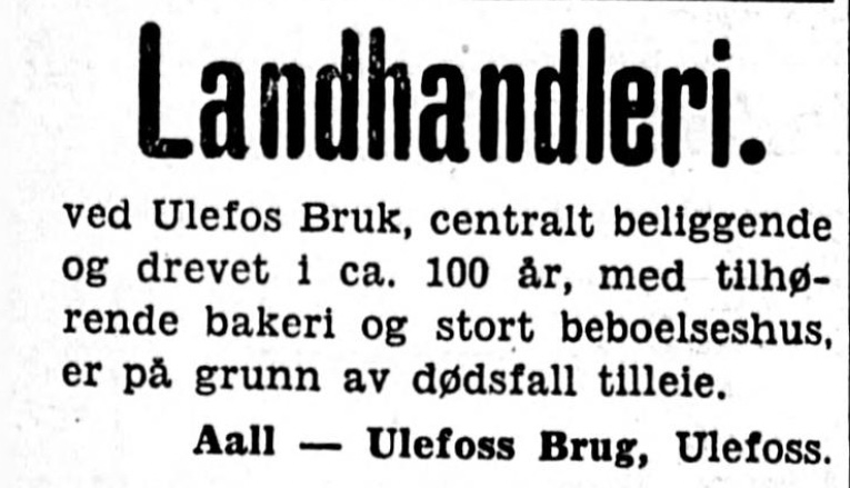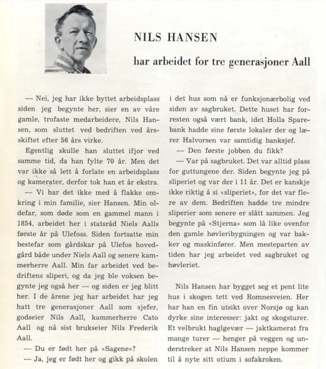 1913. Kontorfullmektigen budde på Lille Ulefos og han hadde tjent under fire av familien Aall!
