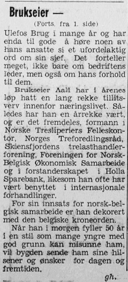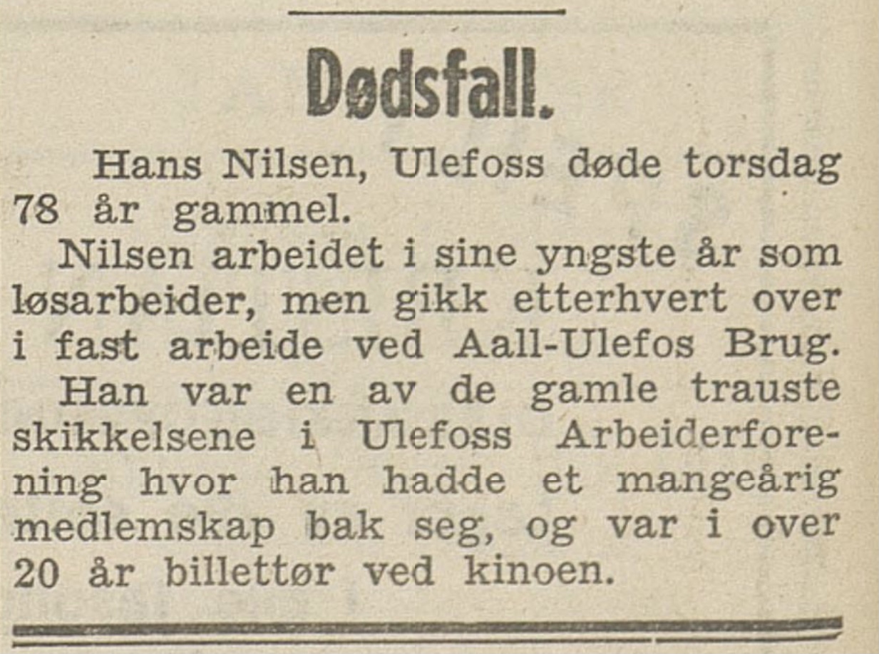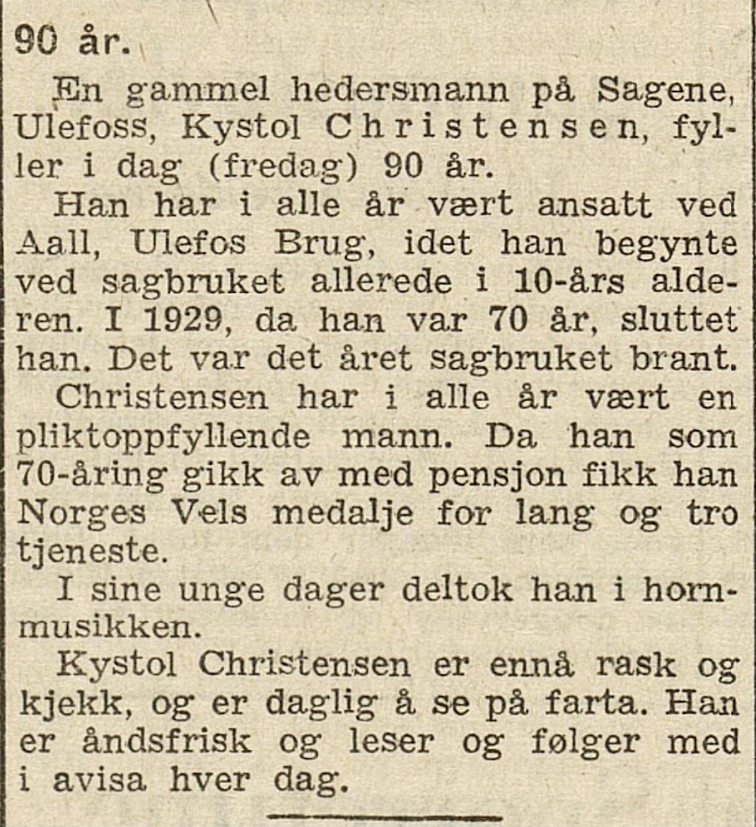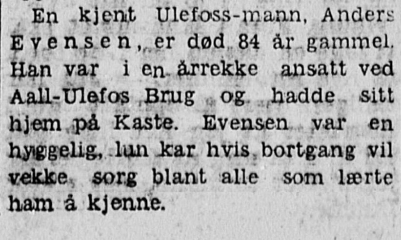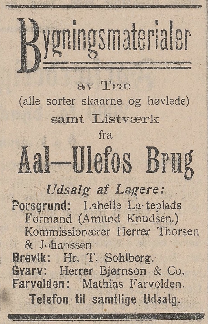 1913. Kontorfullmektigen budde på Lille Ulefos og han hadde tjent under fire av familien Aall!