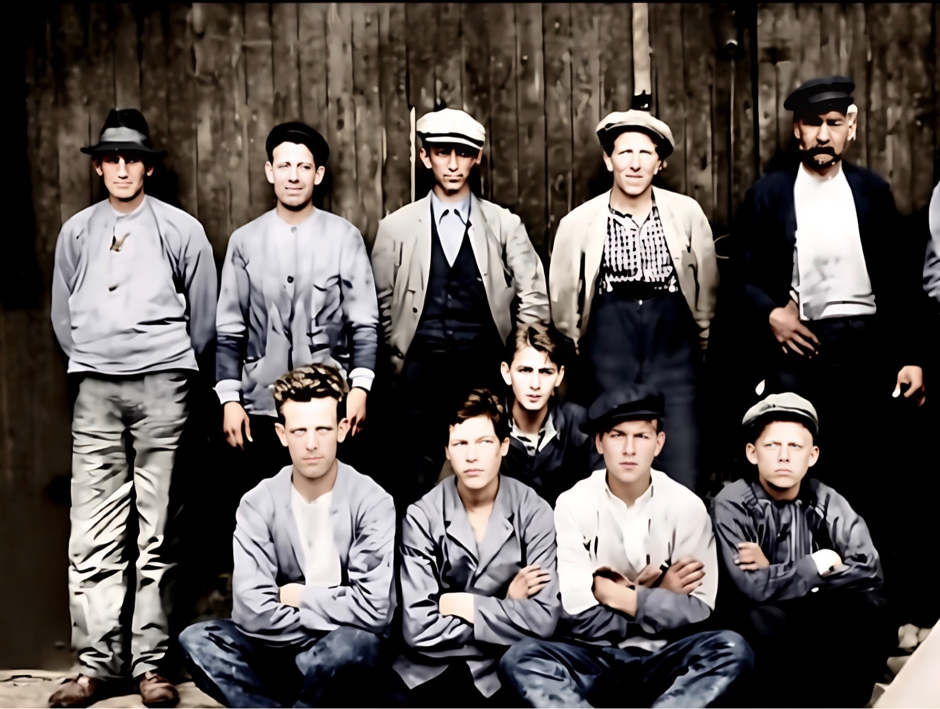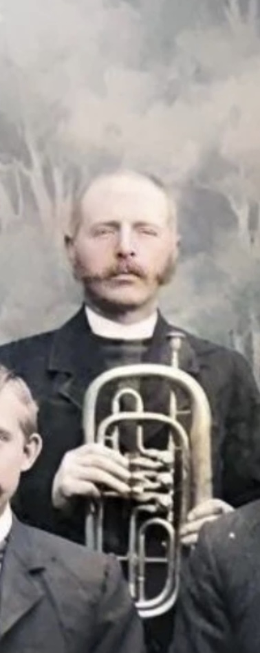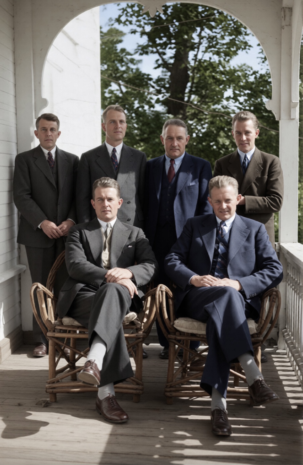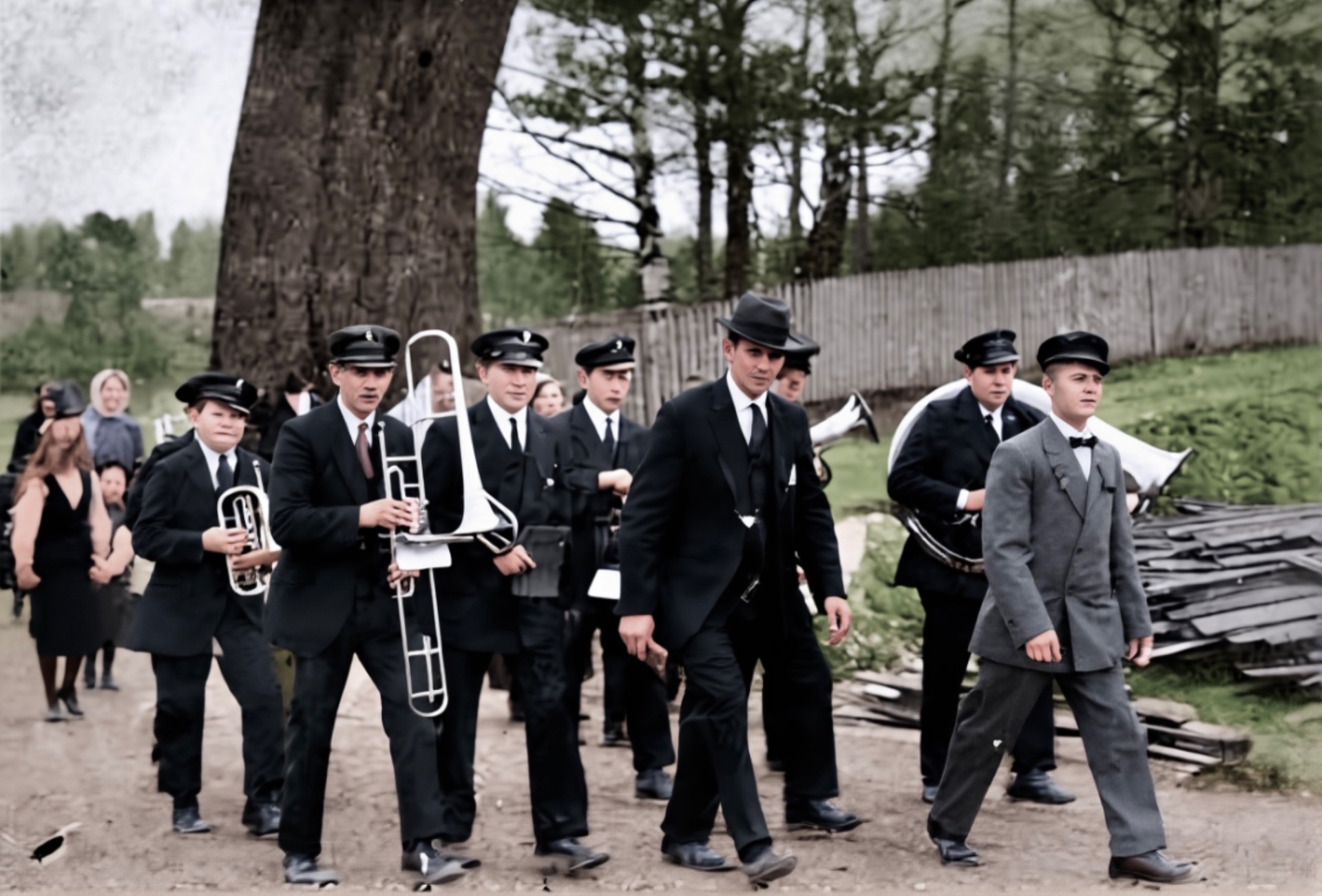 1930. Aall Ulefos Brug sin musikkforening. Vi ser fra venstre: Ingolf Nilsen - Asbørn Odden - Ludvig Nilsen - Axel Nilsen - Håkon Pedersen - Karl Nilsen - Karl Kristensen - Andreas Johannesen - Anders Lindalen - Halvor Lindalen - Alfred Pedersen - Anders Johnsen. Bak med stråhatt står Peder Tronsen.