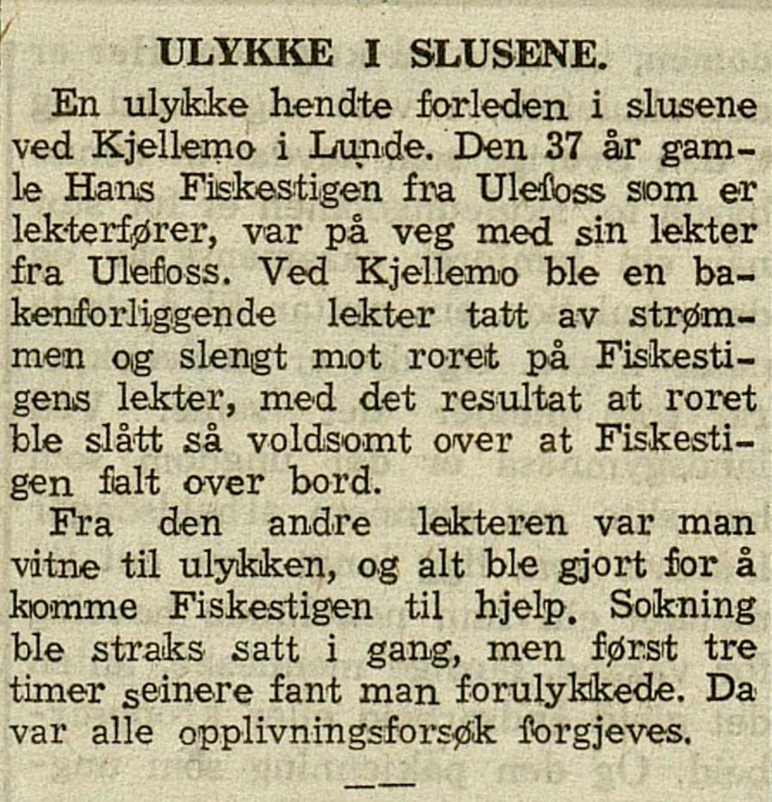 Tirsdag morgen, klokken omtrent 6, hendte den sørgelige, men dog sjeldne ulykke på hr. lastehandler Ivers dampsag, idet en arbeider øyeblikkelig ble drept.