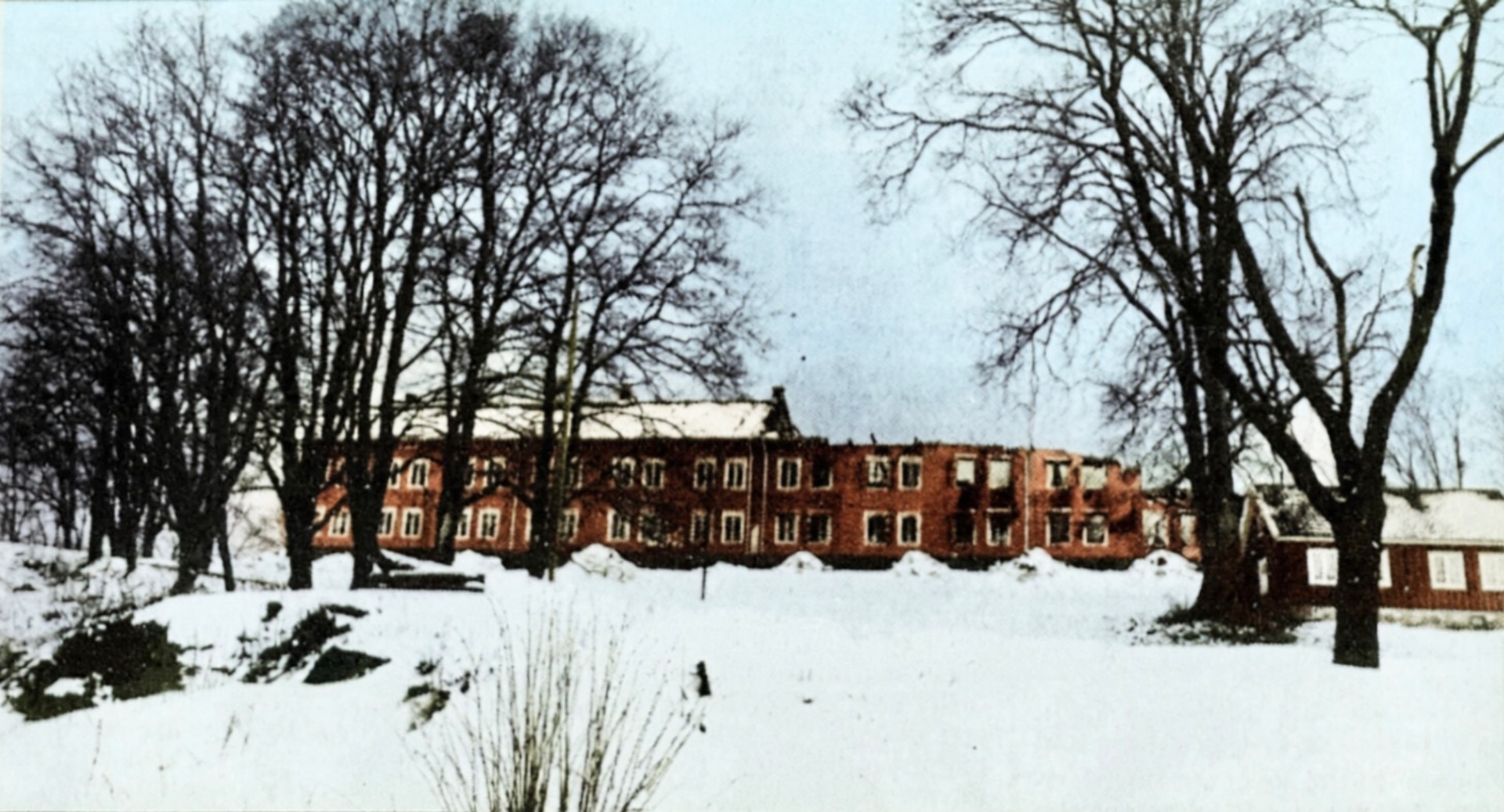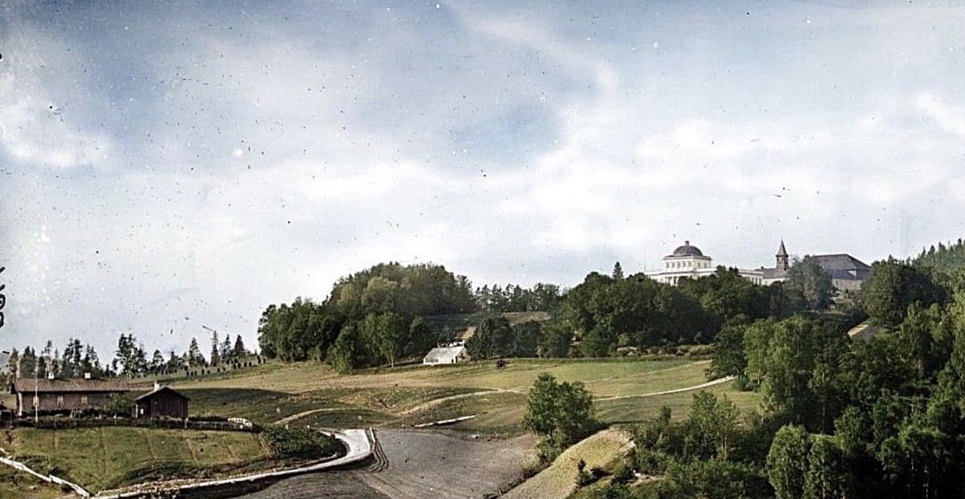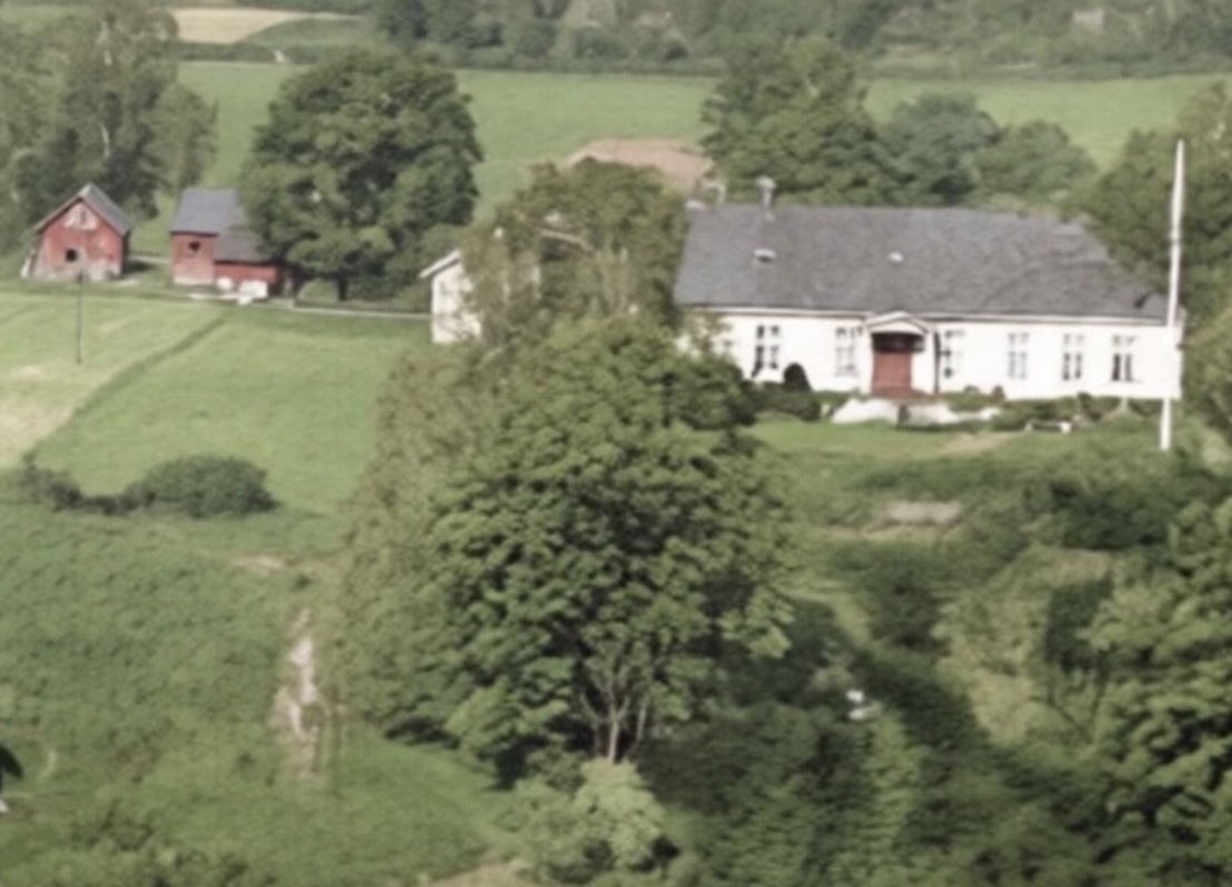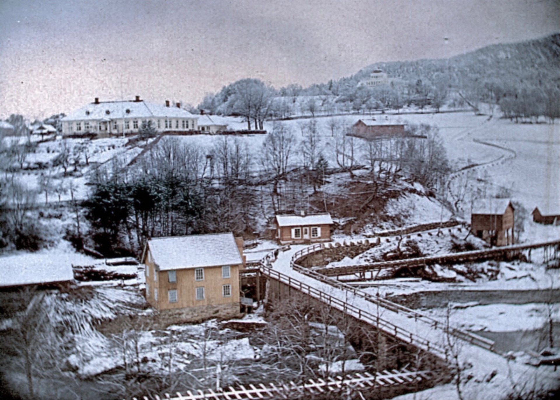 Det kan væra Kovan vi ser te høyre. Bak te venstre ser vi kuske- og gartnerboligen Solheim som blei rivd grunna husbukk.