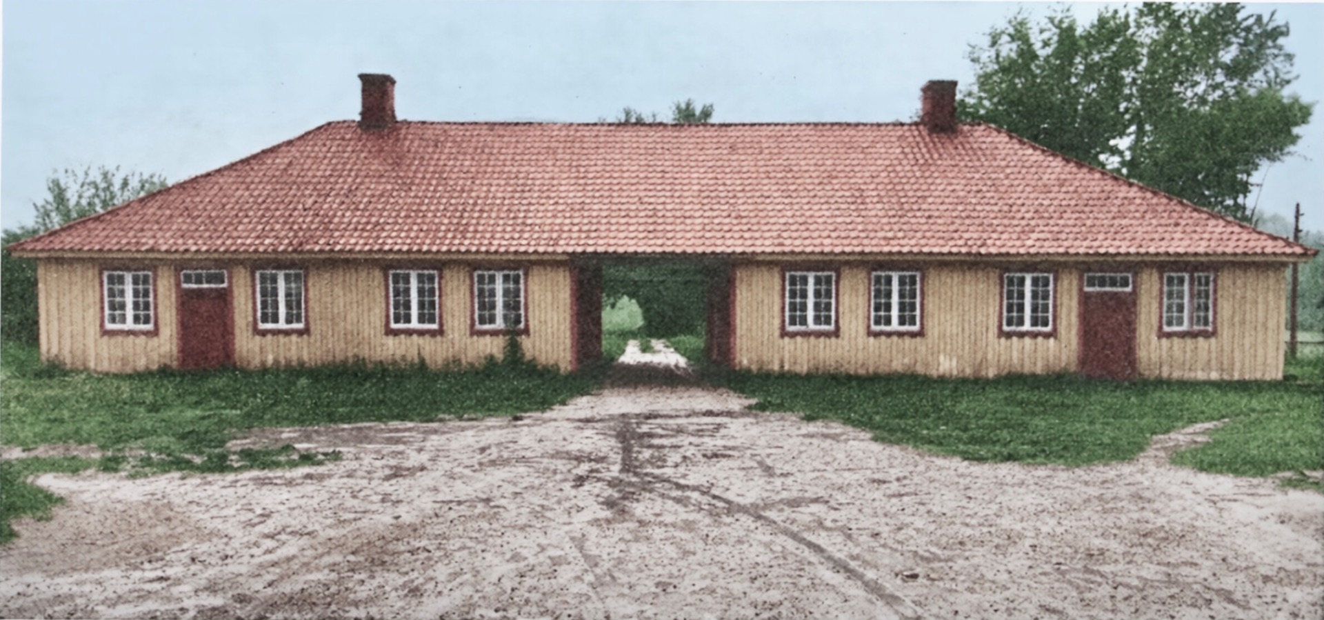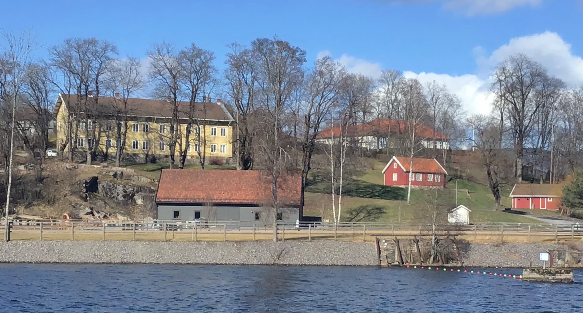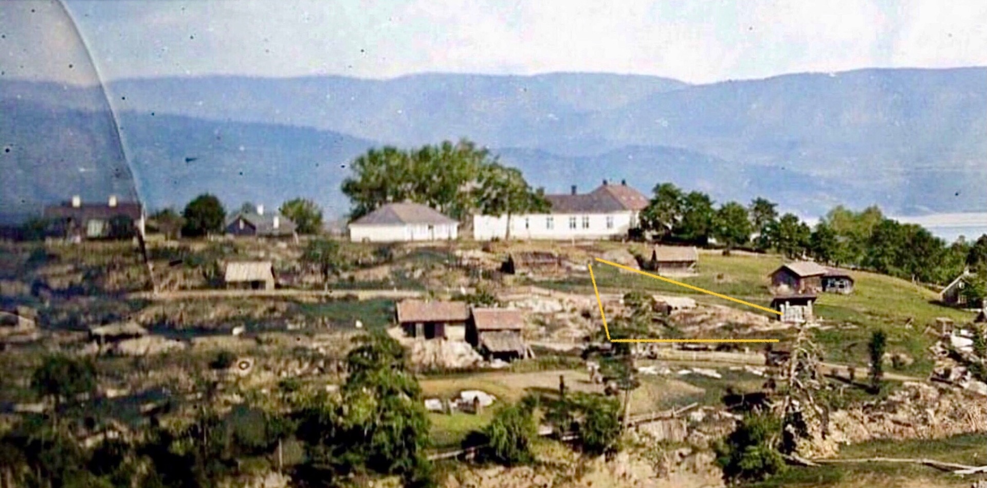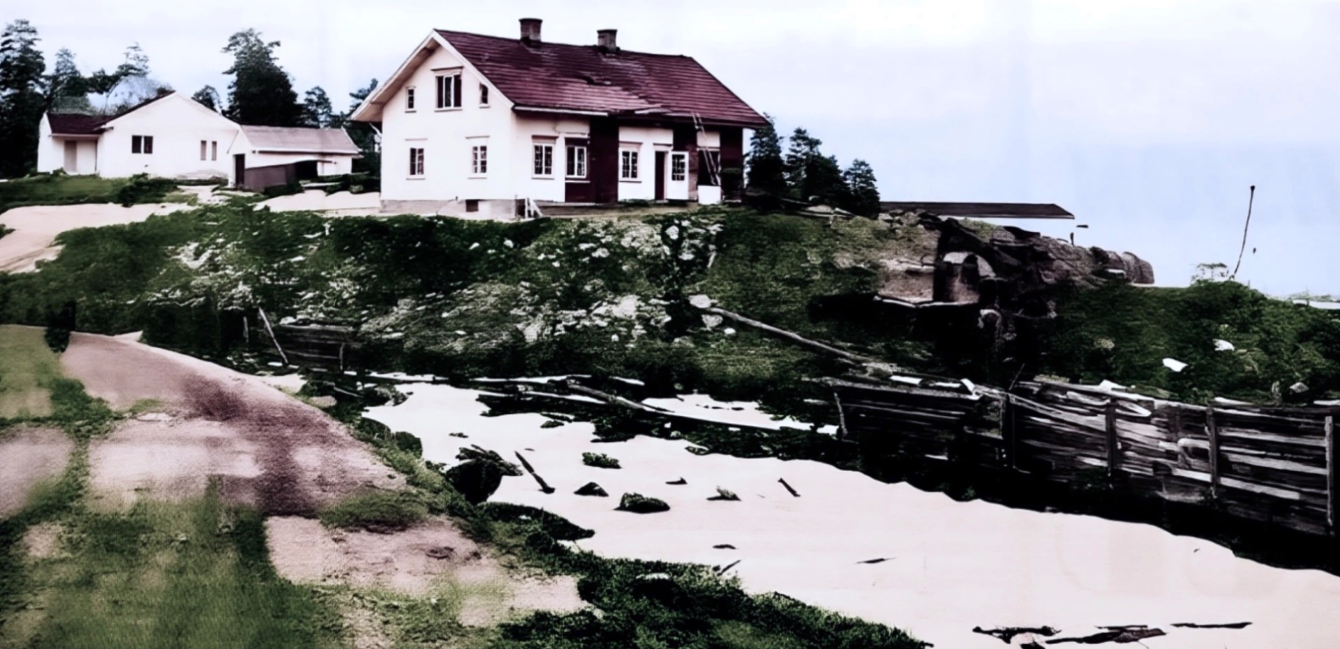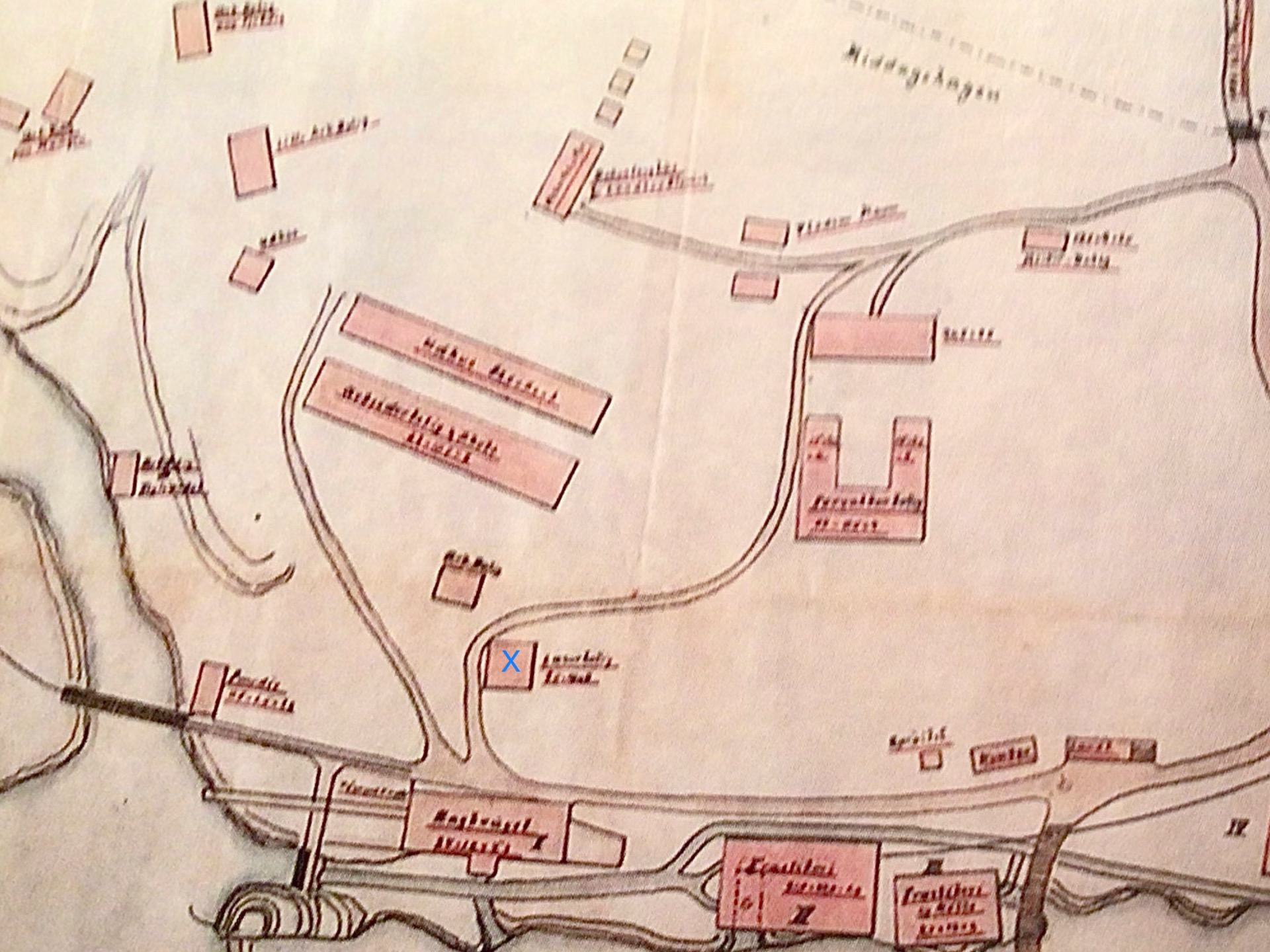 Det kan væra Kovan vi ser te høyre. Bak te venstre ser vi kuske- og gartnerboligen Solheim som blei rivd grunna husbukk.