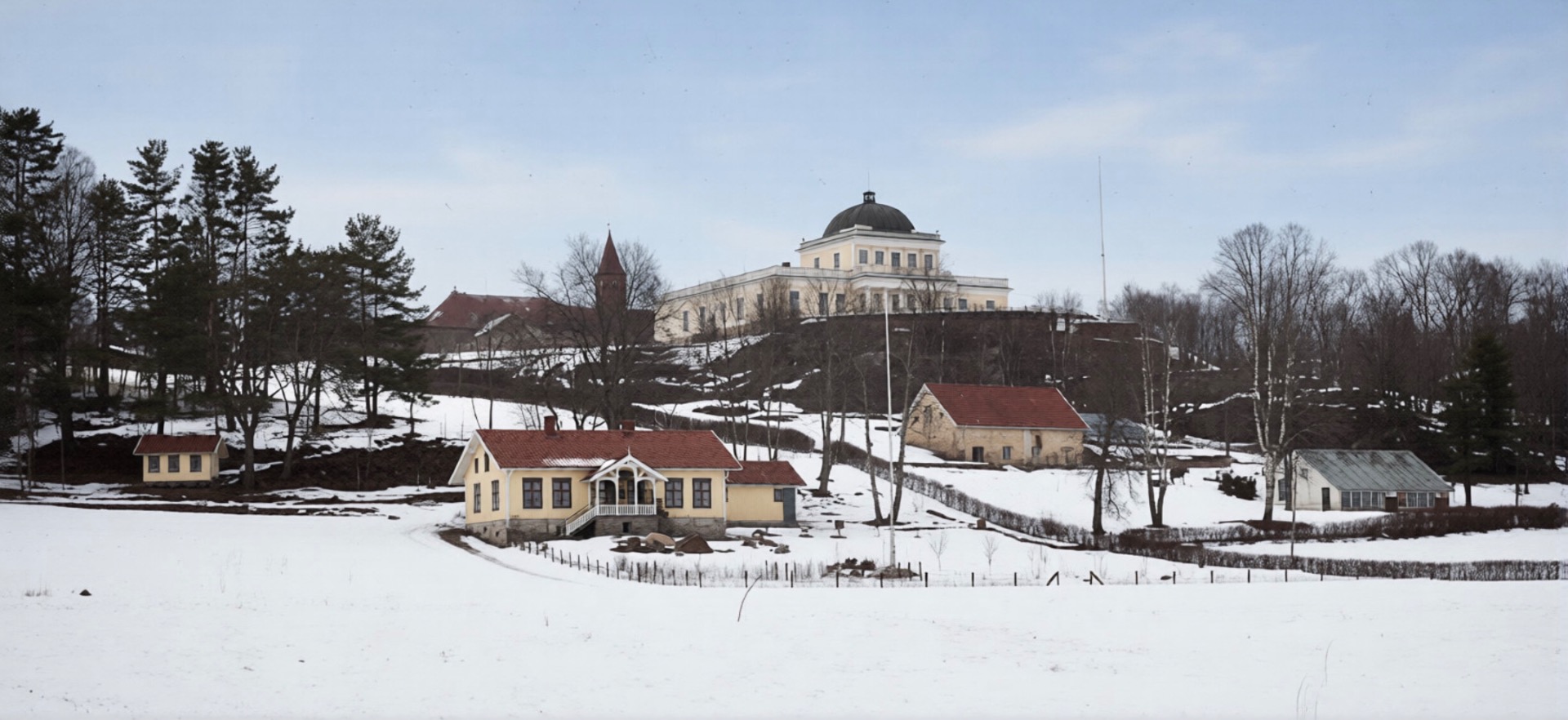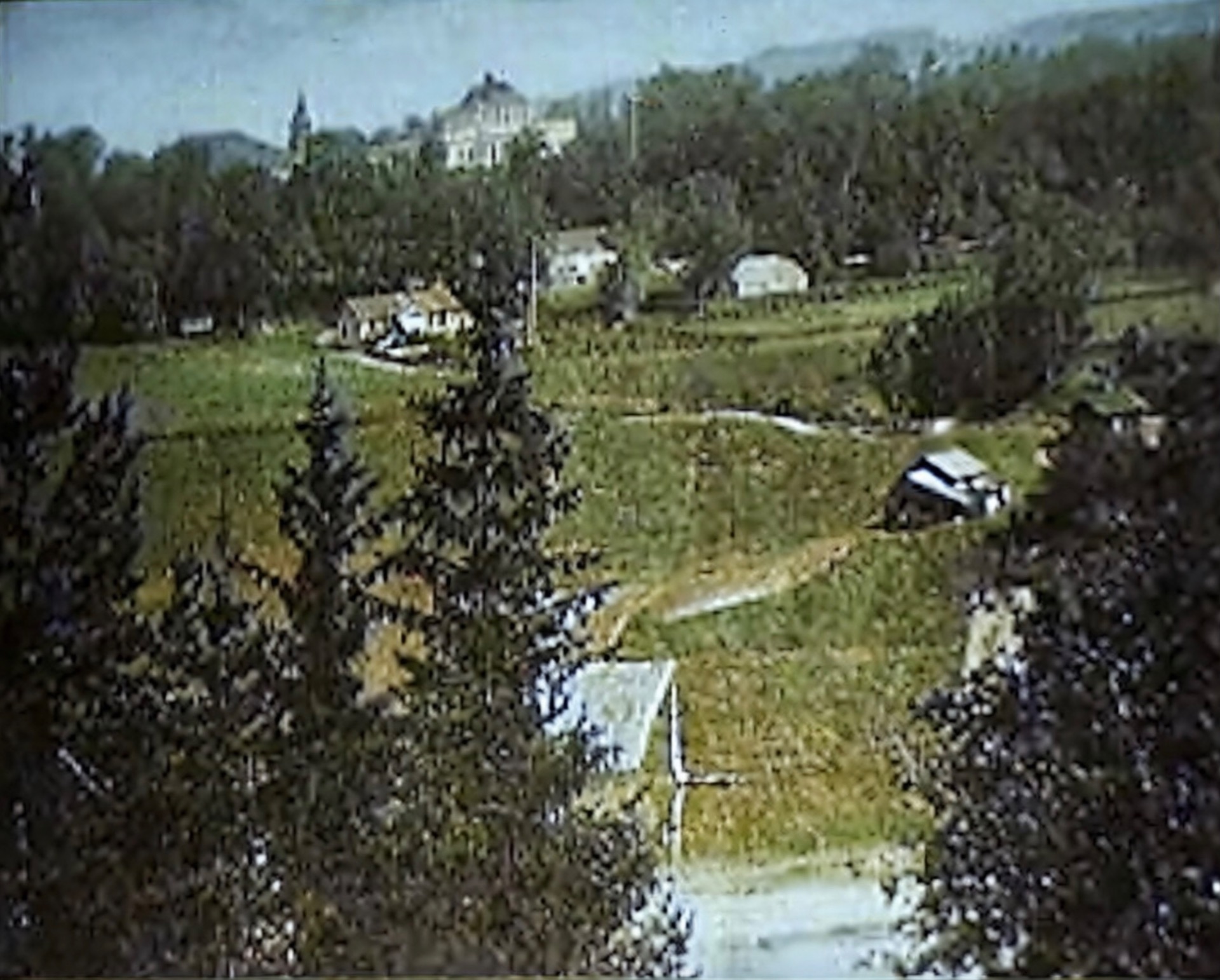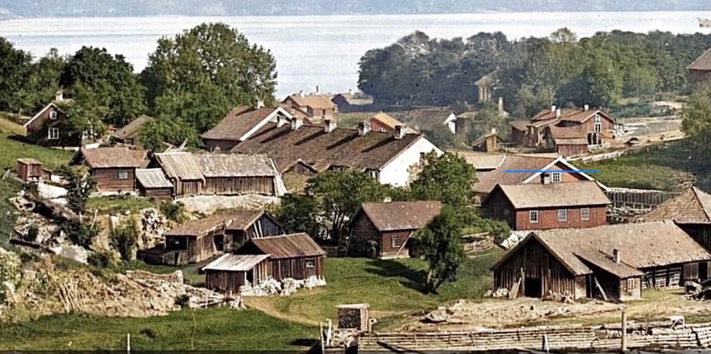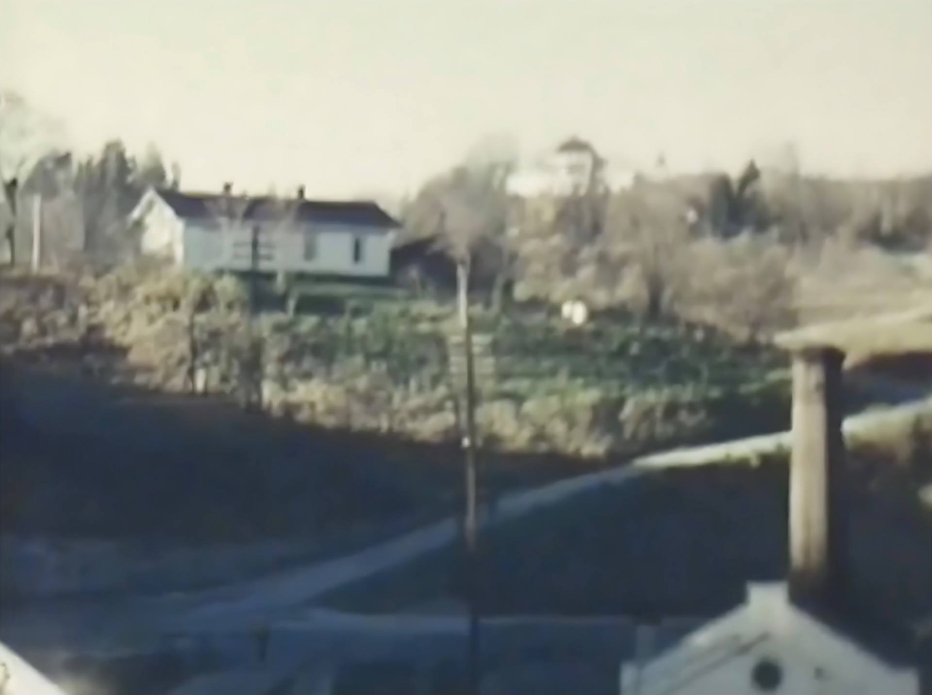 Det kan væra Kovan vi ser te høyre. Bak te venstre ser vi kuske- og gartnerboligen Solheim som blei rivd grunna husbukk.