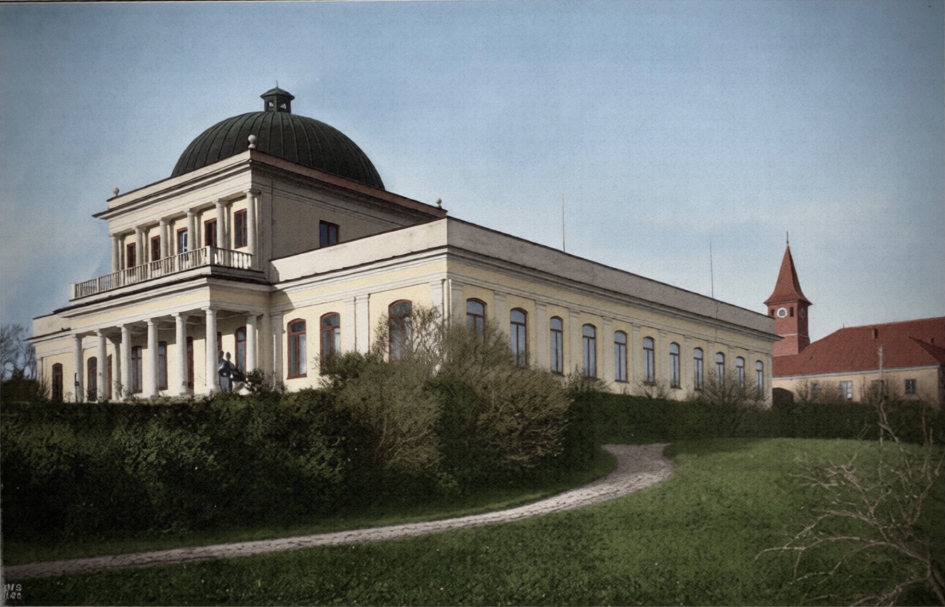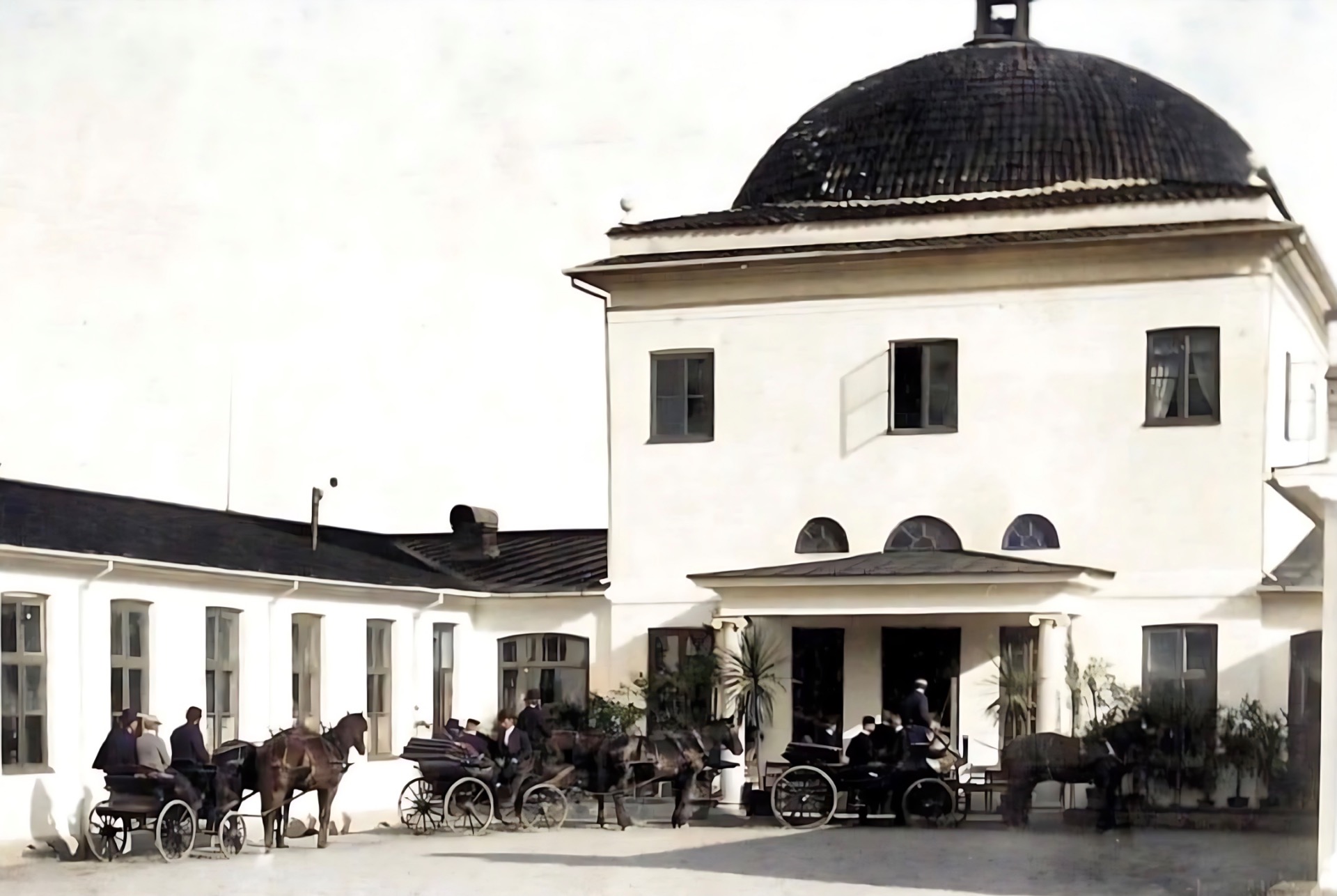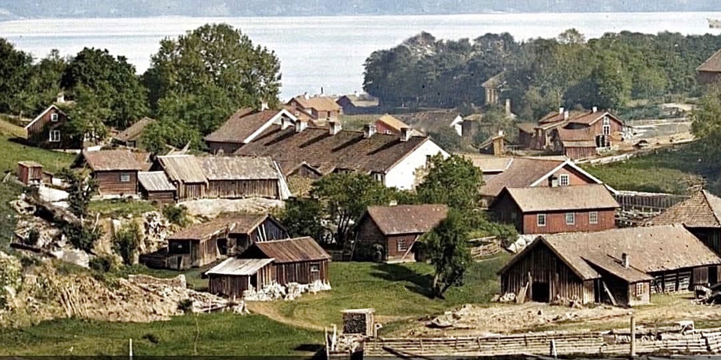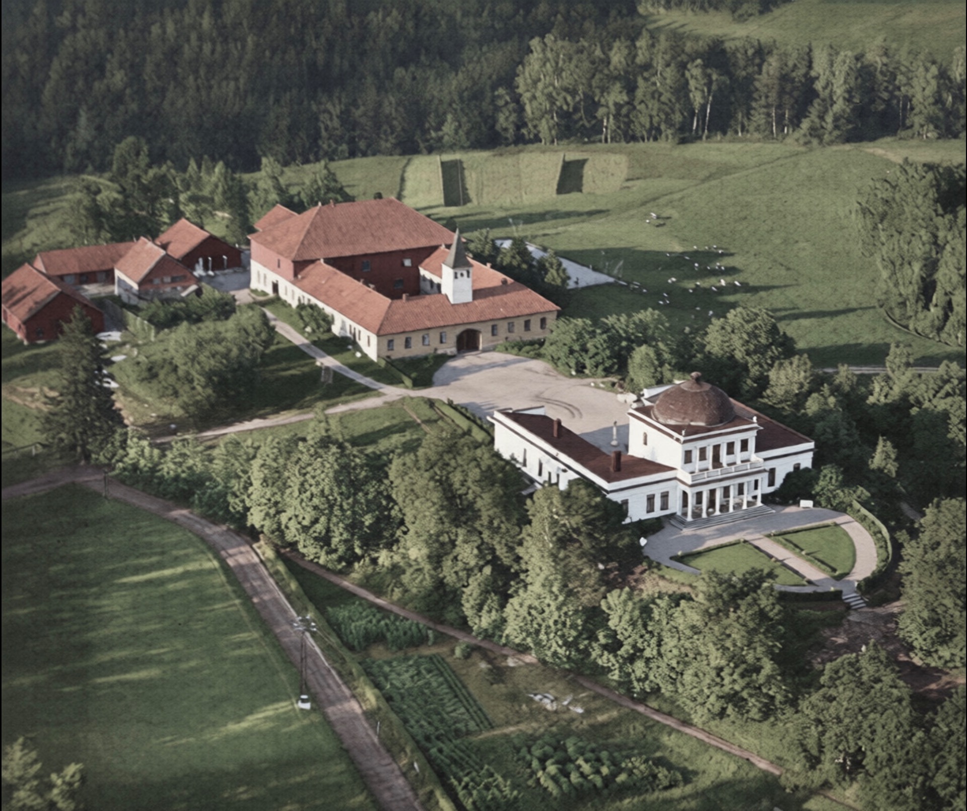 Det kan væra Kovan vi ser te høyre. Bak te venstre ser vi kuske- og gartnerboligen Solheim som blei rivd grunna husbukk.
