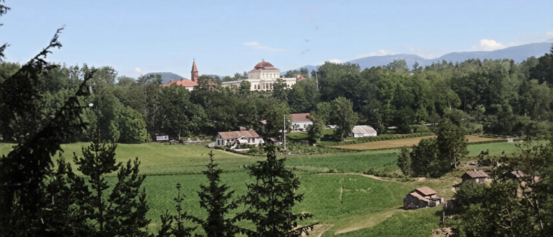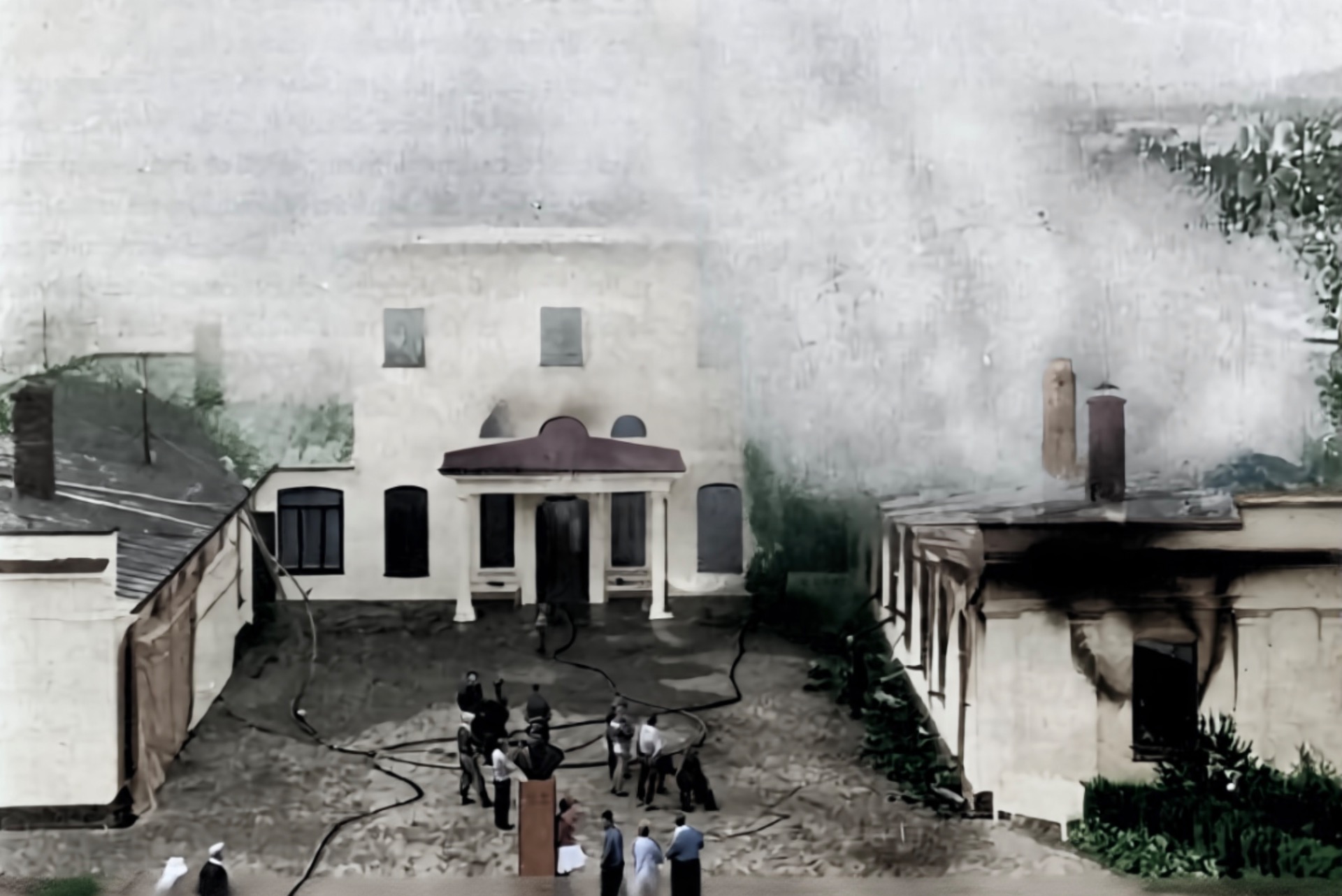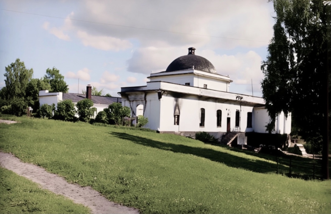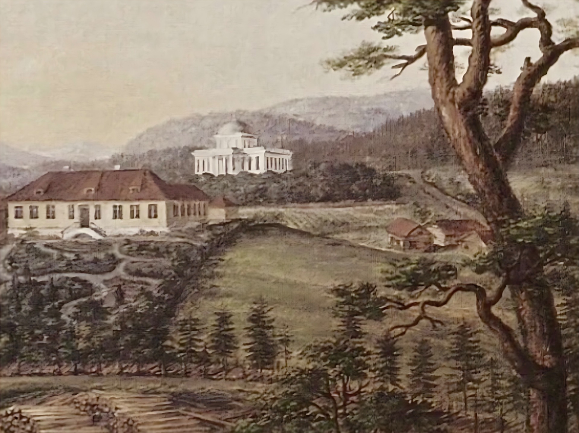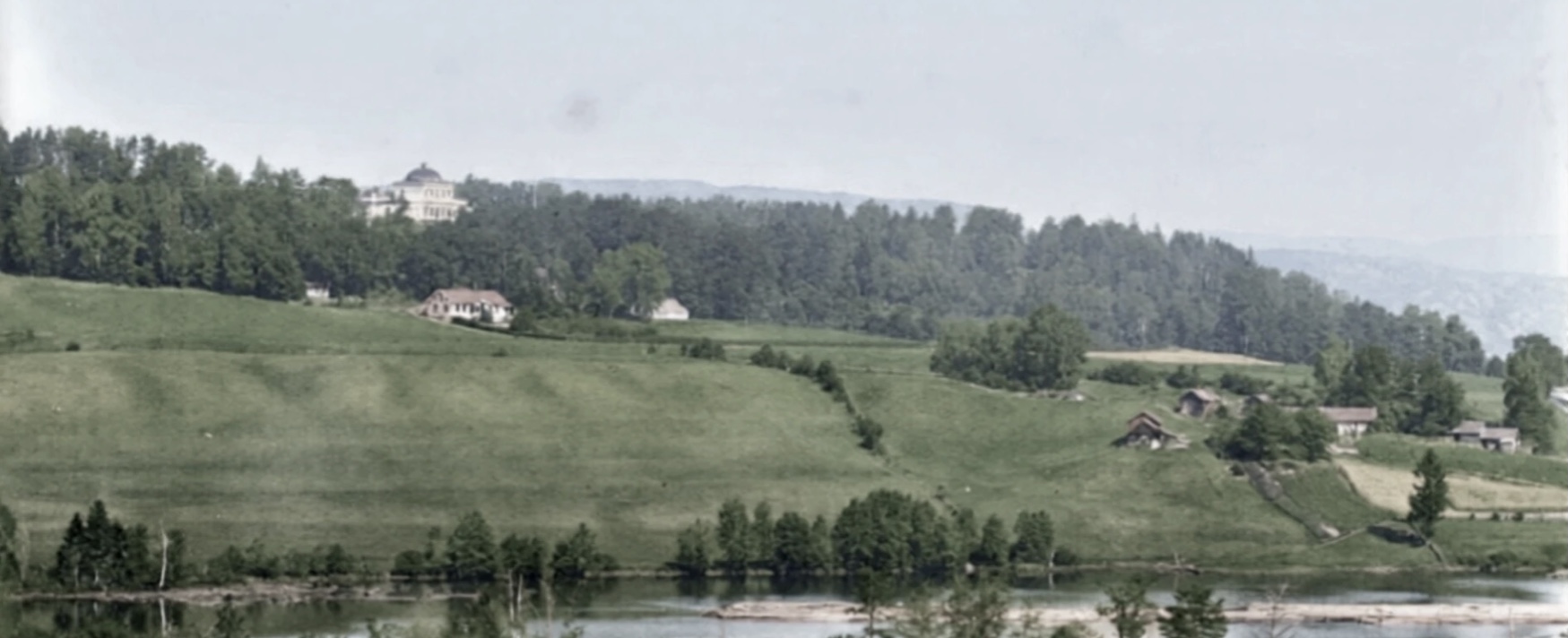 Det kan væra Kovan vi ser te høyre. Bak te venstre ser vi kuske- og gartnerboligen Solheim som blei rivd grunna husbukk.