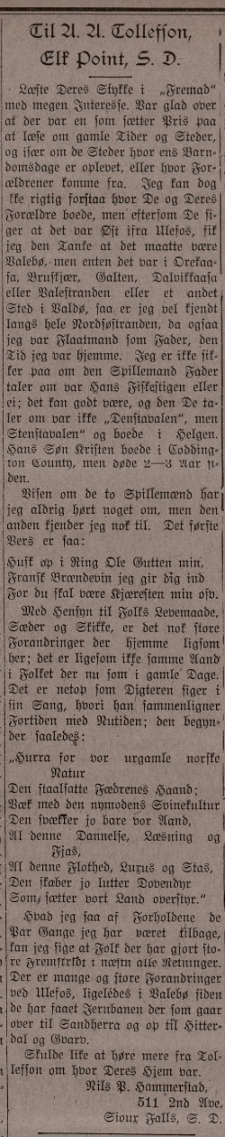 Mine egne bolkar på denna sida med navnet «Fortiden Taler» har også gitt små drøpp.