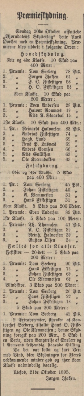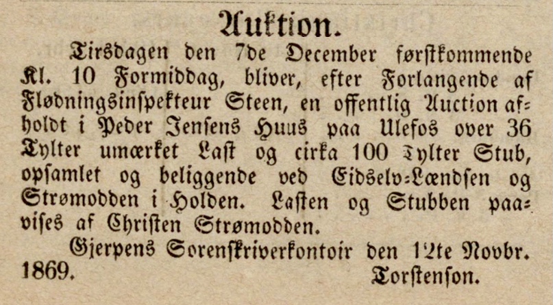 Den ulykke har sin årsak i at vedkommende, ved å rydde sagene for sagflis, formodentlig kom for nær et hjul, således at remmen på hjulet øyeblikkelig har tatt fatt i ham, og at han derpå er blitt dradd flere ganger rundt mellom remmen og hjulet, hvilket har bevirket at hans legeme fikk en så fryktelig medfart. Hjernen fantes igjen på hjulet, mens de forskjellige andre deler av legemet fantes liggende nedenunder hjulet i sagflisen, hvilke ble samlet og lagt i en likkiste.