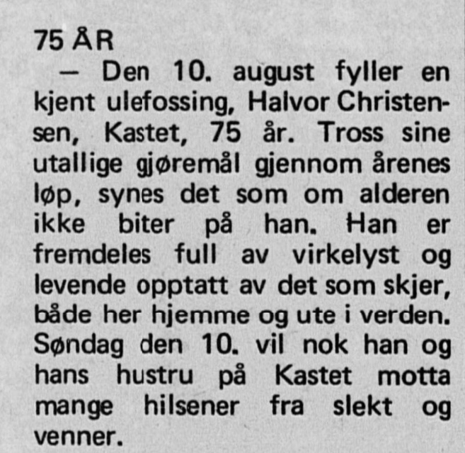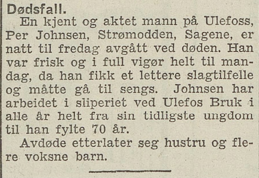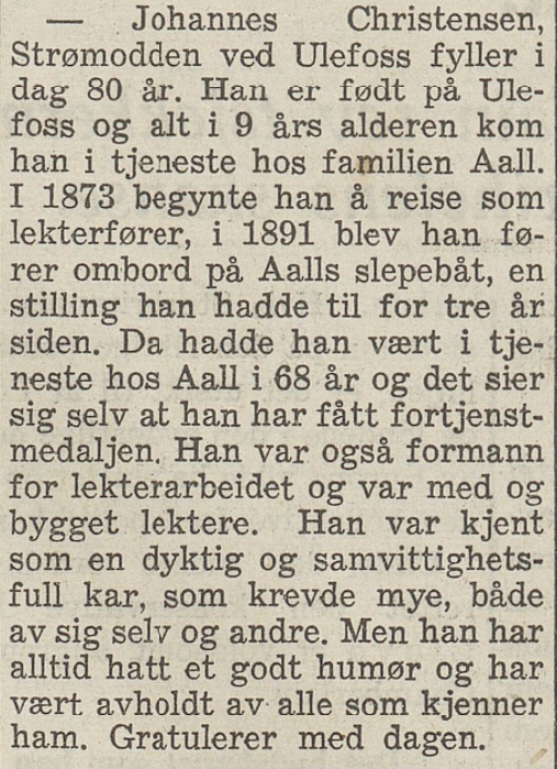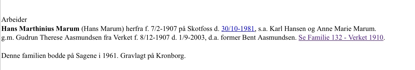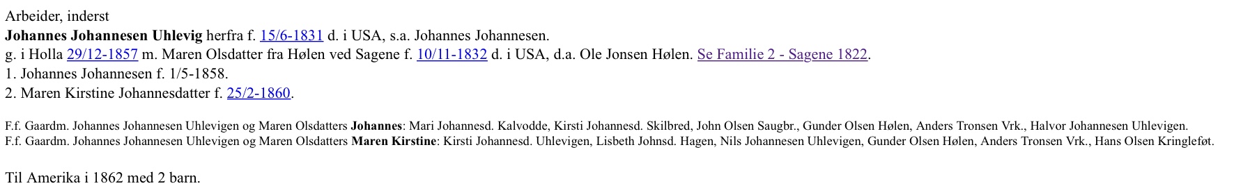 Johannes sin farfar budde også på øvre Ullevika og han va gift med Maren Olsdatter fra nedre Sannes. Denna Maren va tante te Clemmet Jynge si andre kone.