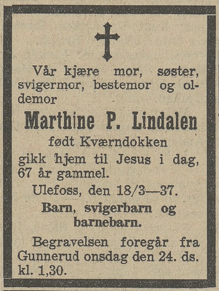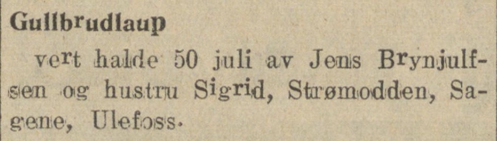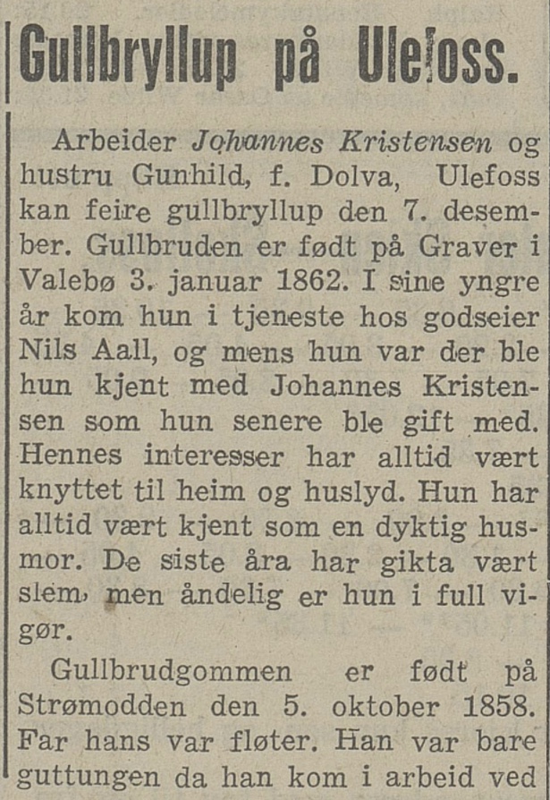 Gudrun Lindalen blei gift med Gullik Haugland fra Bø.