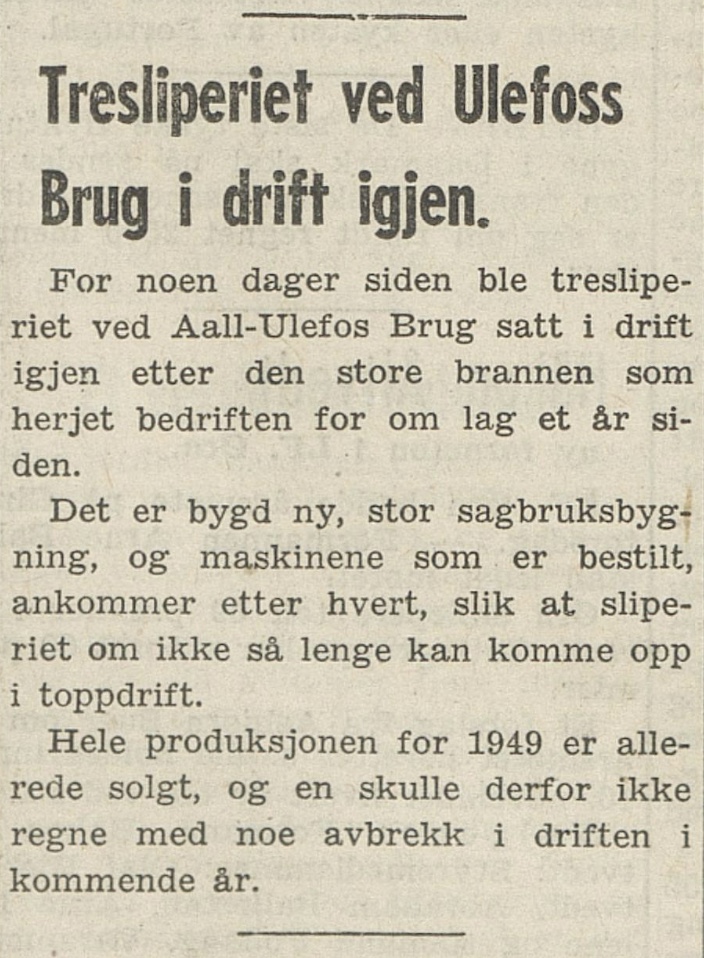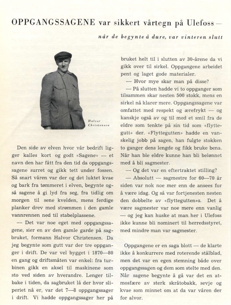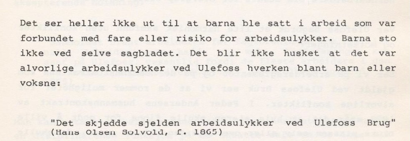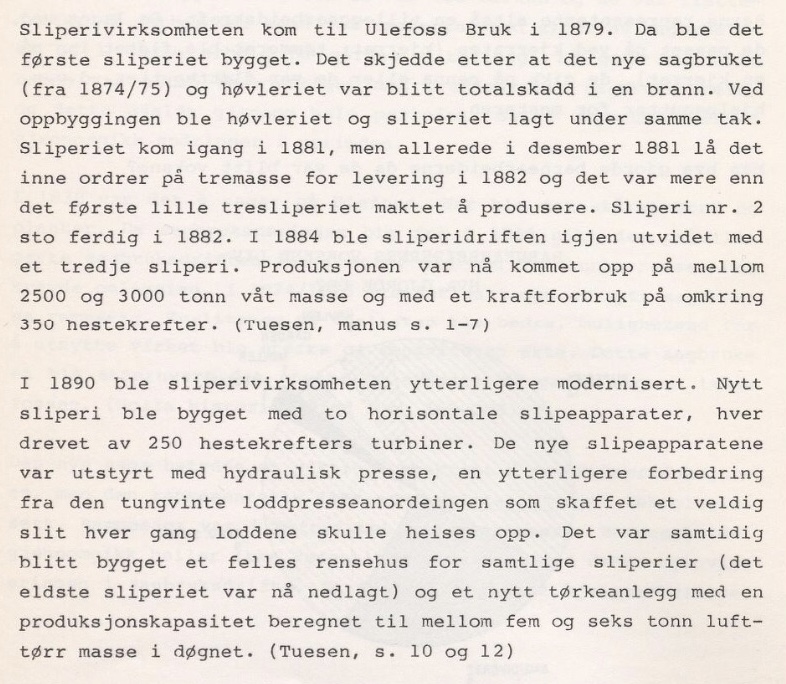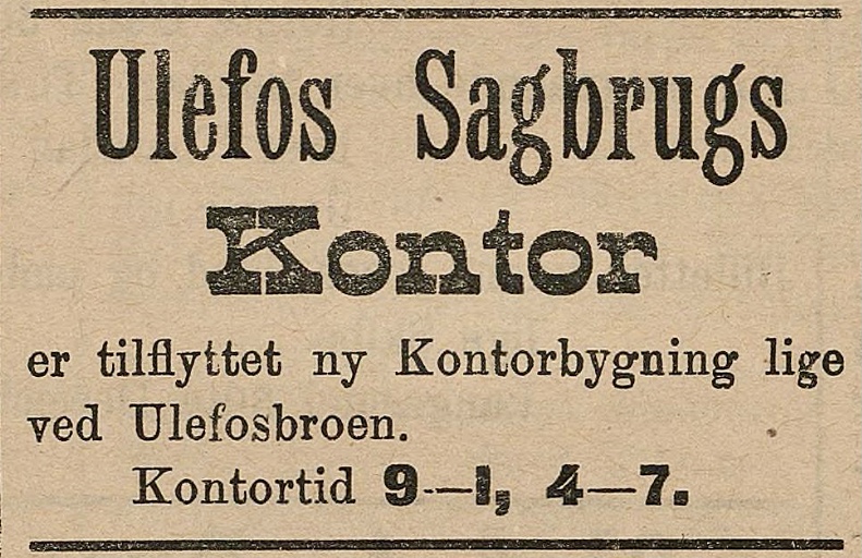Det finnas dokumenter fra 1603 som viser at sagdrifta har vært i gang. Ska vi skyte fra hofta og si at det første tømmeret blei skjært ein gang rundt 1570? Produksjonen va liten og i 1666 leser vi at det i åra før, ikke hadde vært drift. Det er heller ikke oppgitt drift ved ulefossen for året 1611 da andre sagbruk er nevnt med produksjon. (Se «Fortiden Taler» fram te 1820)